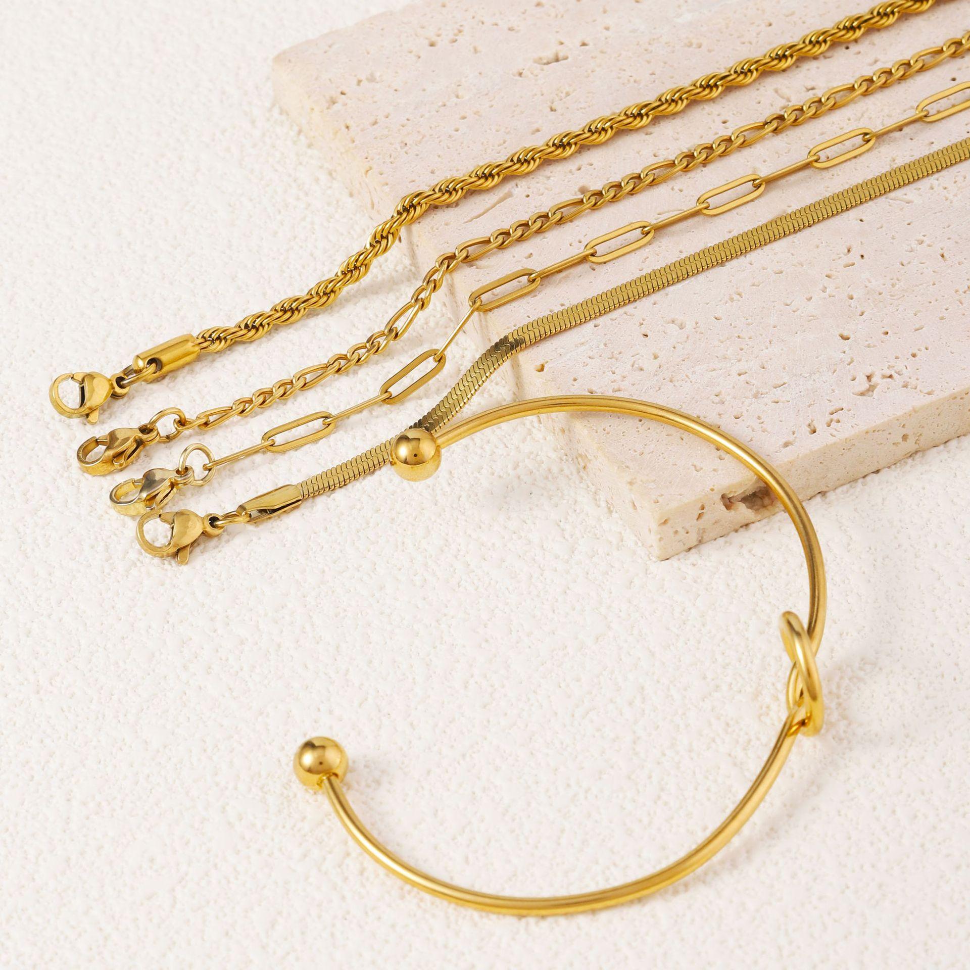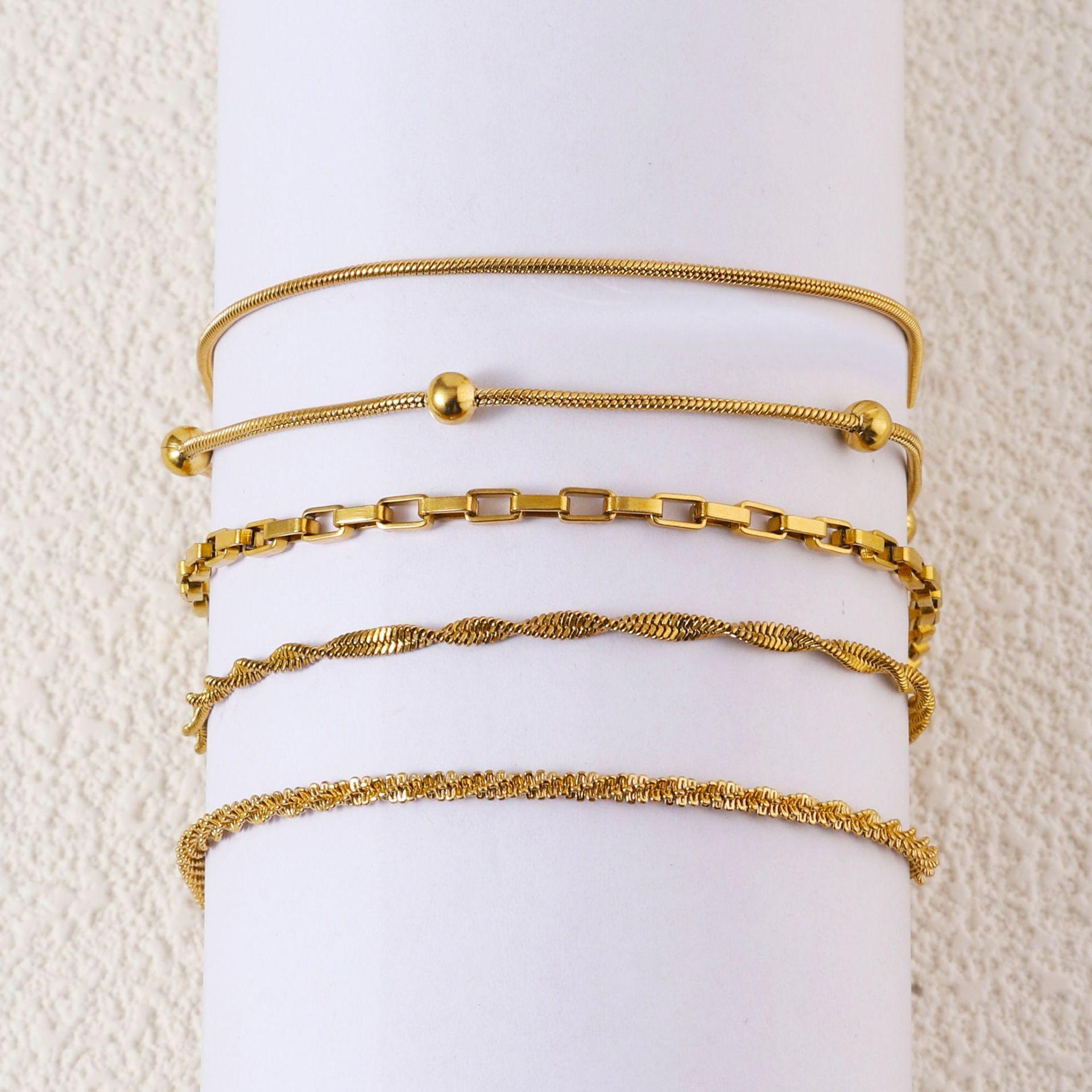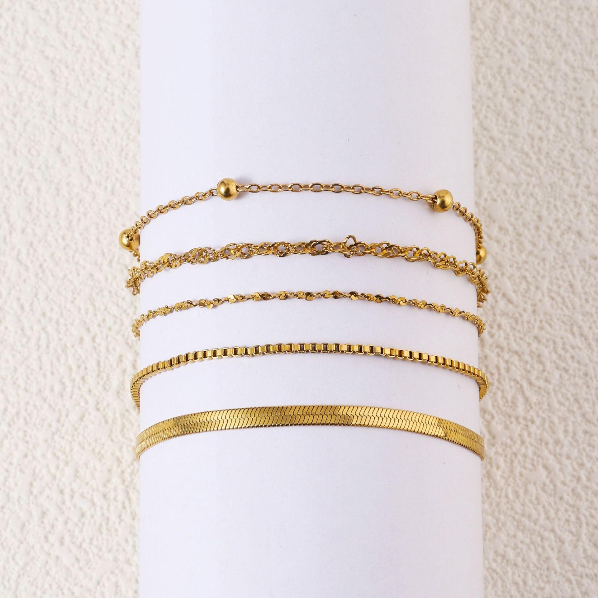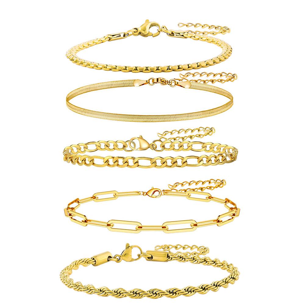 Pulsera de Acero Inoxidable Dorado para Mujer Europea y Americana Transfronteriza de Venta Caliente Chapada al Vacío Pulsera de Oro de 18K Juego de Cadena Lisa Pulsera de Acero de Titanio