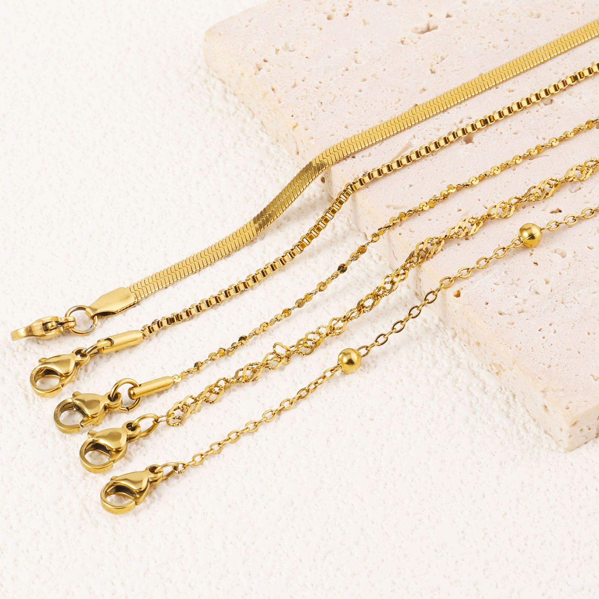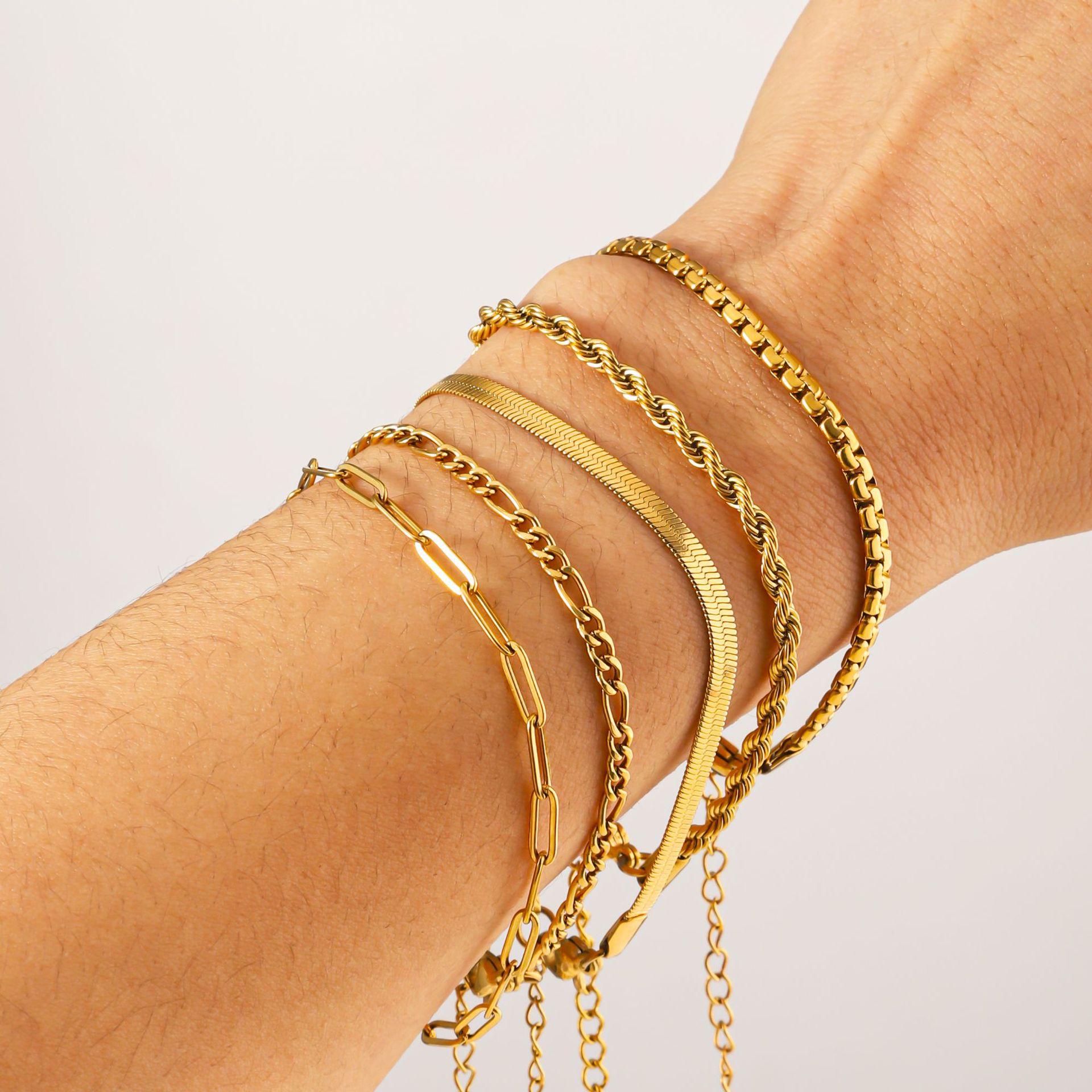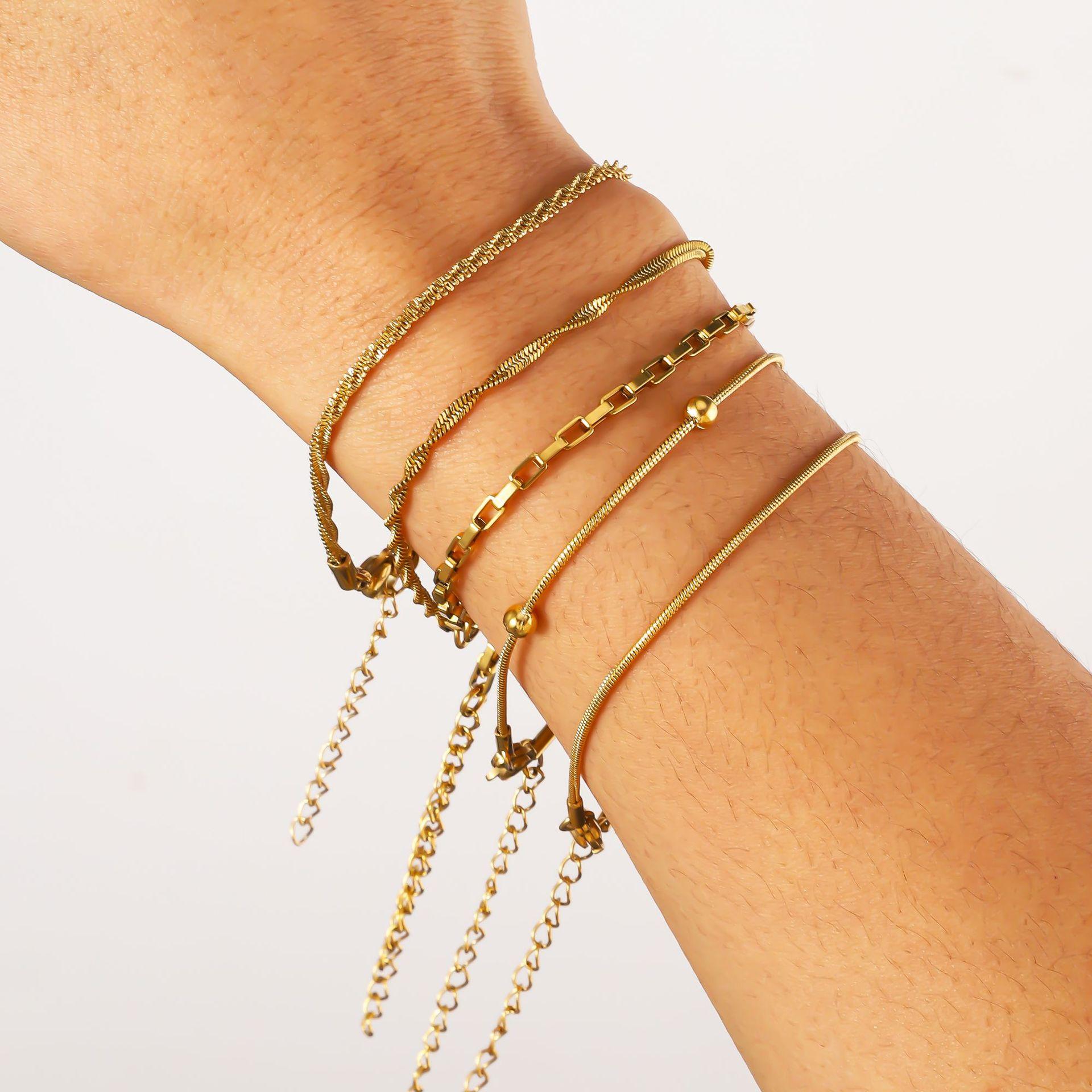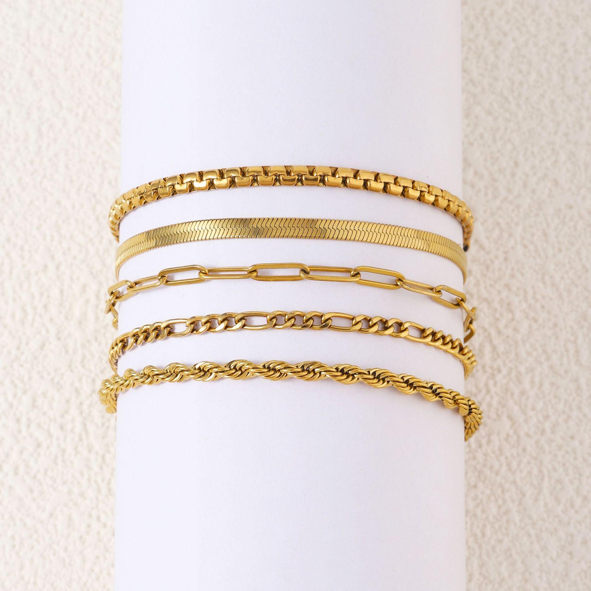 Pulsera de Acero Inoxidable Dorado para Mujer Europea y Americana Transfronteriza de Venta Caliente Chapada al Vacío Pulsera de Oro de 18K Juego de Cadena Lisa Pulsera de Acero de Titanio