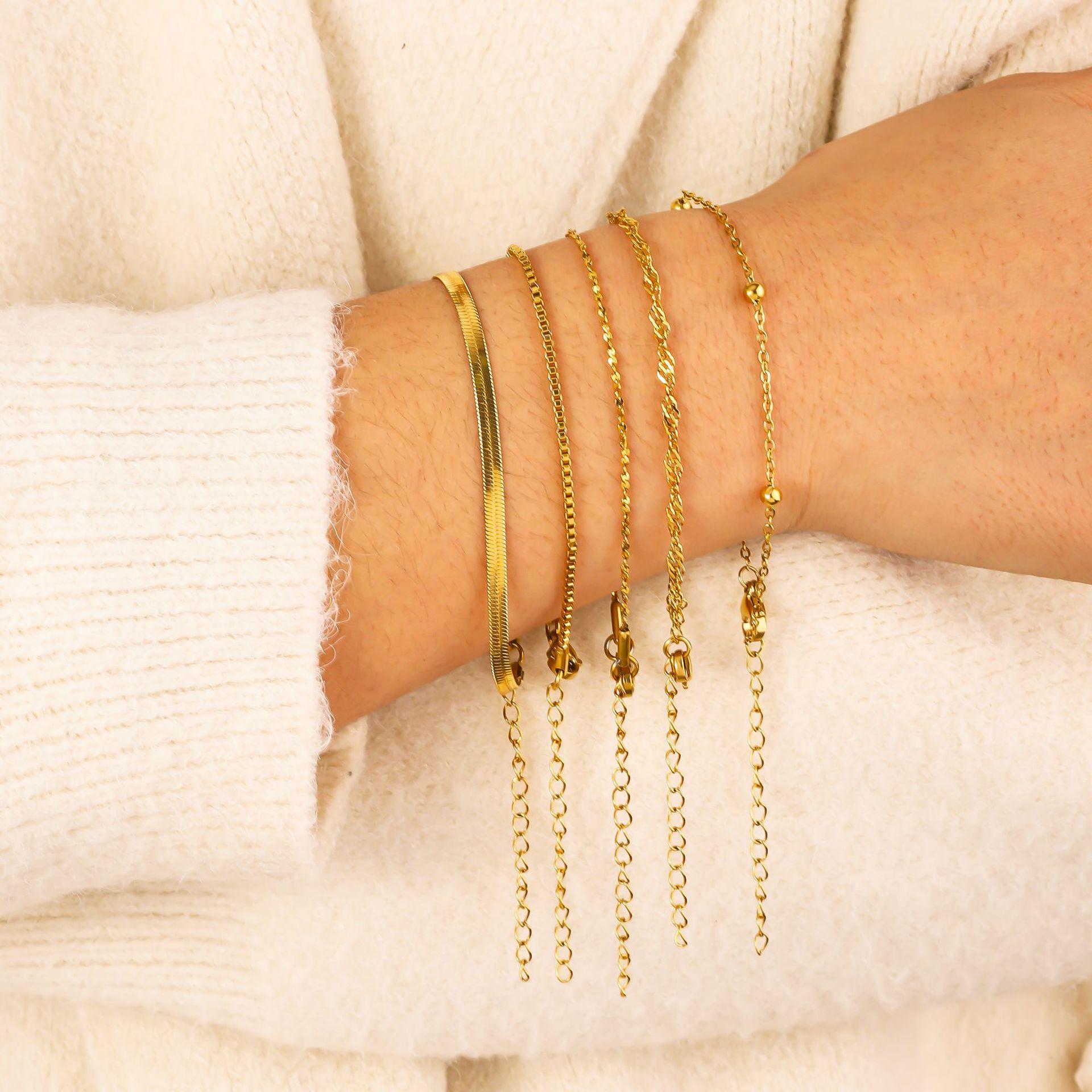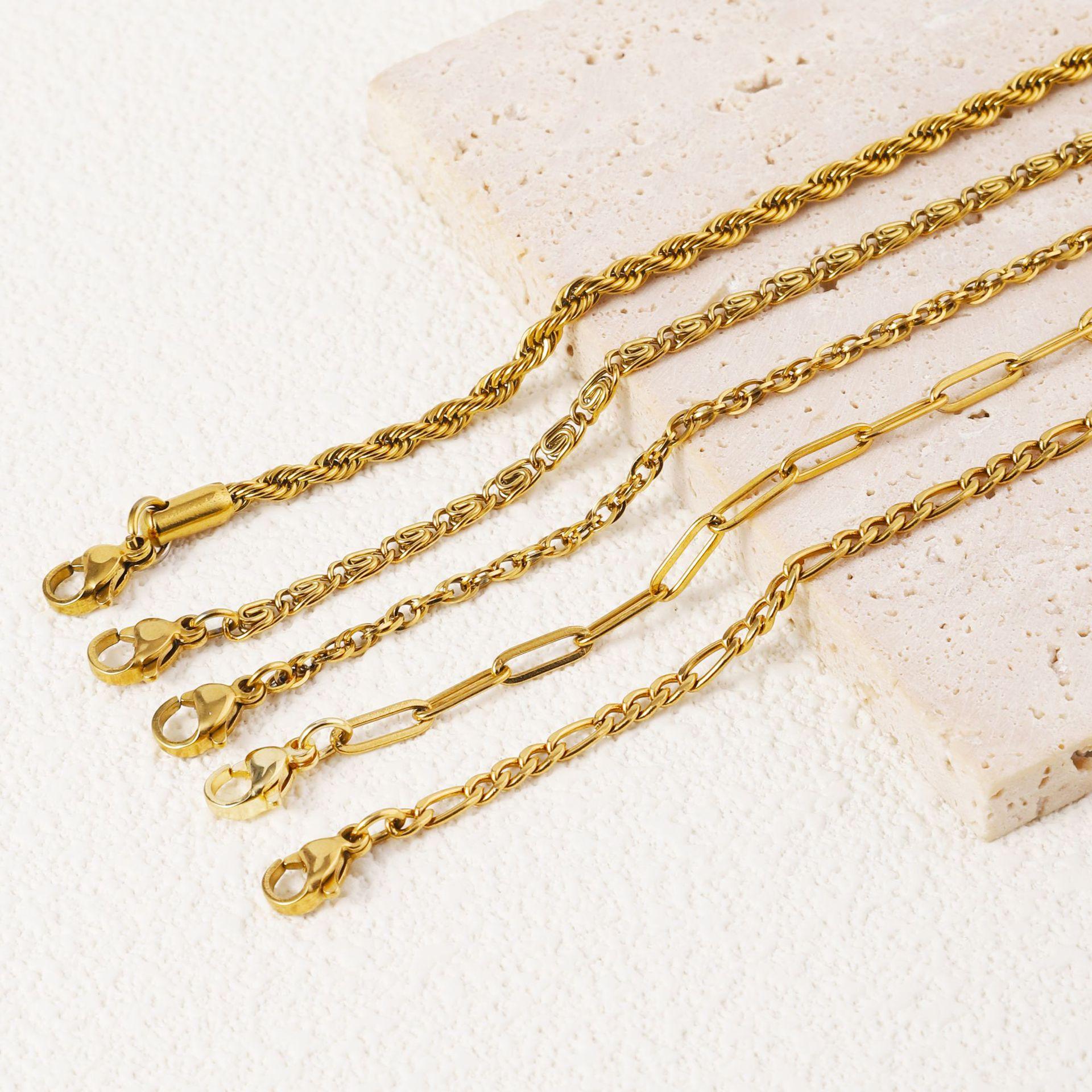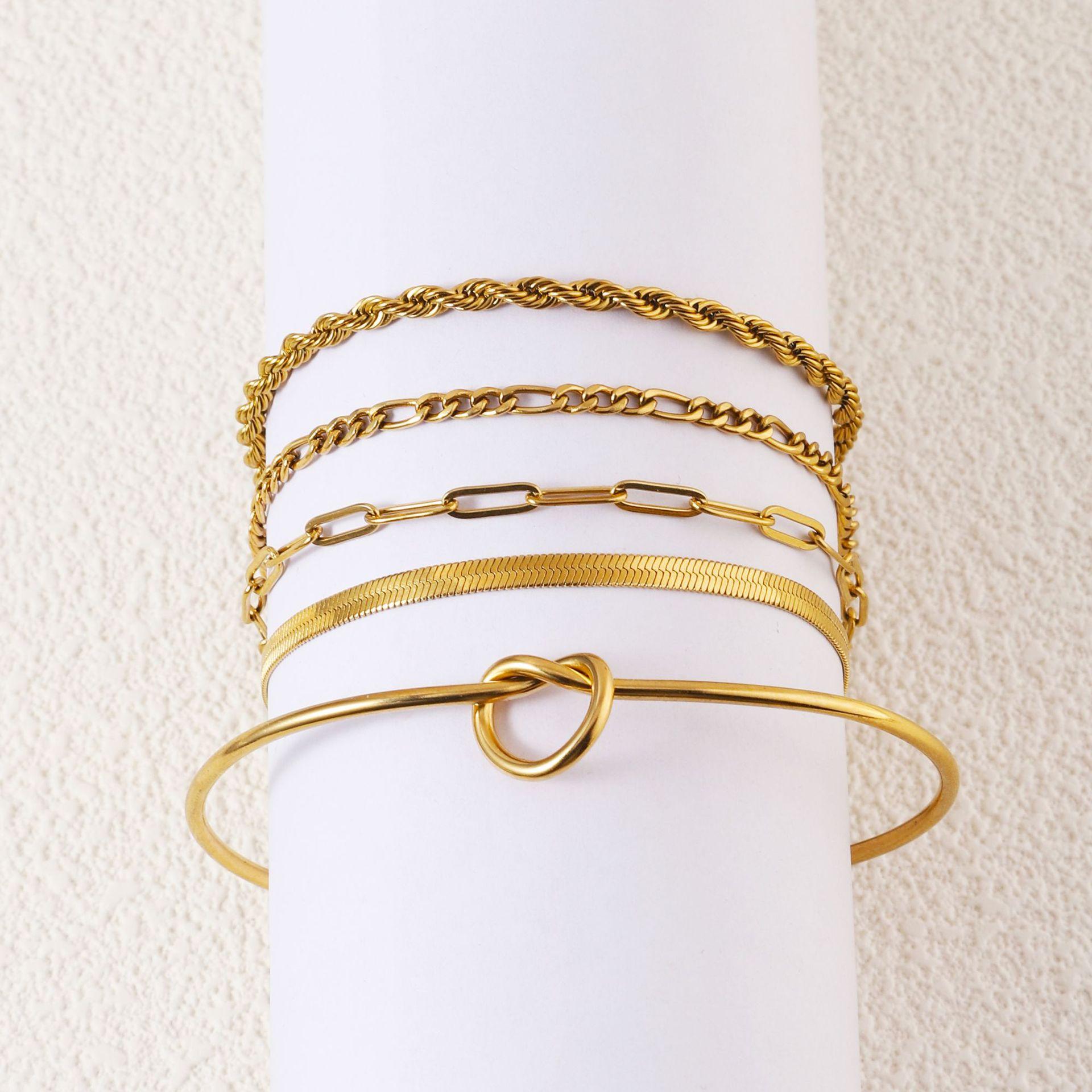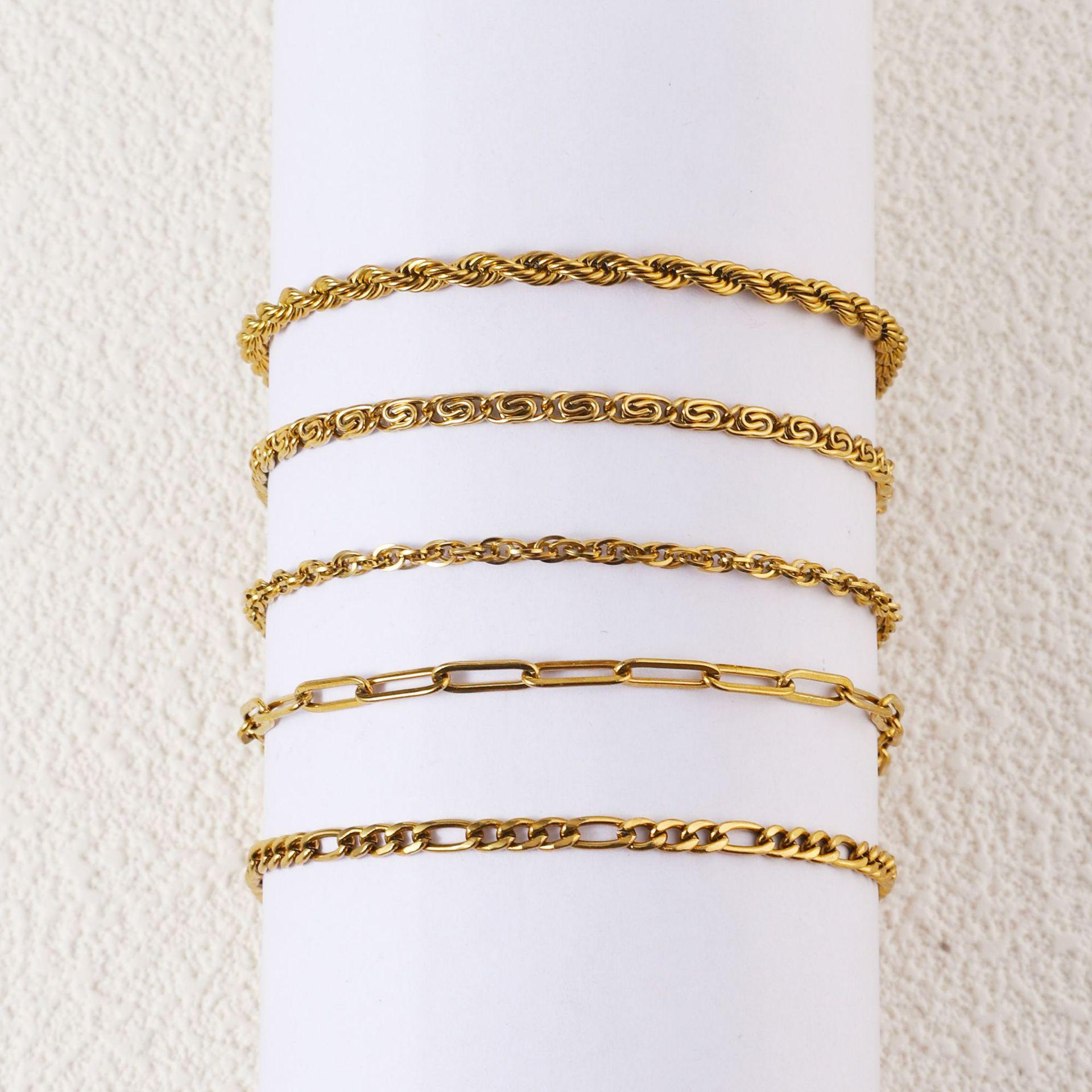 Pulsera de Acero Inoxidable Dorado para Mujer Europea y Americana Transfronteriza de Venta Caliente Chapada al Vacío Pulsera de Oro de 18K Juego de Cadena Lisa Pulsera de Acero de Titanio