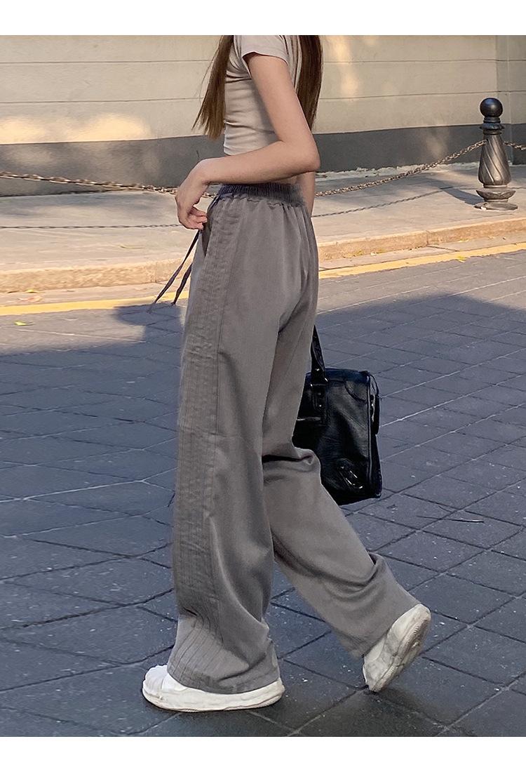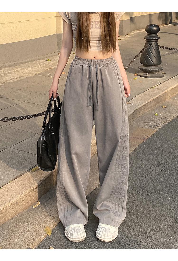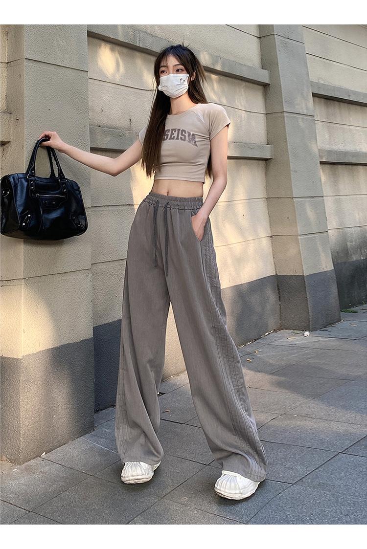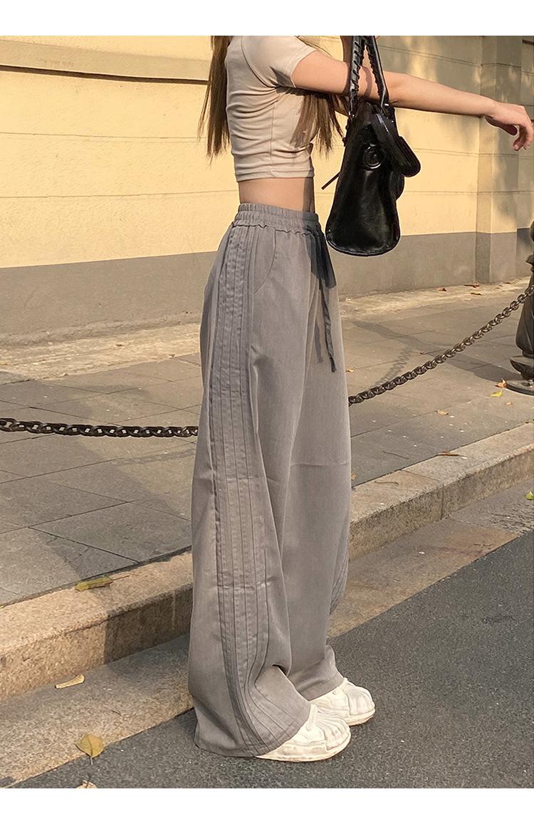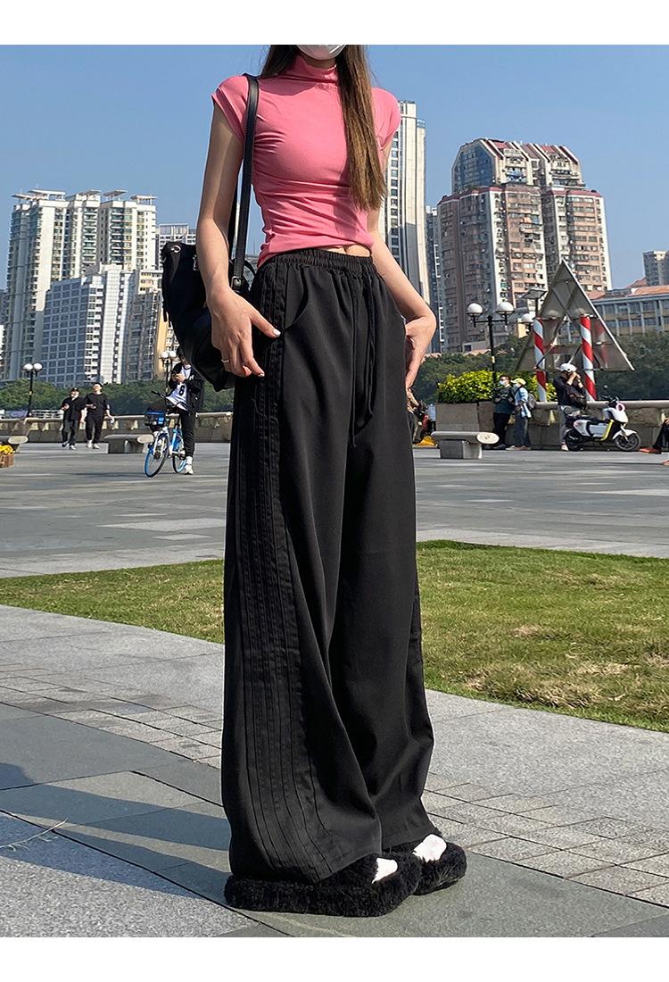 Traje Drapeado de Cintura Alta Pantalones de Pierna Ancha para Mujer Primavera y Verano Americano Retro High Street Casual Pantalones Deportivos para Personas Pequeñas Rayas Piernas Rectas