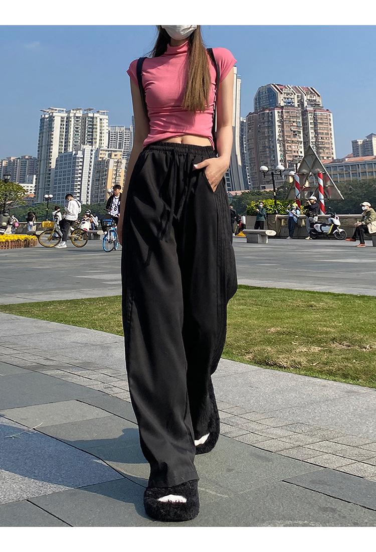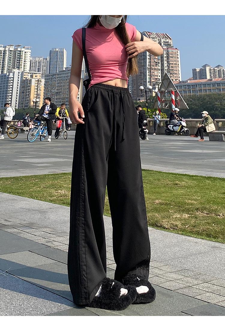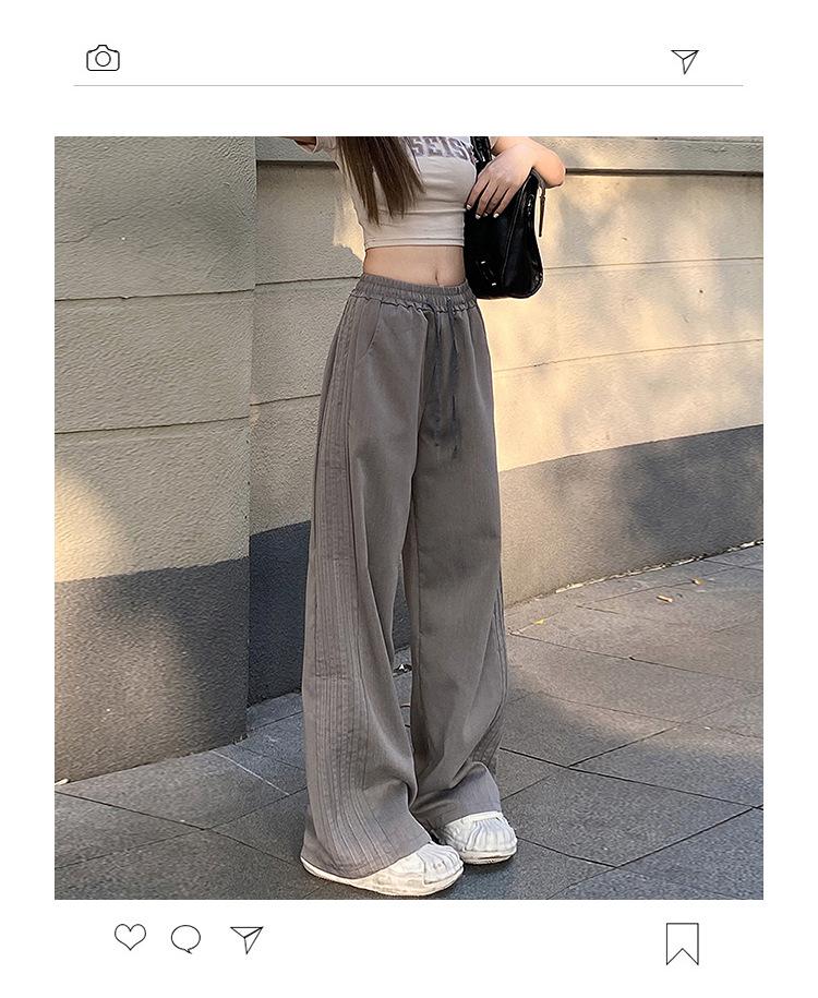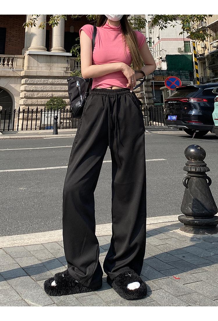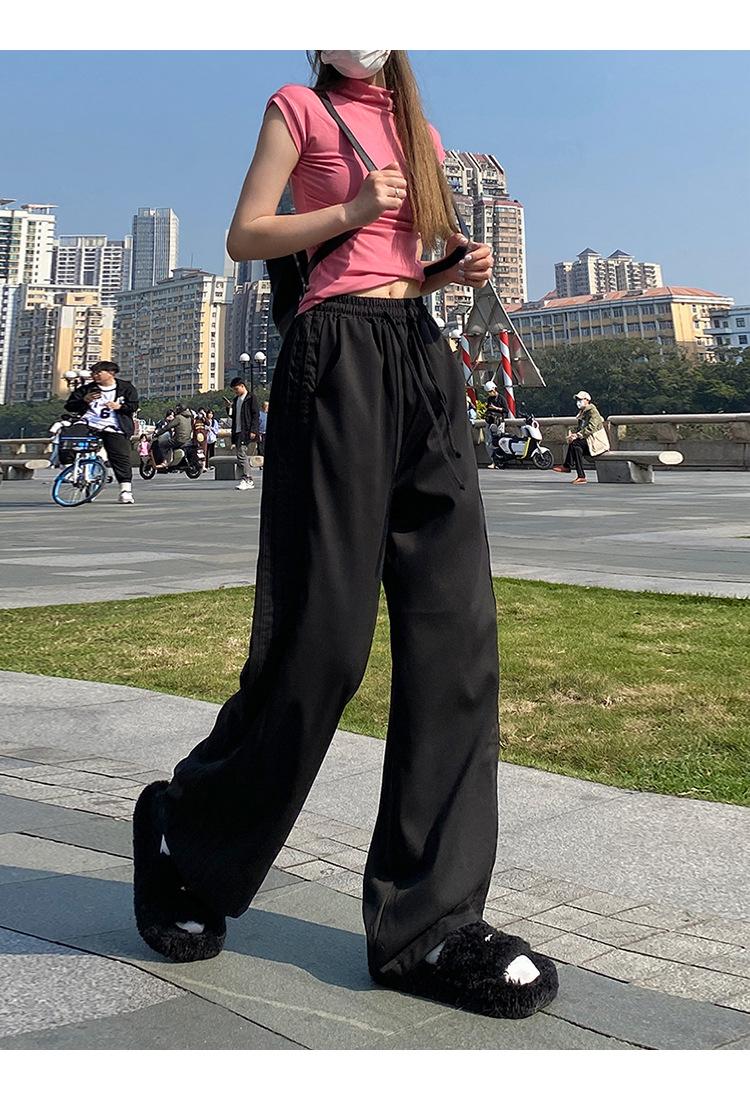 Traje Drapeado de Cintura Alta Pantalones de Pierna Ancha para Mujer Primavera y Verano Americano Retro High Street Casual Pantalones Deportivos para Personas Pequeñas Rayas Piernas Rectas