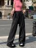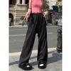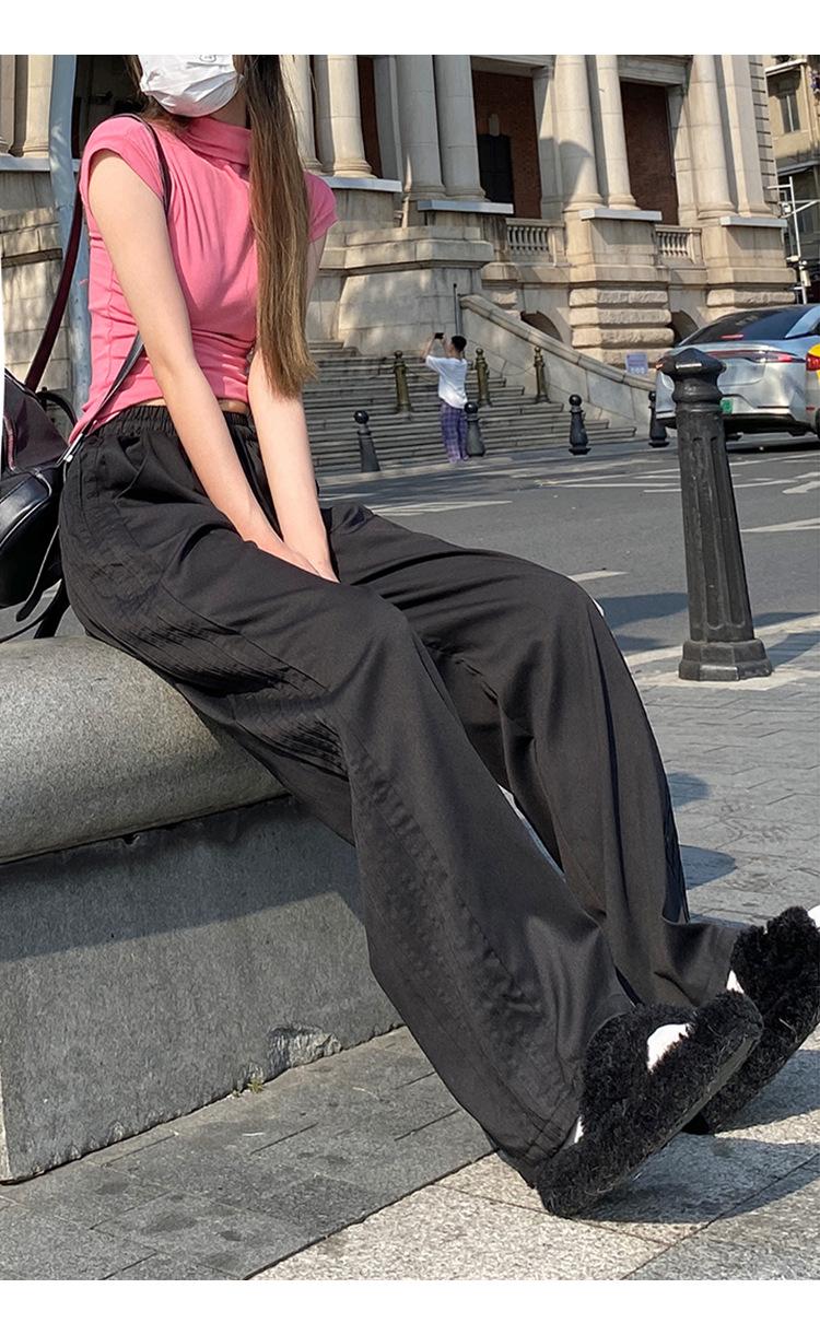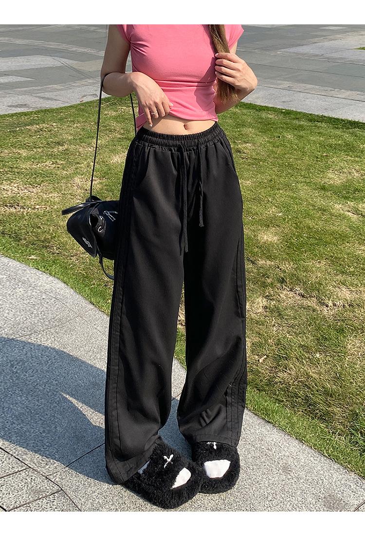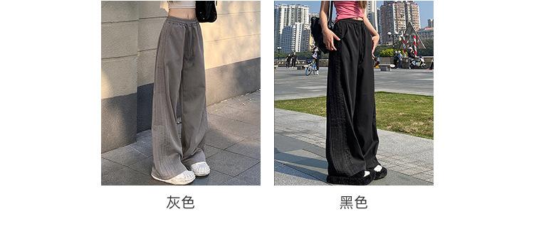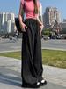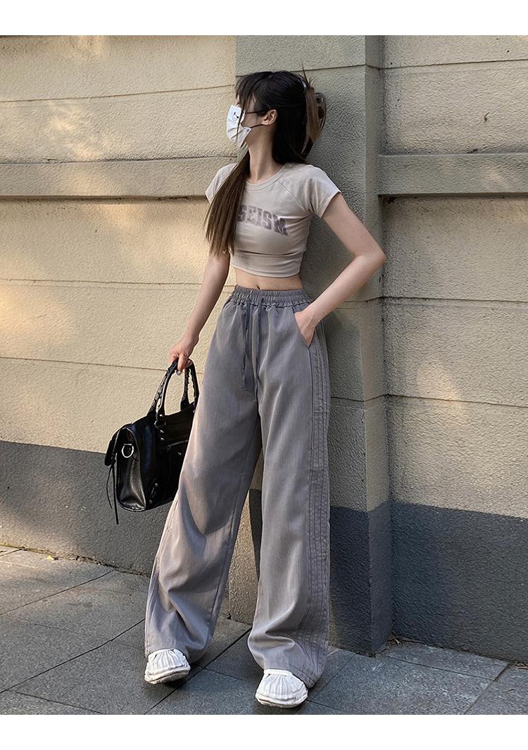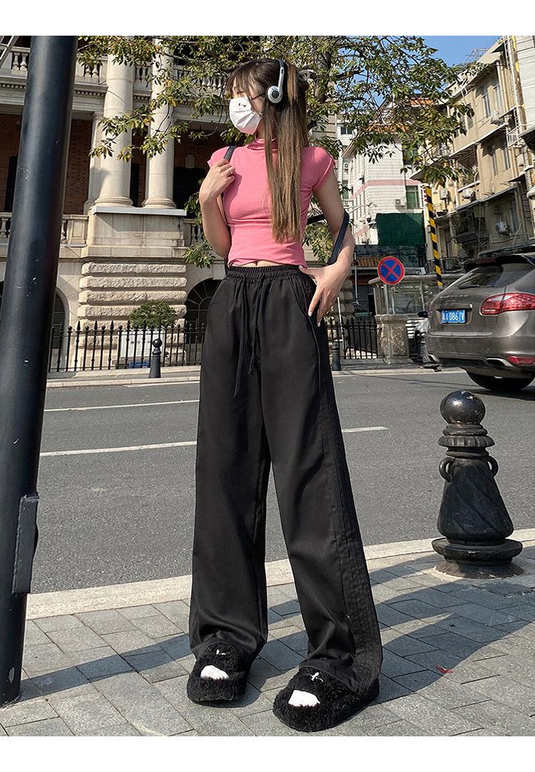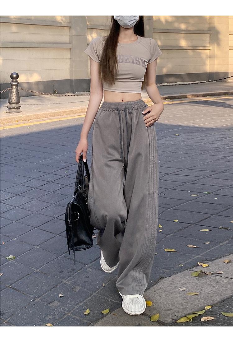 Traje Drapeado de Cintura Alta Pantalones de Pierna Ancha para Mujer Primavera y Verano Americano Retro High Street Casual Pantalones Deportivos para Personas Pequeñas Rayas Piernas Rectas