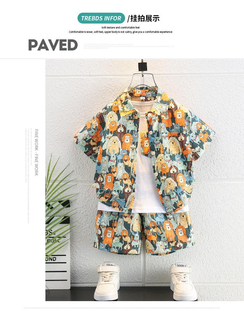 Traje para niño Verano 2025 Nuevo Camisa de manga corta a la moda estilo occidental para niños Verano Niños guapos Ropa para niños