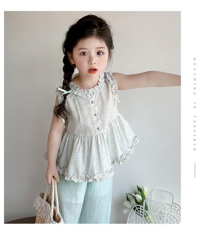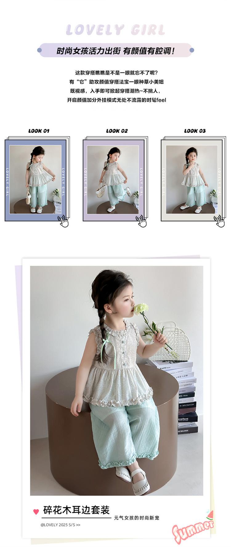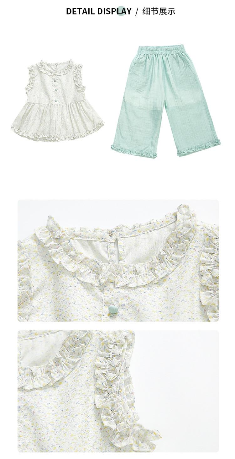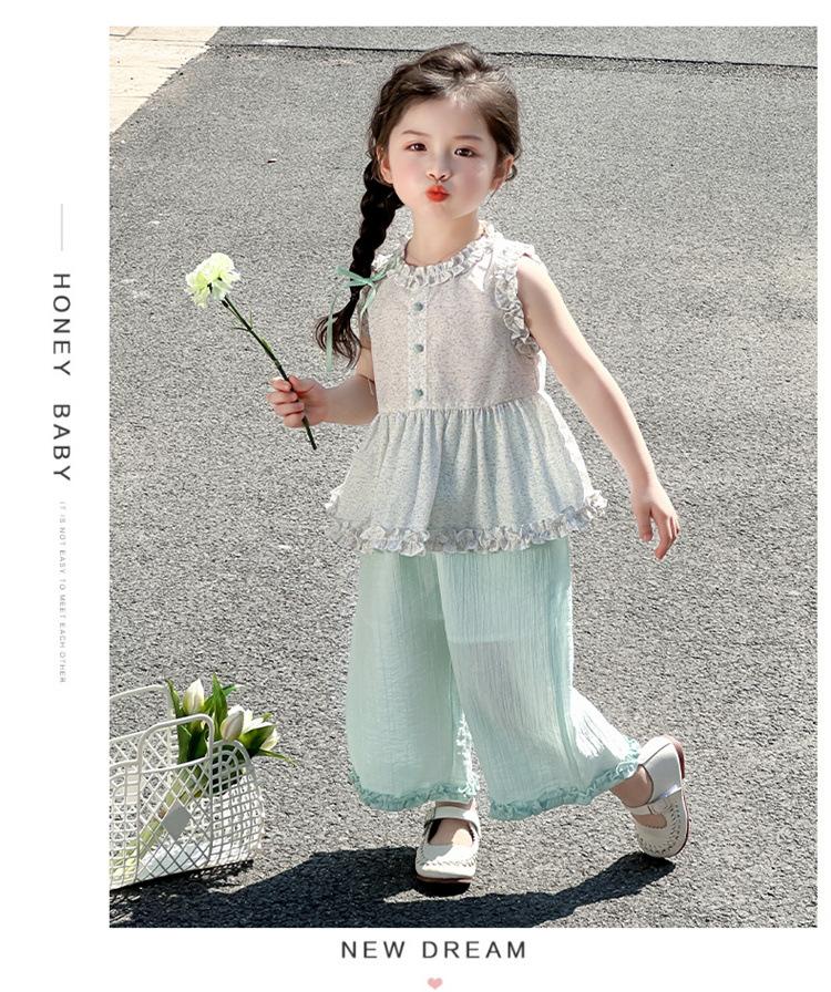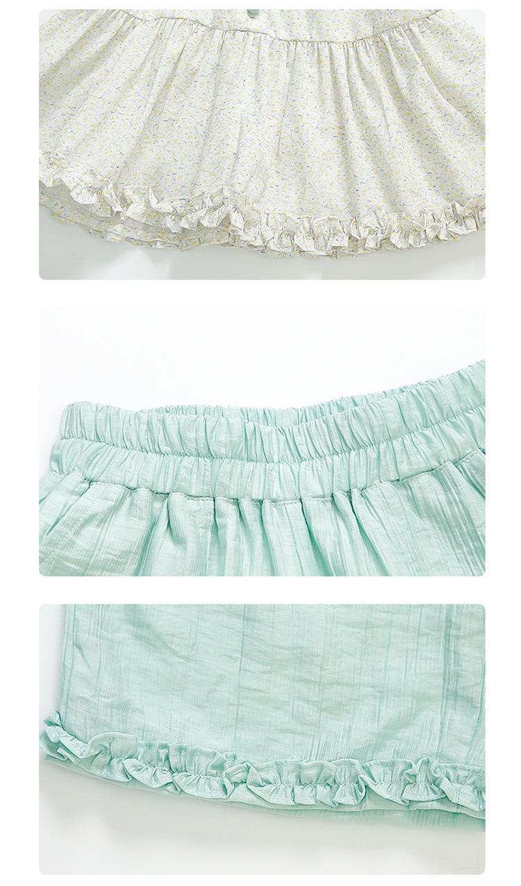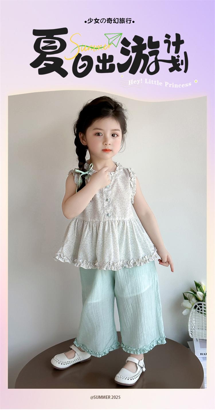 Traje floral con borde de oreja para niña 2025 Verano Nueva Moda Conjunto elegante de dos piezas para niña Vestido de verano para niños