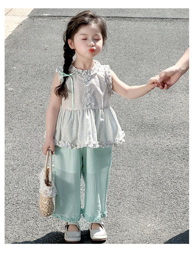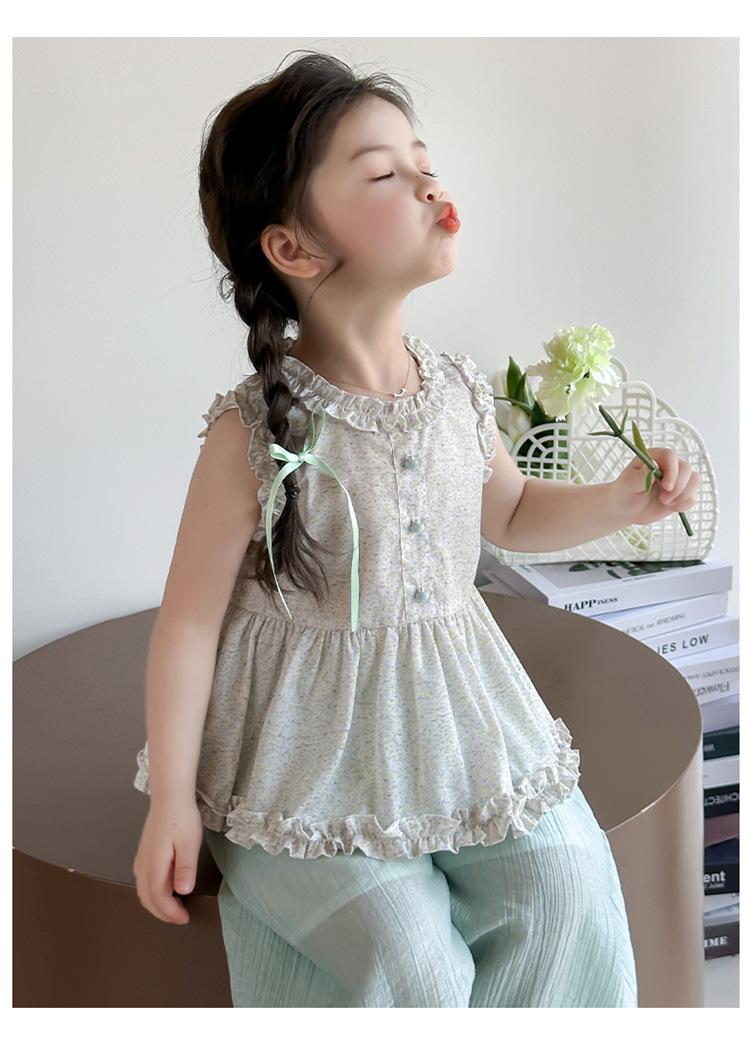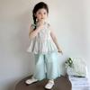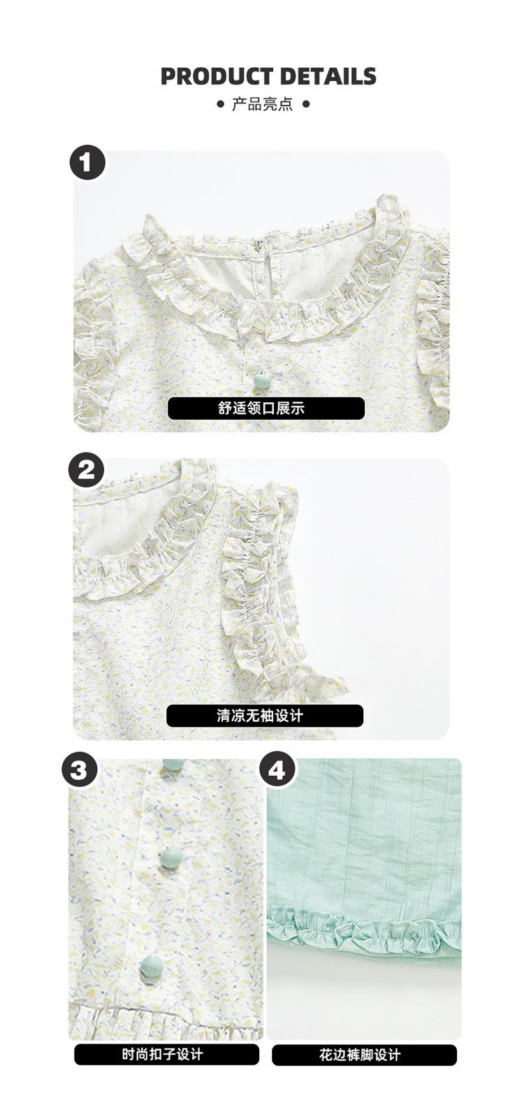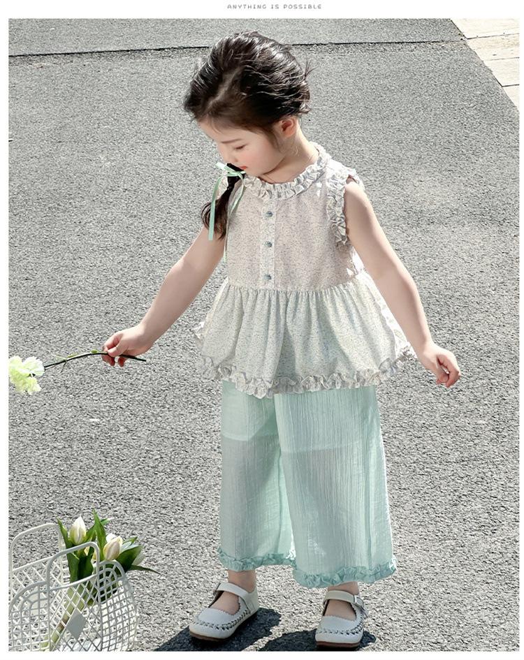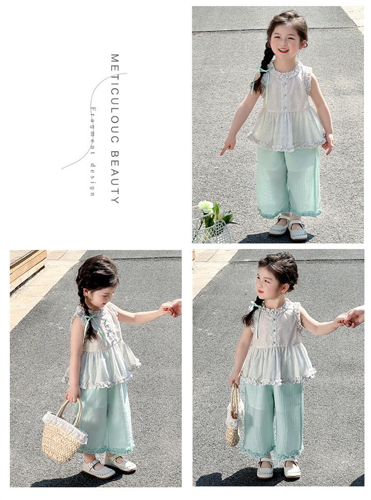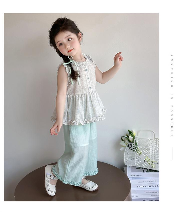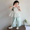 Traje floral con borde de oreja para niña 2025 Verano Nueva Moda Conjunto elegante de dos piezas para niña Vestido de verano para niños