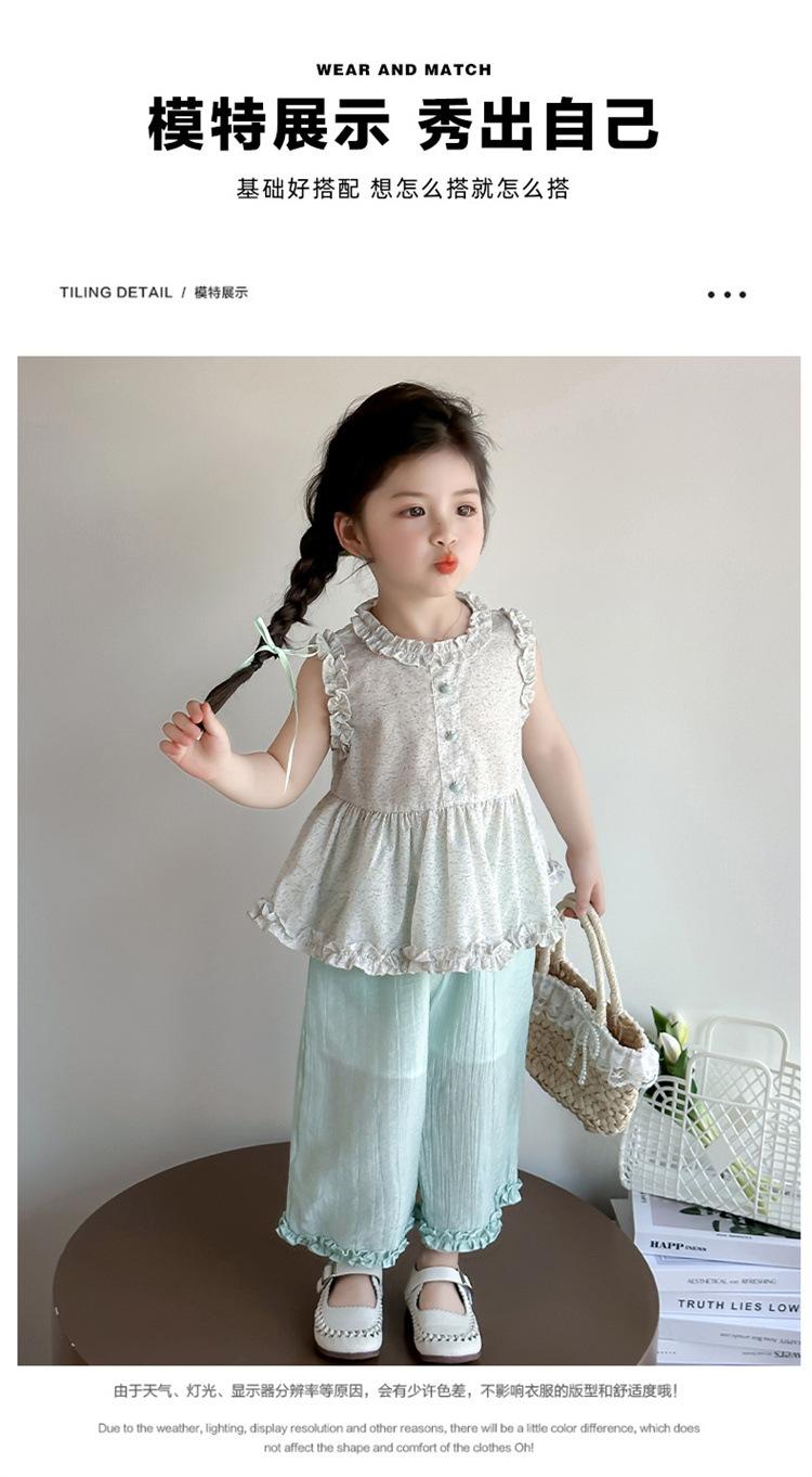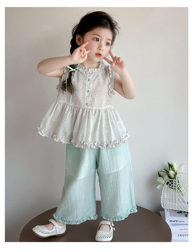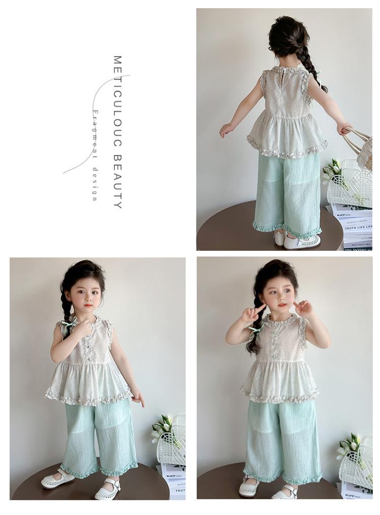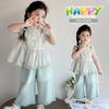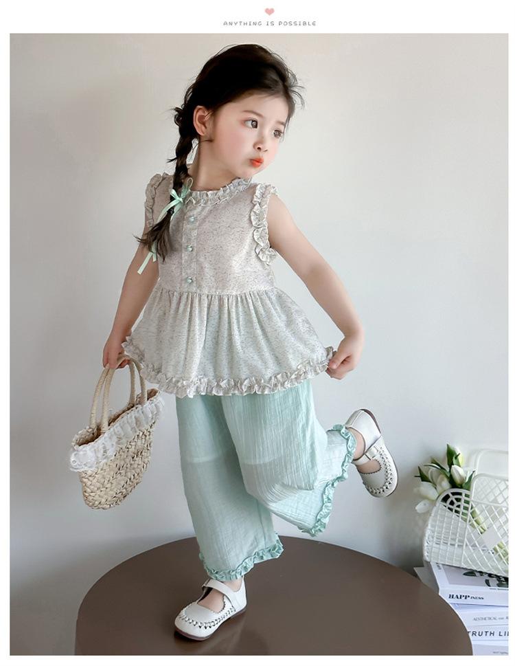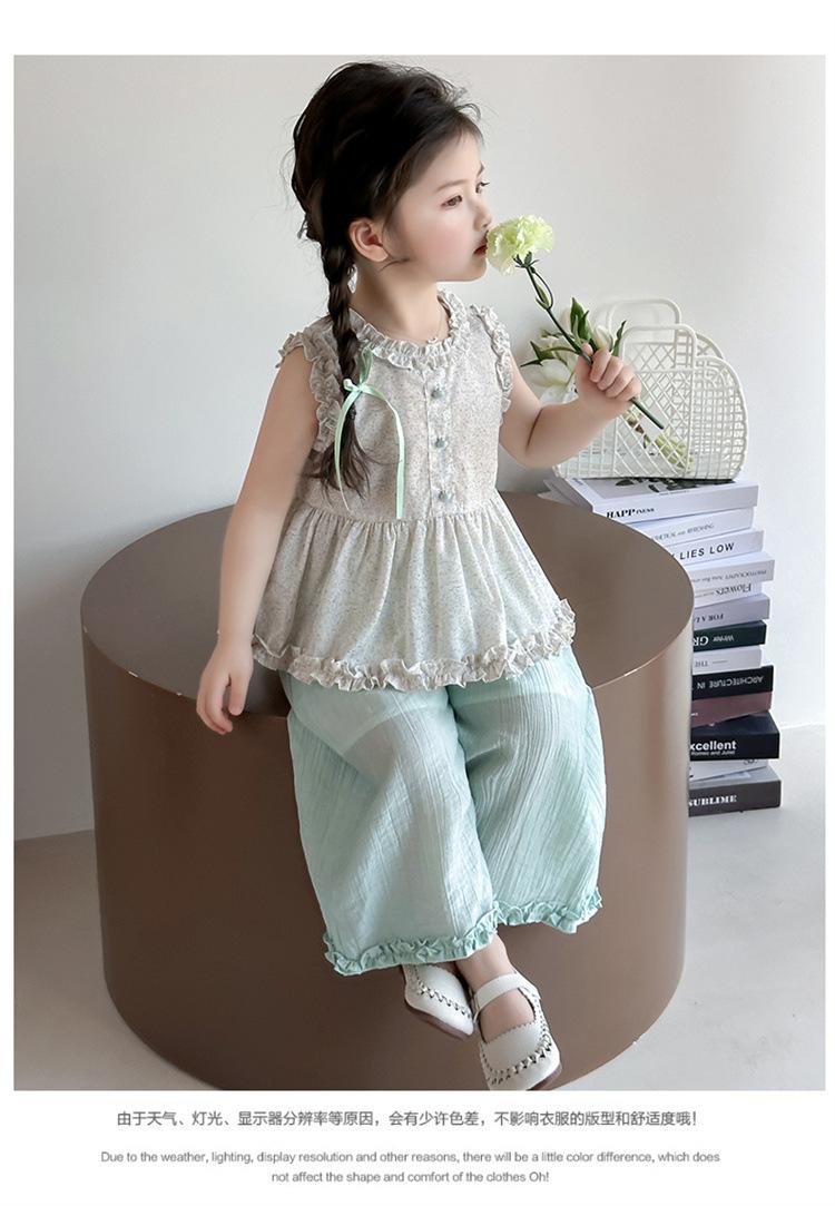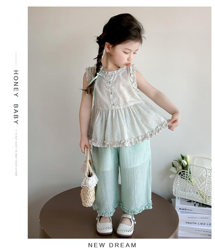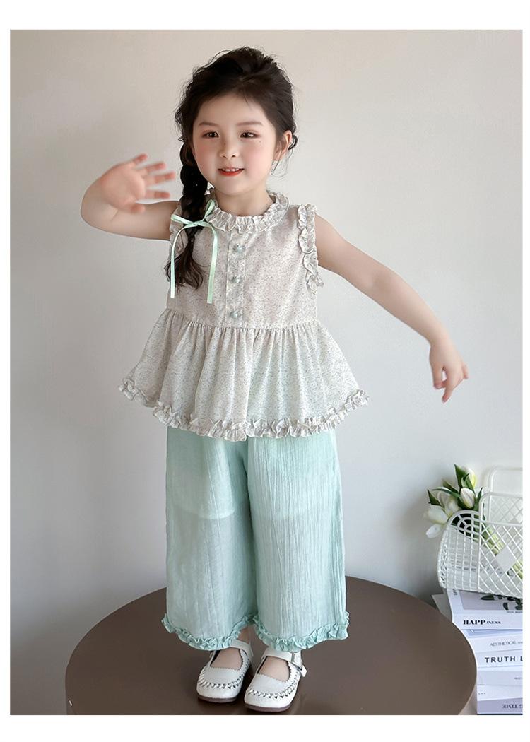 Traje floral con borde de oreja para niña 2025 Verano Nueva Moda Conjunto elegante de dos piezas para niña Vestido de verano para niños
