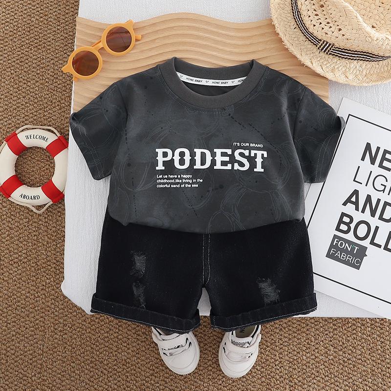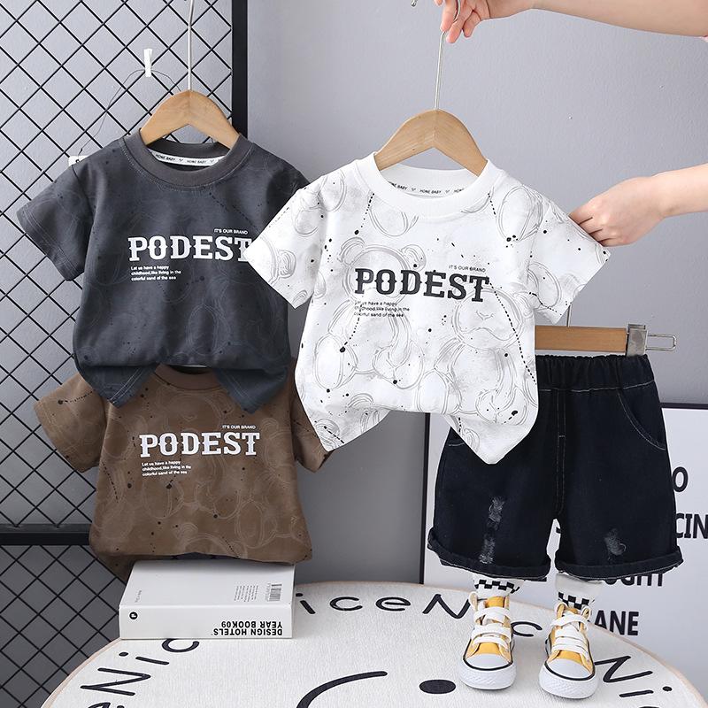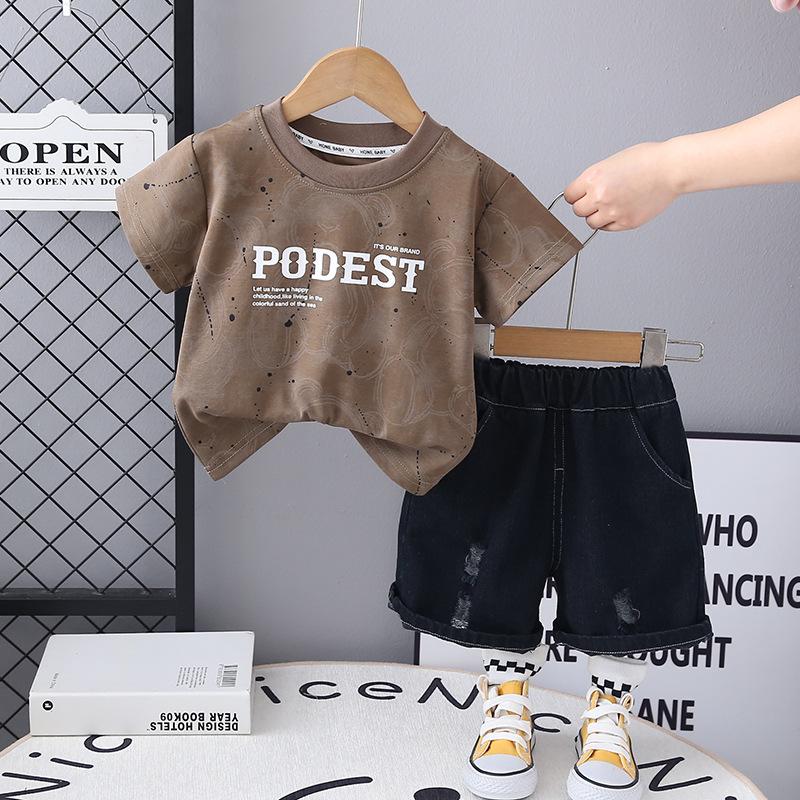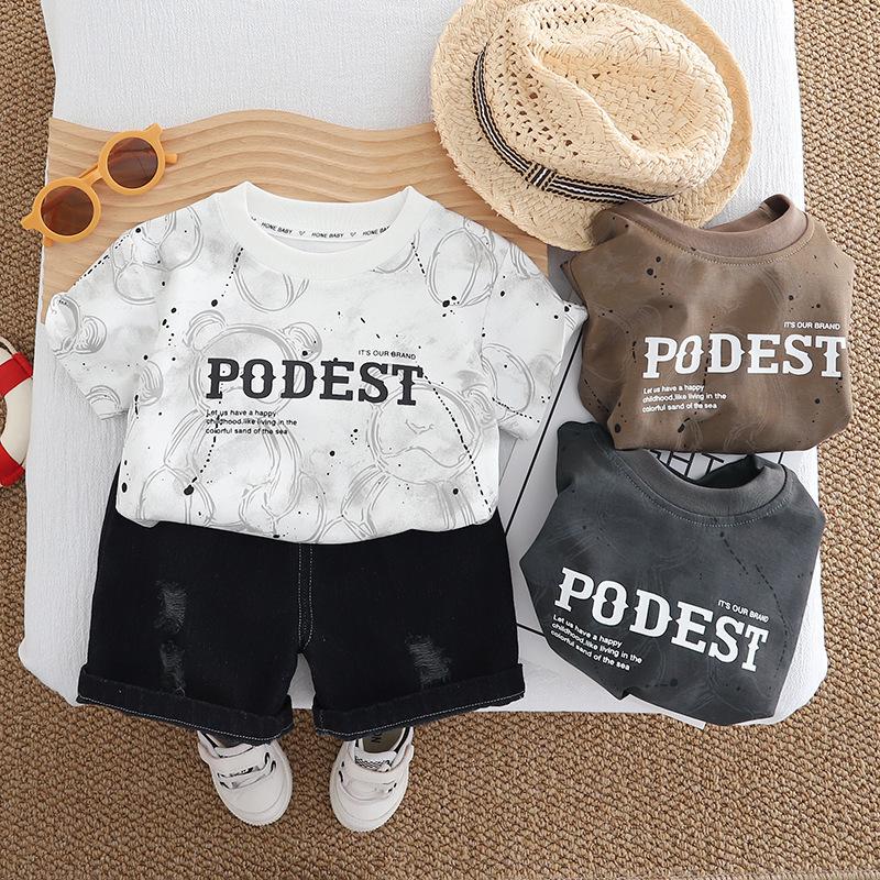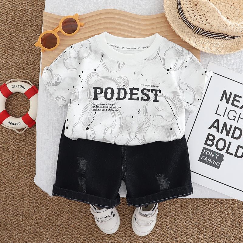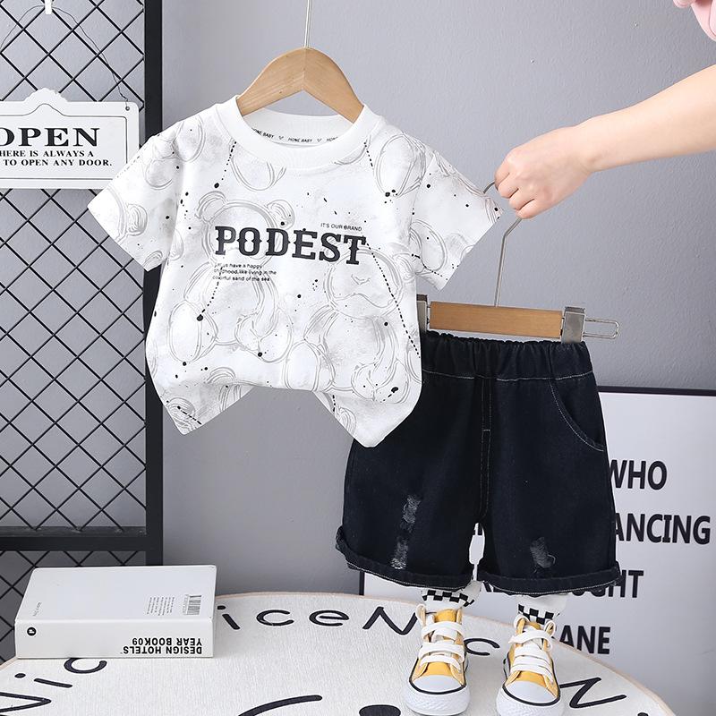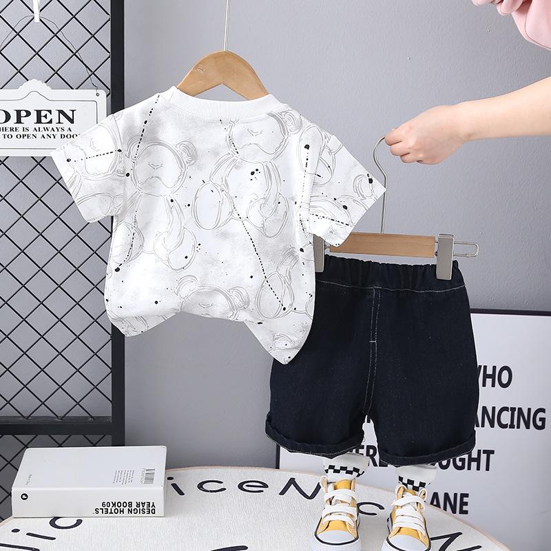 Compra Traje de Ropa de Verano para Niños 2025 Nuevo Estilo Occidental Bebé Ropa de Dos Piezas de Oso de Manga Corta y Pantalones Cortos al por mayor en Joom.pro
