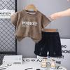 Traje de Ropa de Verano para Niños 2025 Nuevo Estilo Occidental Bebé Ropa de Dos Piezas de Oso de Manga Corta y Pantalones Cortos