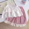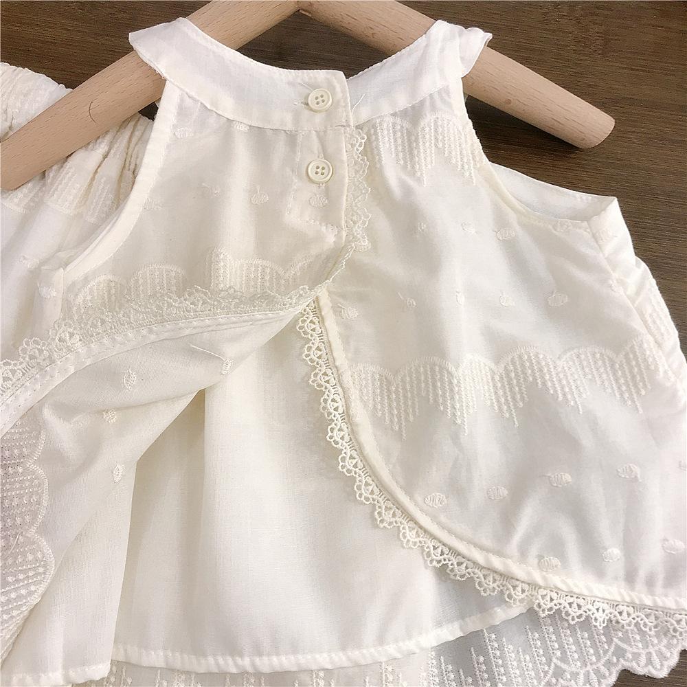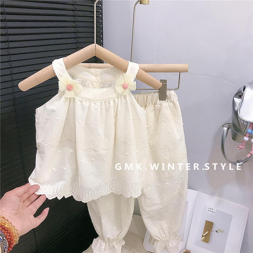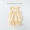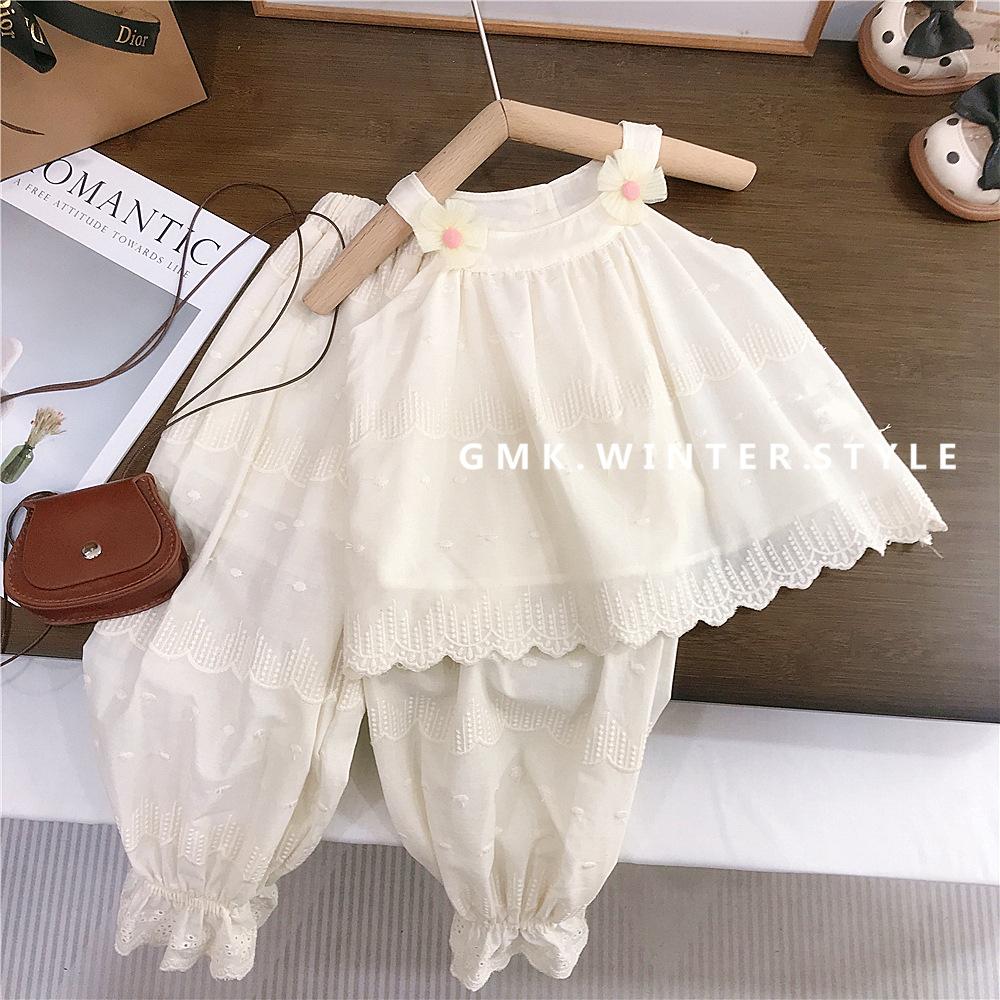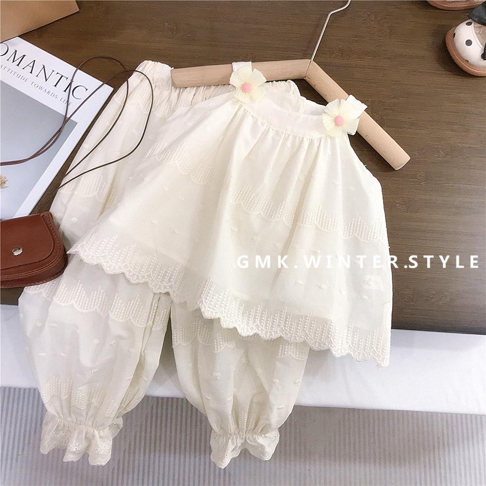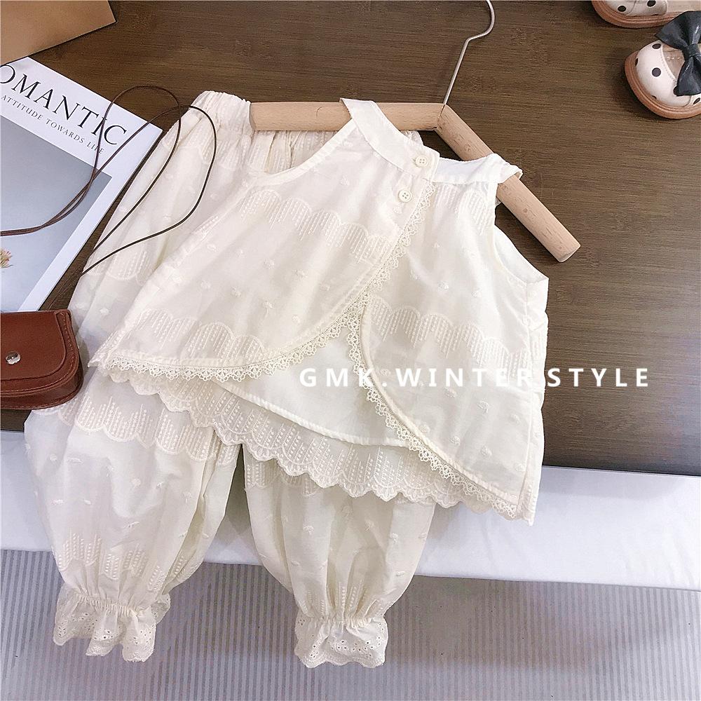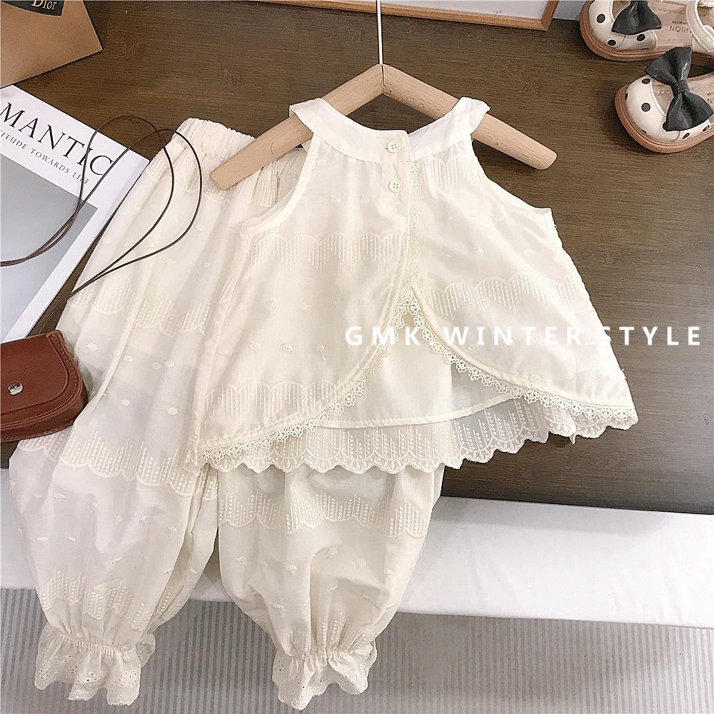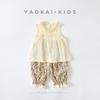 Traje de chaleco de verano para niñas Nuevo Sling para niños Pantalones antimosquitos Encaje de dos piezas Ropa de algodón para bebé Comercio exterior