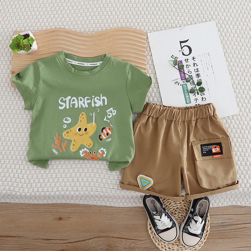 Traje de Bebé de Dos Piezas de Manga Corta y Cuello Redondo de Dibujos Animados para Niños, Verano Nuevo 2025, Ropa de Niño Moderna y Guapa