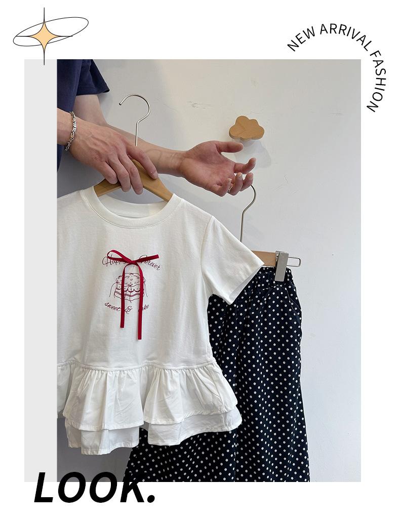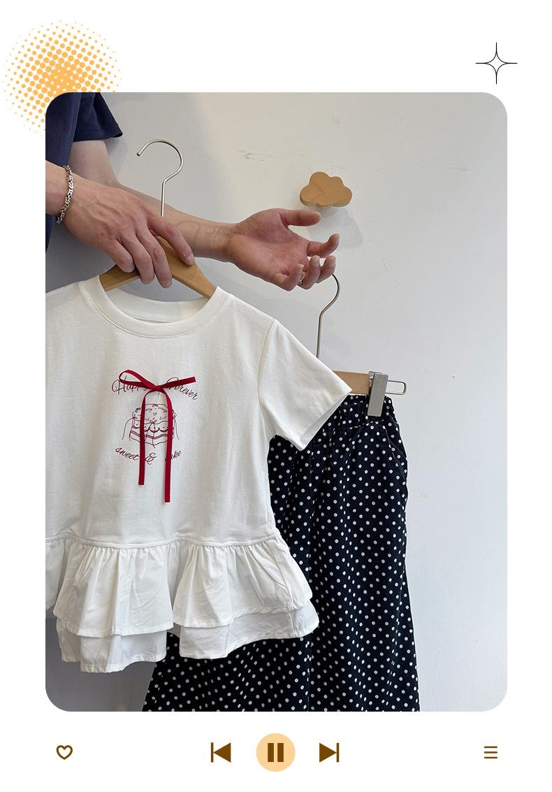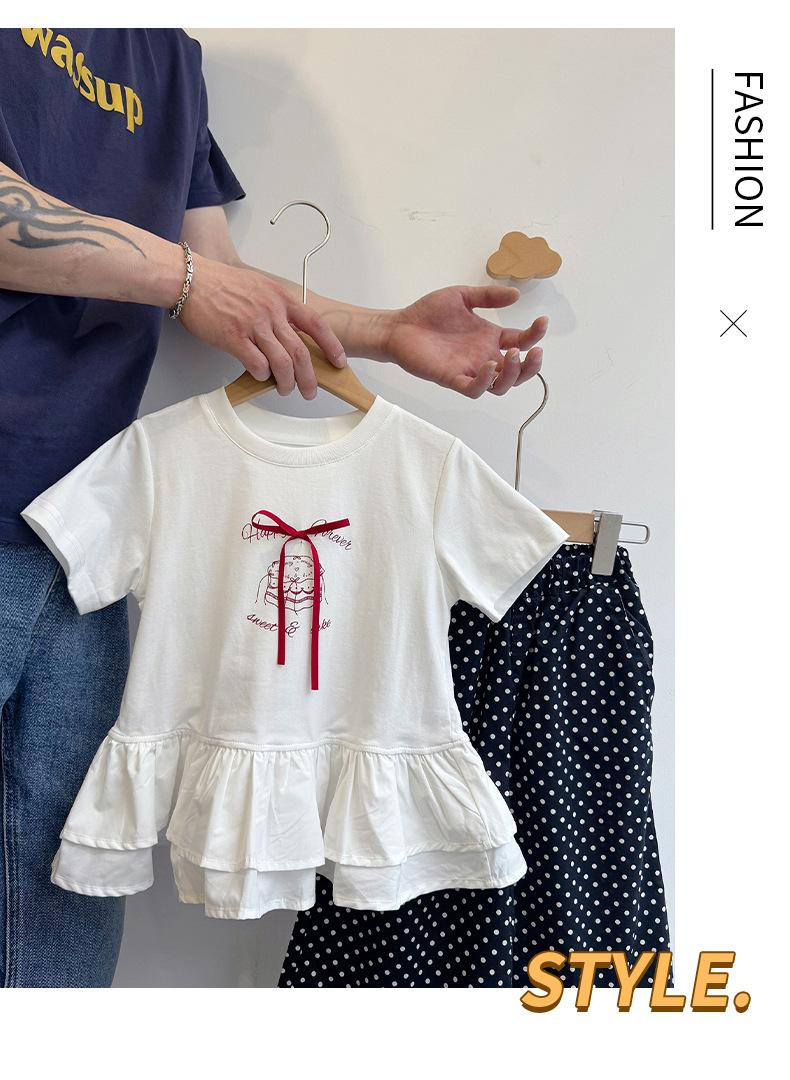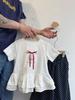Traje de verano para niña 2025 Bebé Niña Dulce Lazo Top de Manga Corta con Volantes