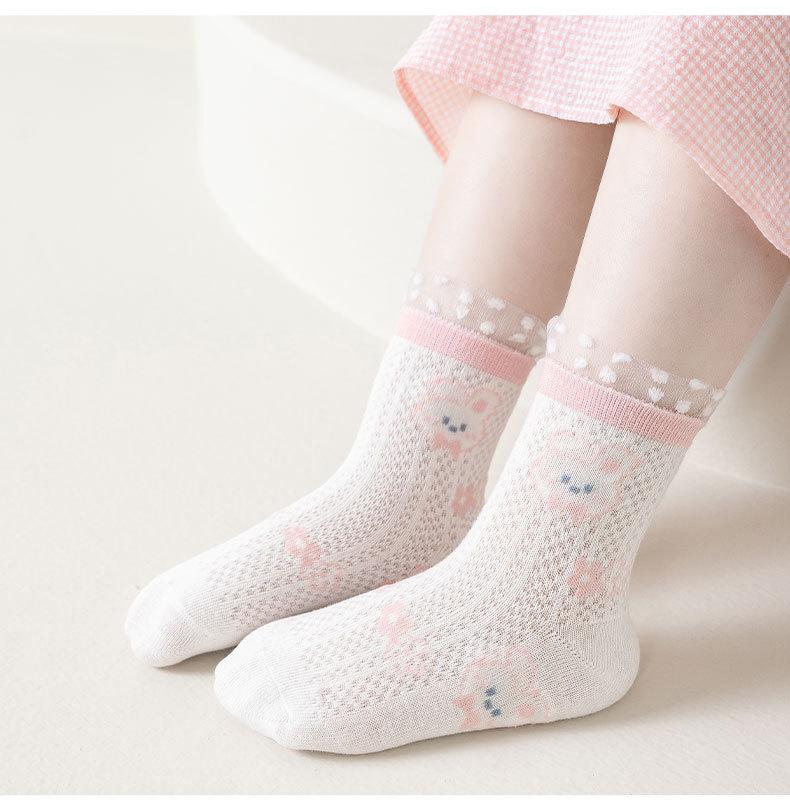 Calcetines para Niñas Primavera y Verano Calcetines de Malla de Media Caña Calcetines Coreanos de Encaje de Princesa Calcetines de Algodón Transpirables para Niñas Pequeñas Primavera y Otoño