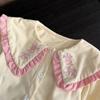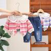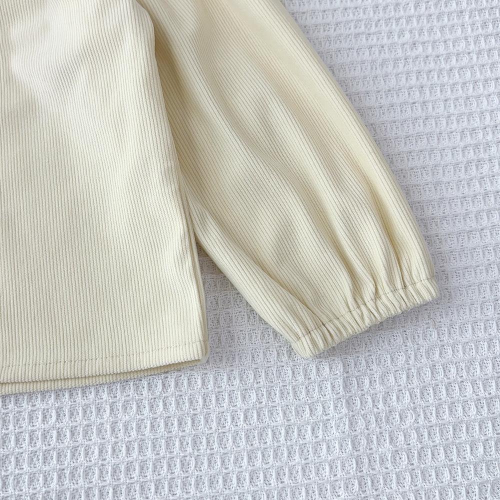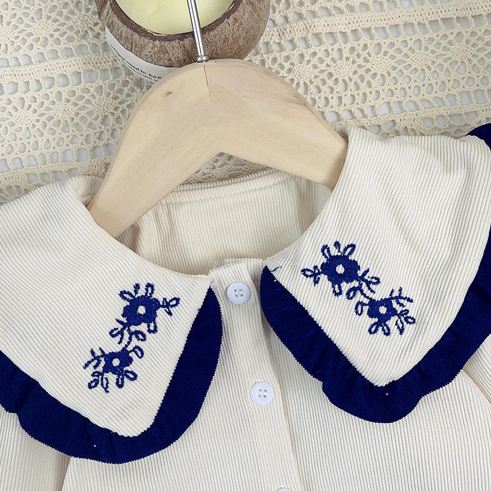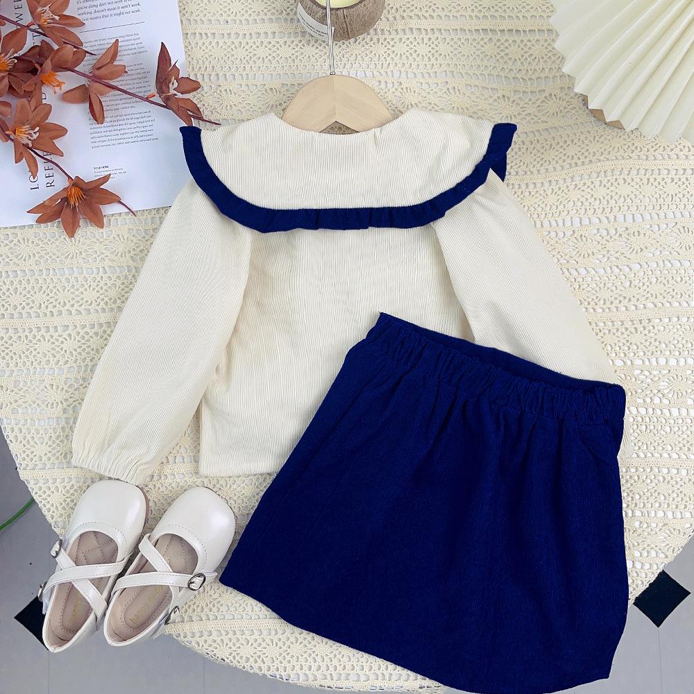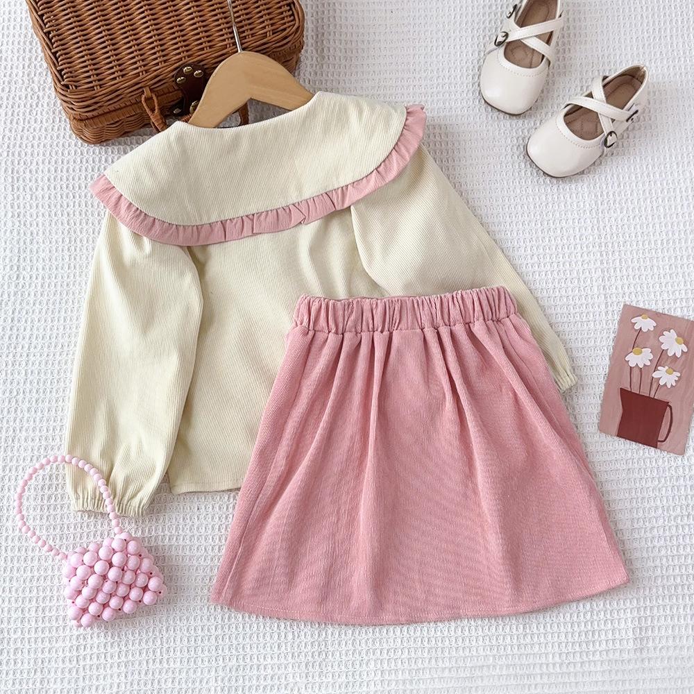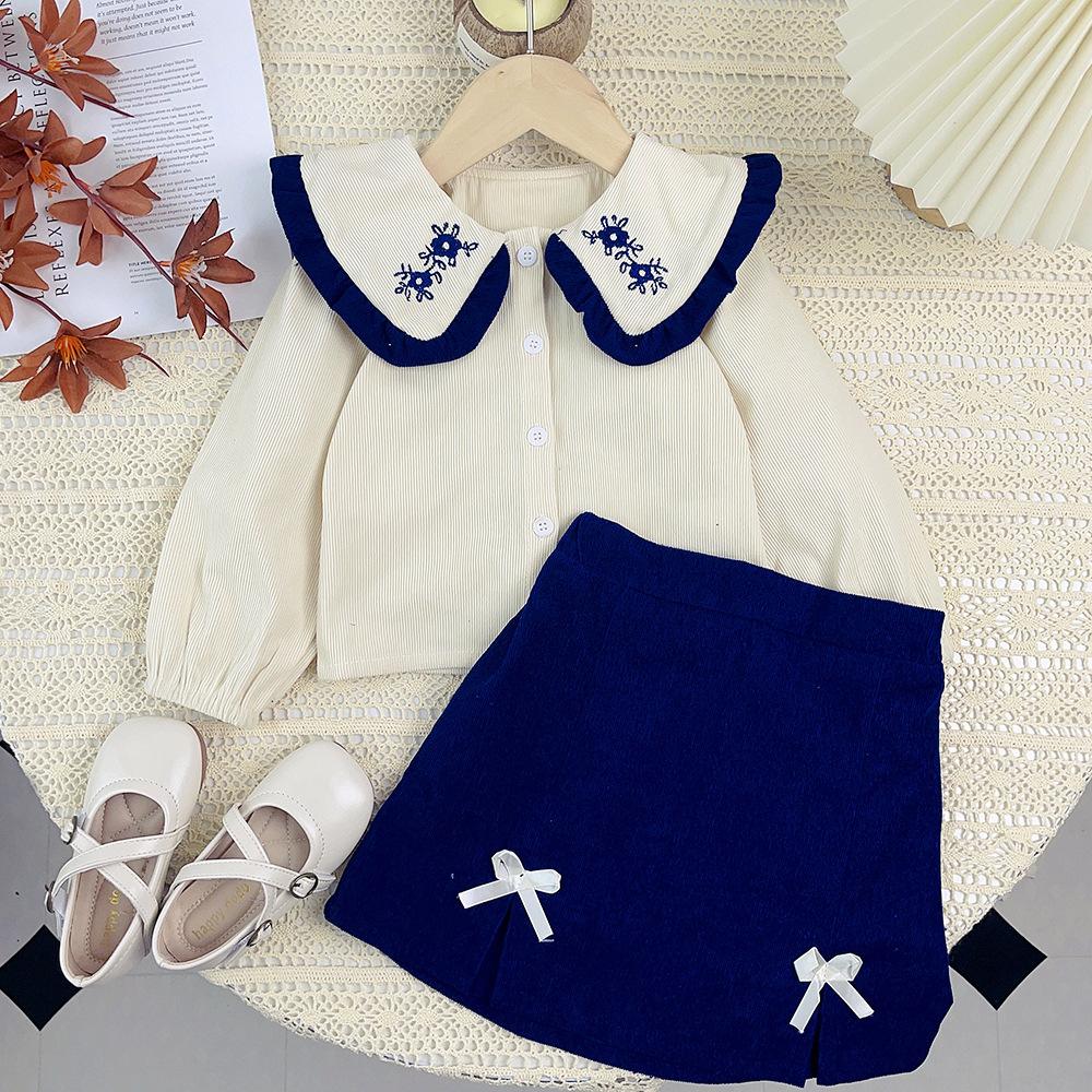 Traje Nuevo de Otoño para Niños Bebé Niña Encaje Bordado Cuello de Muñeca Top de Manga Larga Falda con Lazo Conjunto de Dos Piezas