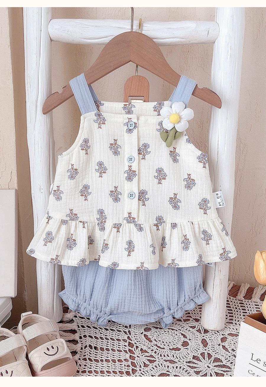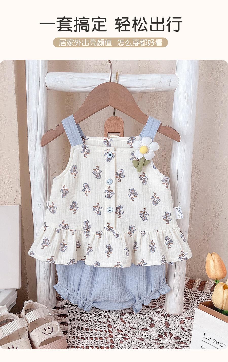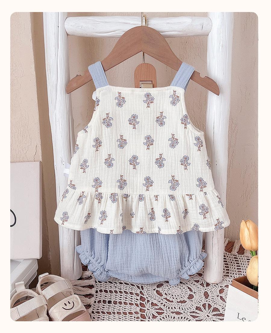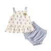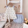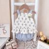 Traje para niña Verano Nuevo Algodón para niños Pantalones de tirantes Conjunto de dos piezas de verano para bebé