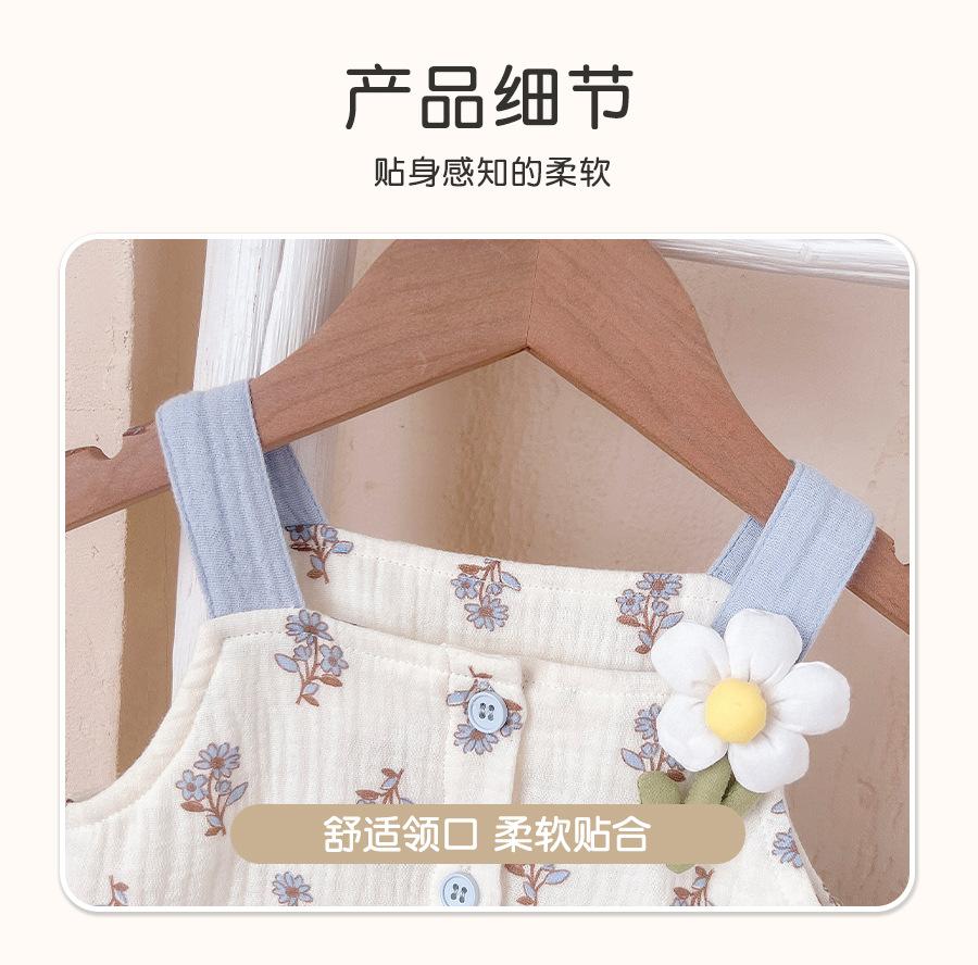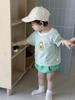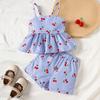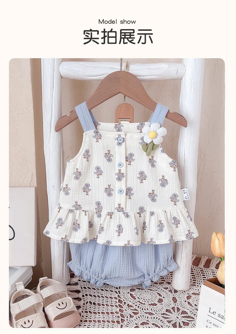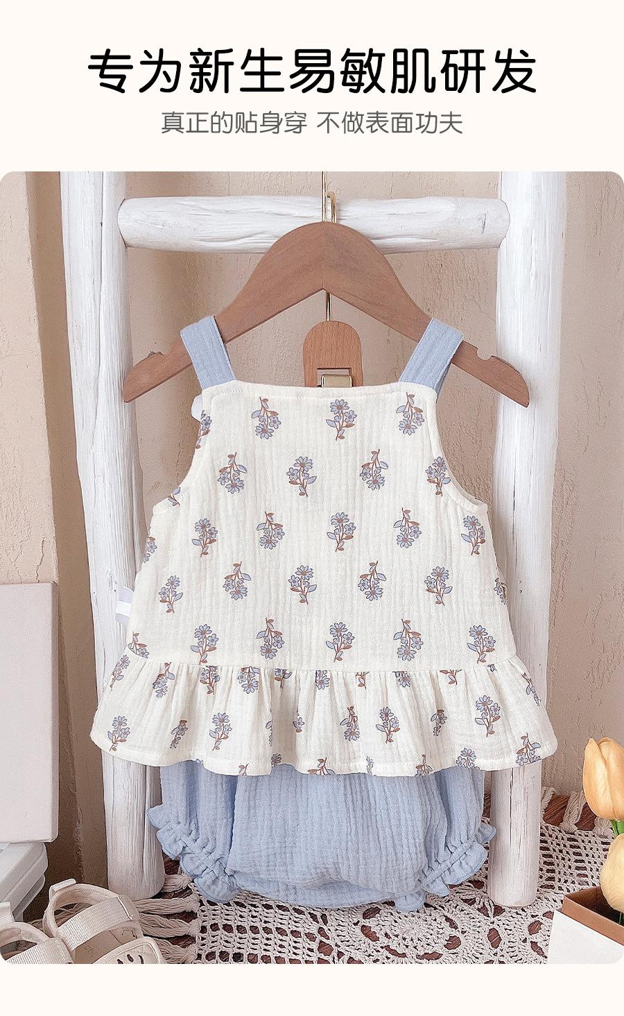 Traje para niña Verano Nuevo Algodón para niños Pantalones de tirantes Conjunto de dos piezas de verano para bebé