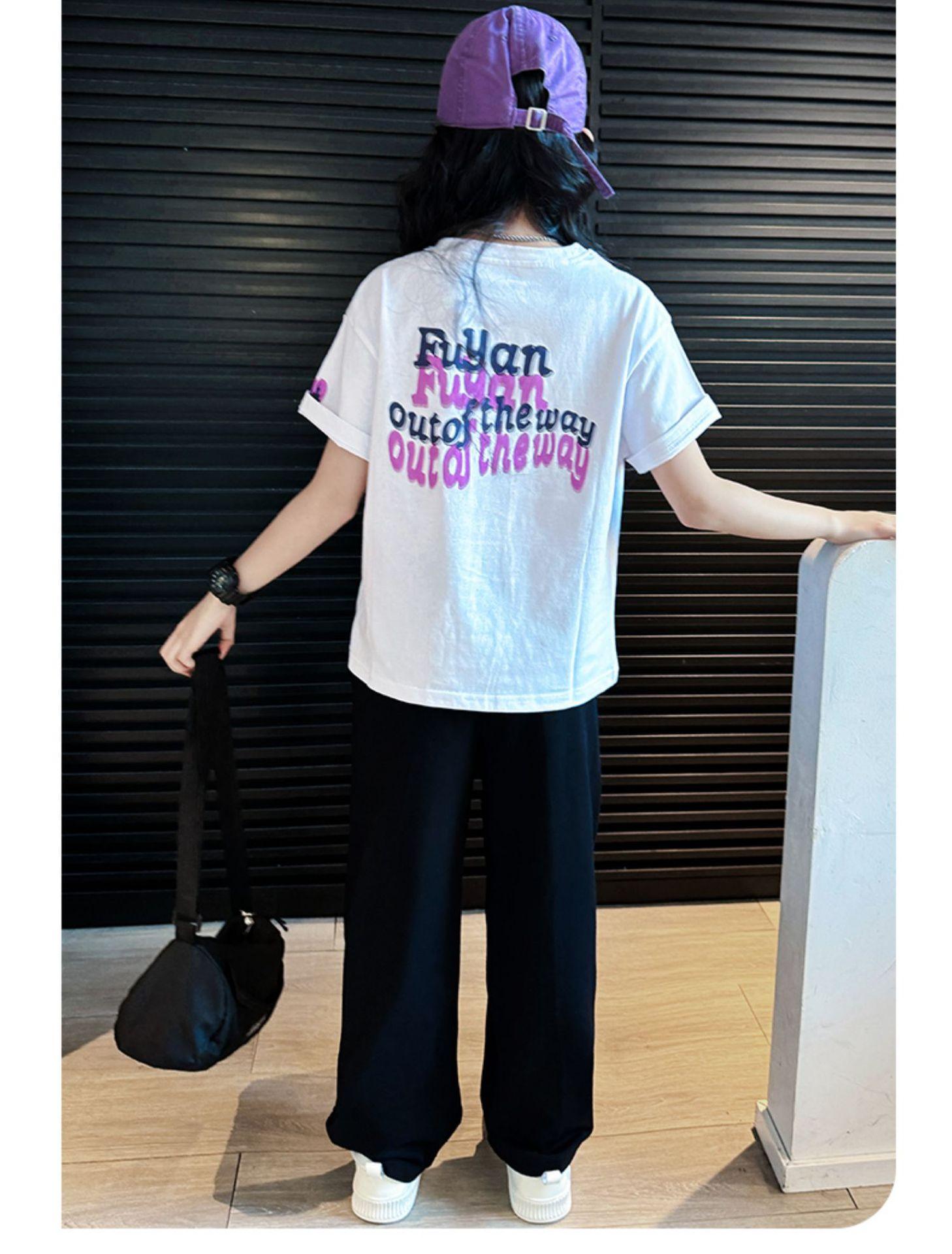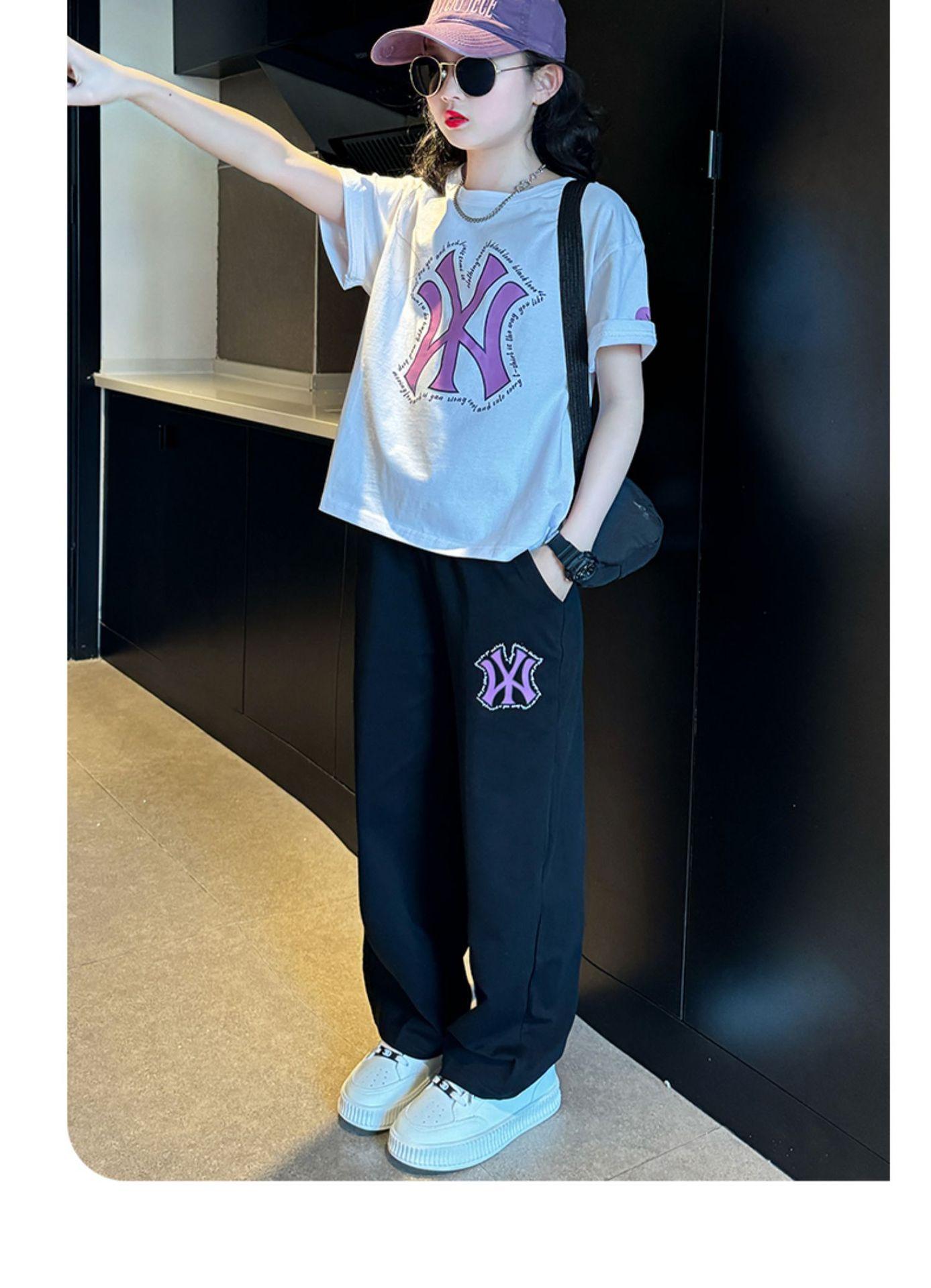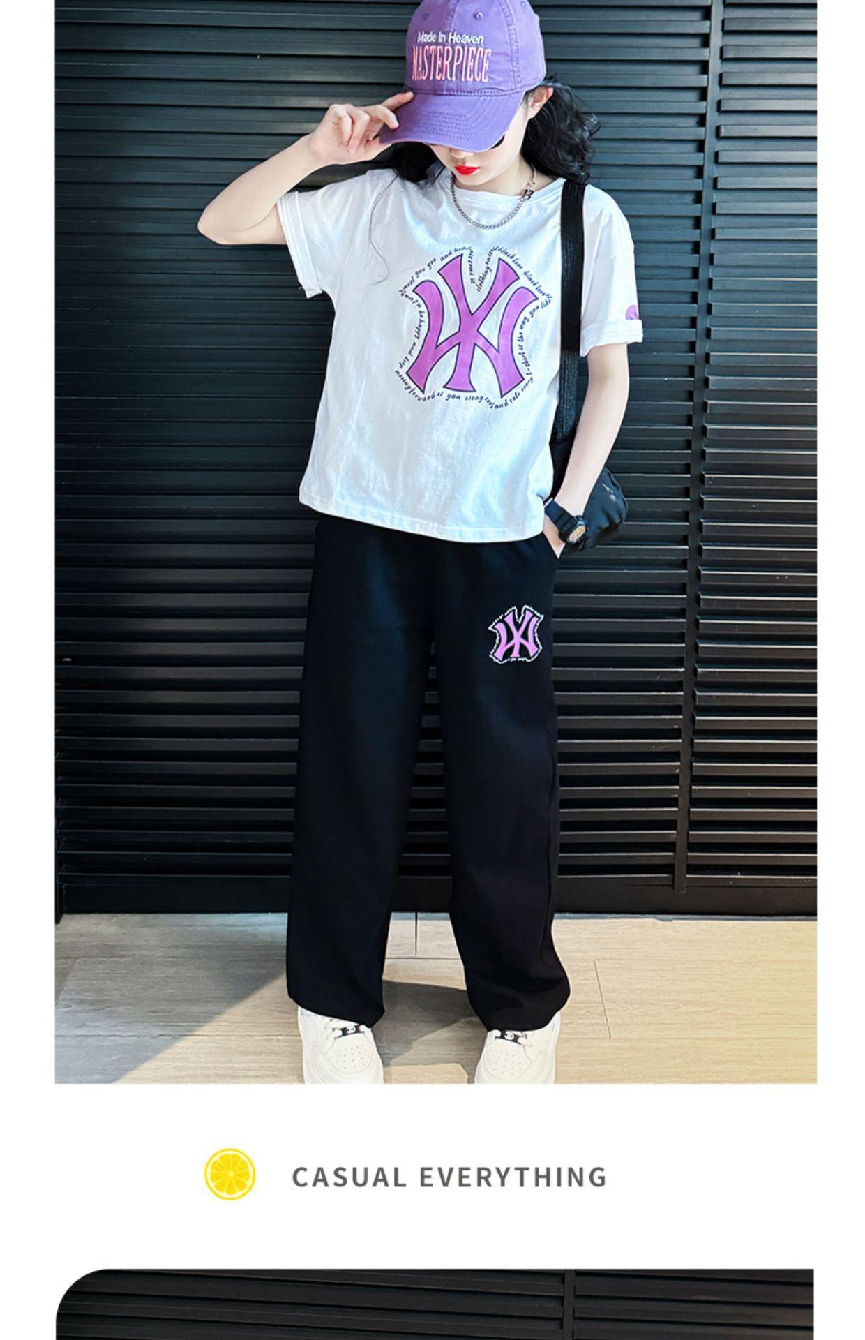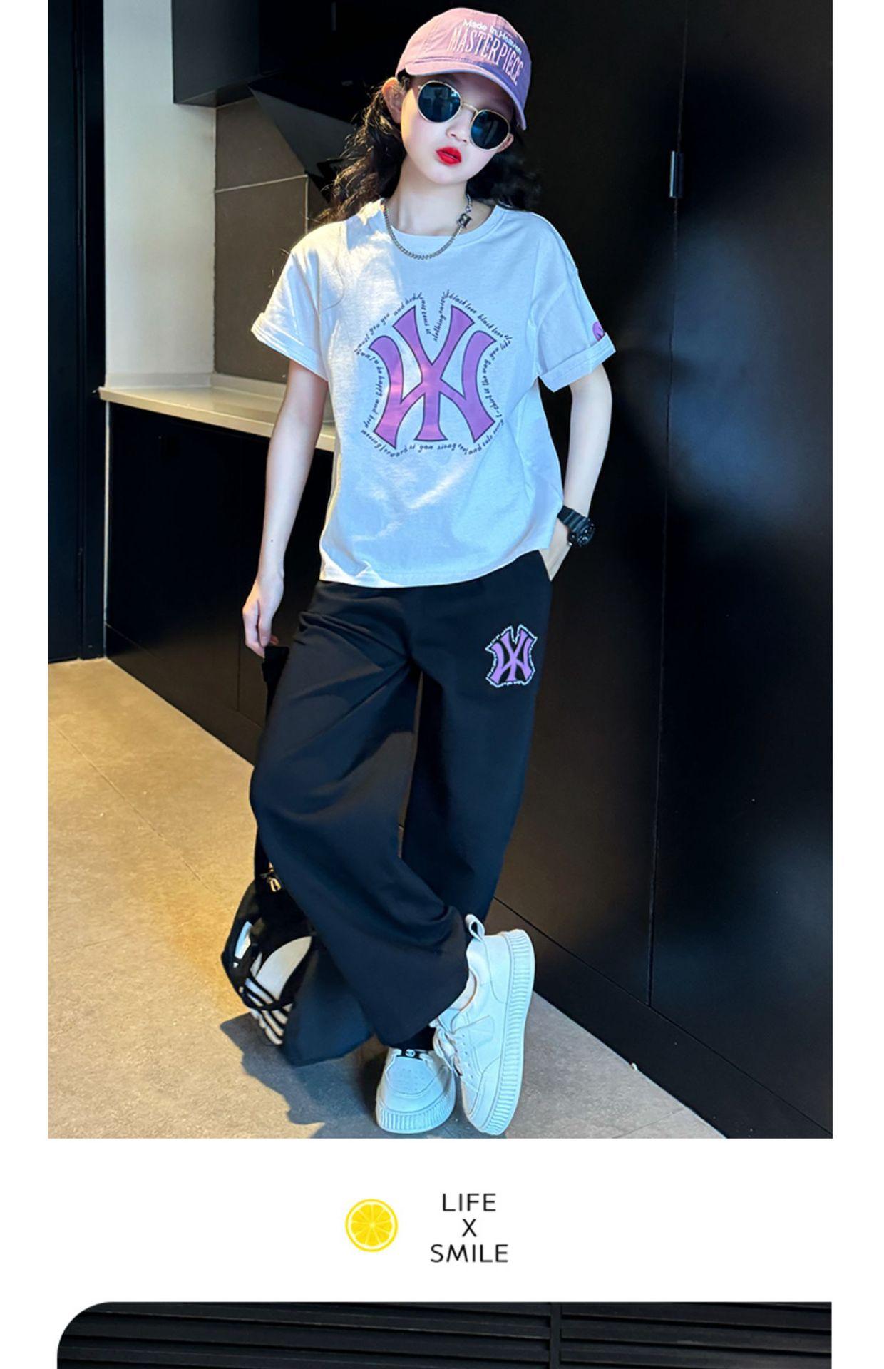 Compra Conjunto de Moda de Estilo Coreano de Moda para Niñas, Verano Nuevo Top Elegante de Manga Corta con Letras y Pantalón Largo Casual Conjunto de Dos Piezas para Niños Mayores al por mayor en Joom.pro