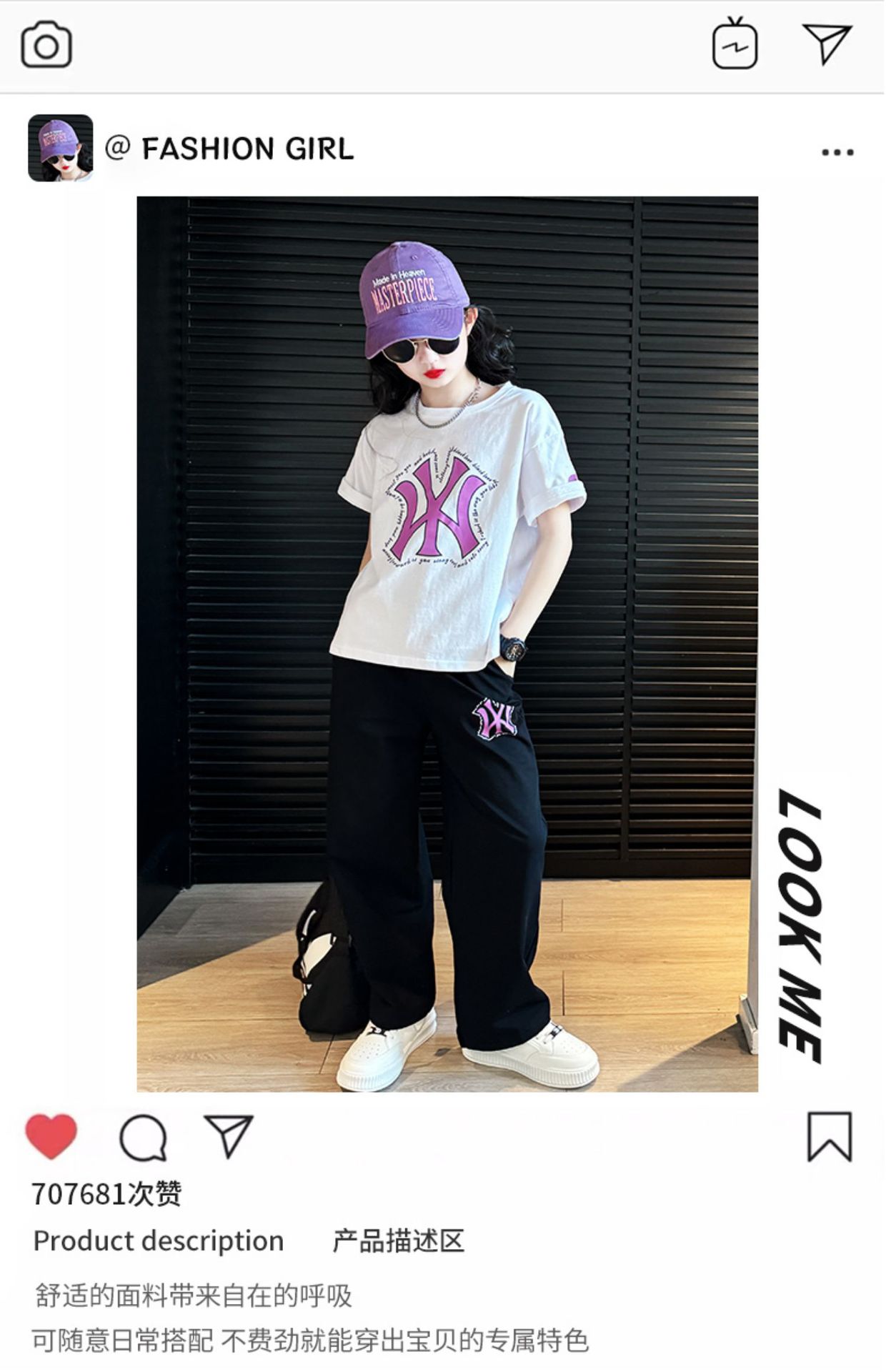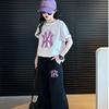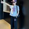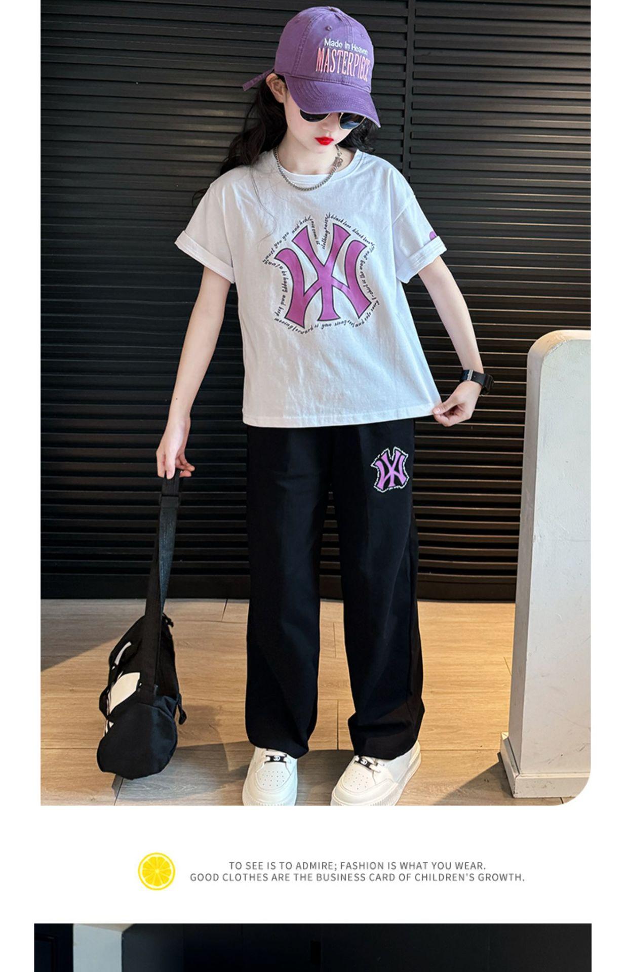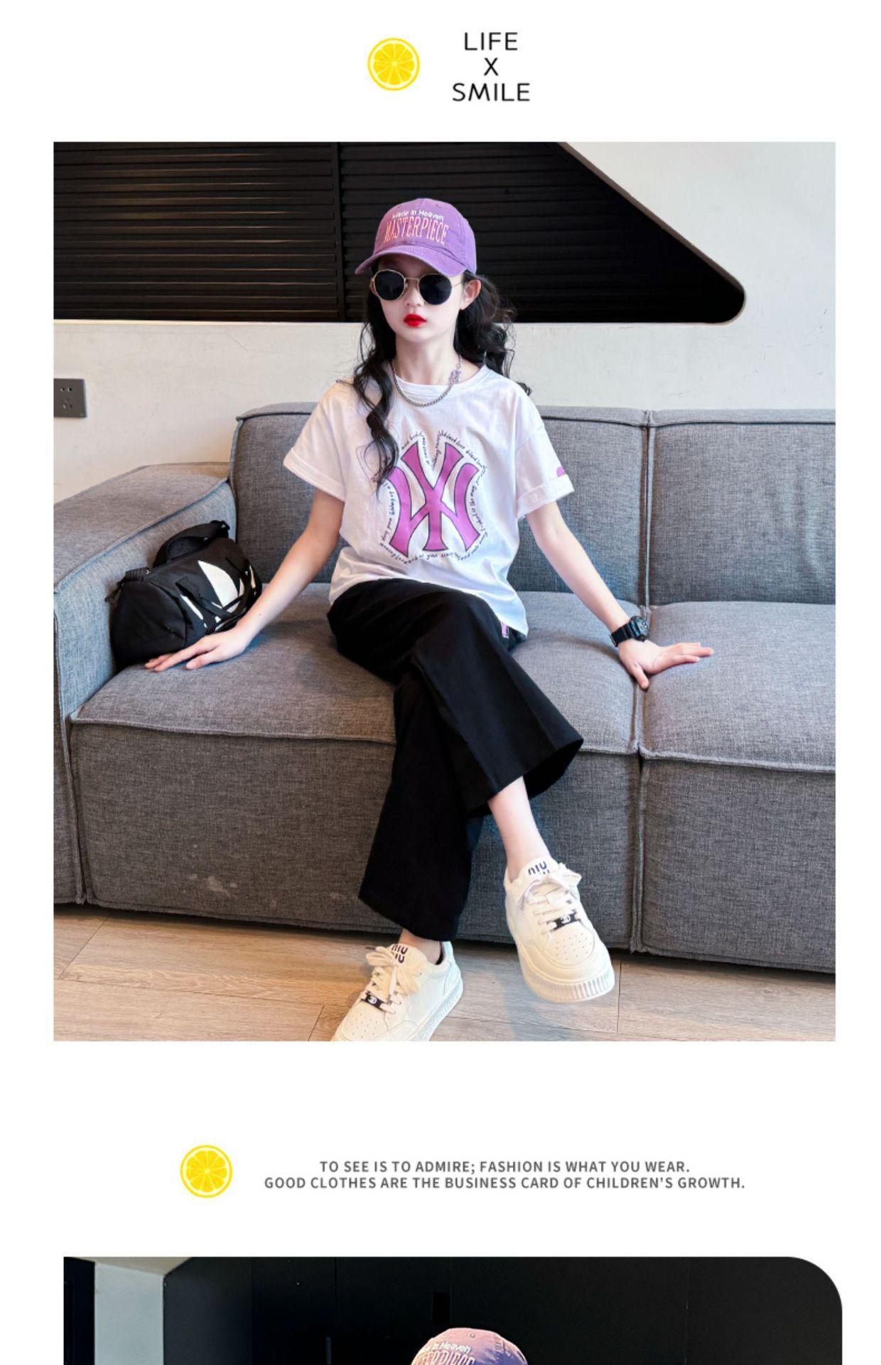 Compra Conjunto de Moda de Estilo Coreano de Moda para Niñas, Verano Nuevo Top Elegante de Manga Corta con Letras y Pantalón Largo Casual Conjunto de Dos Piezas para Niños Mayores al por mayor en Joom.pro