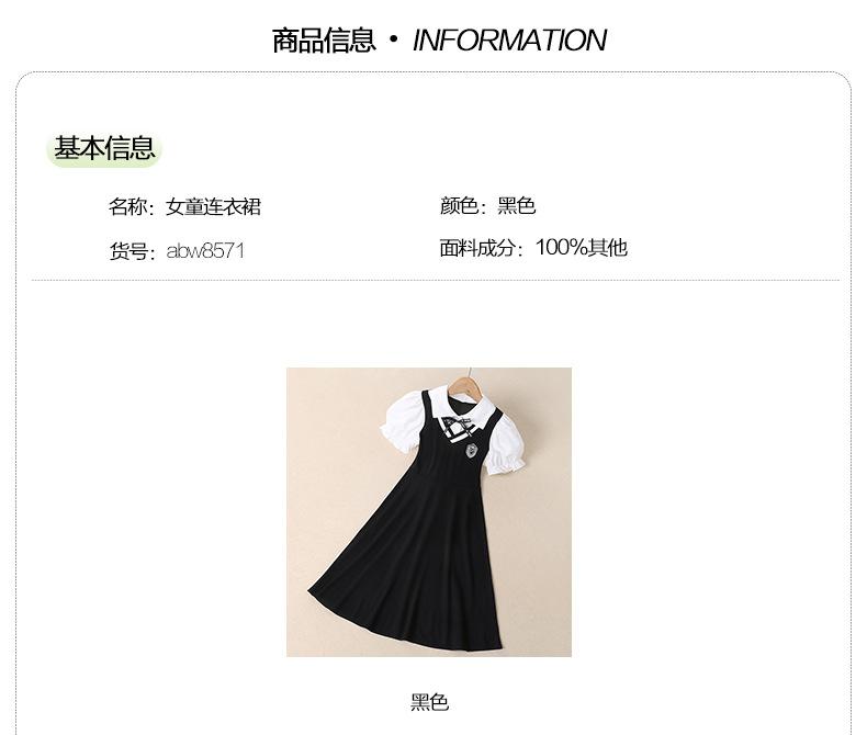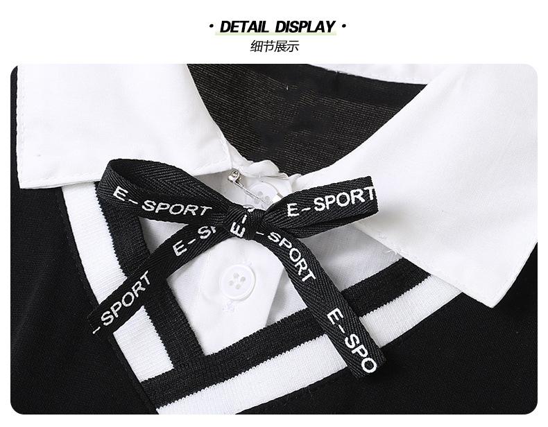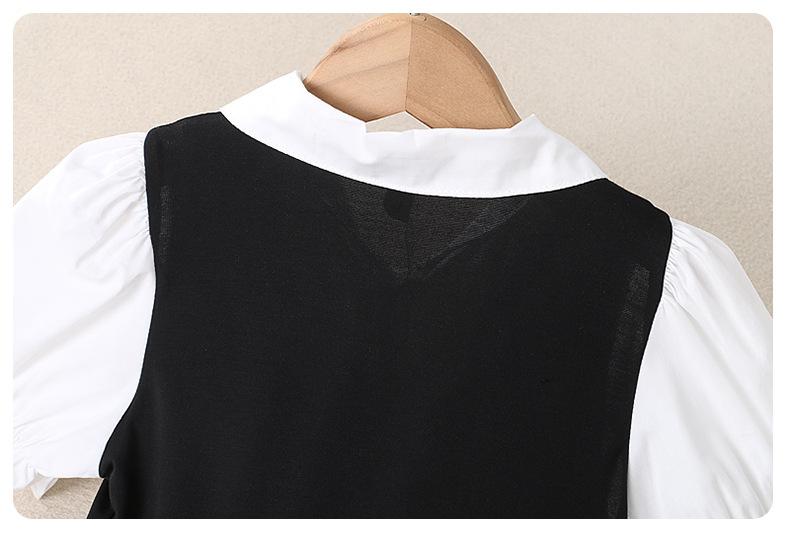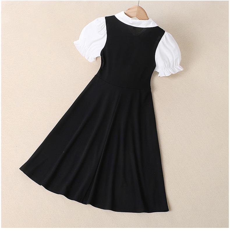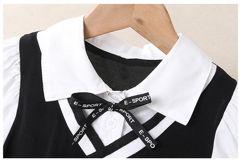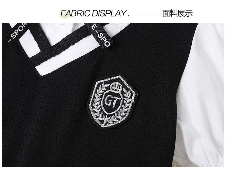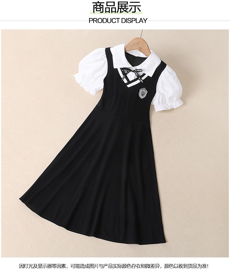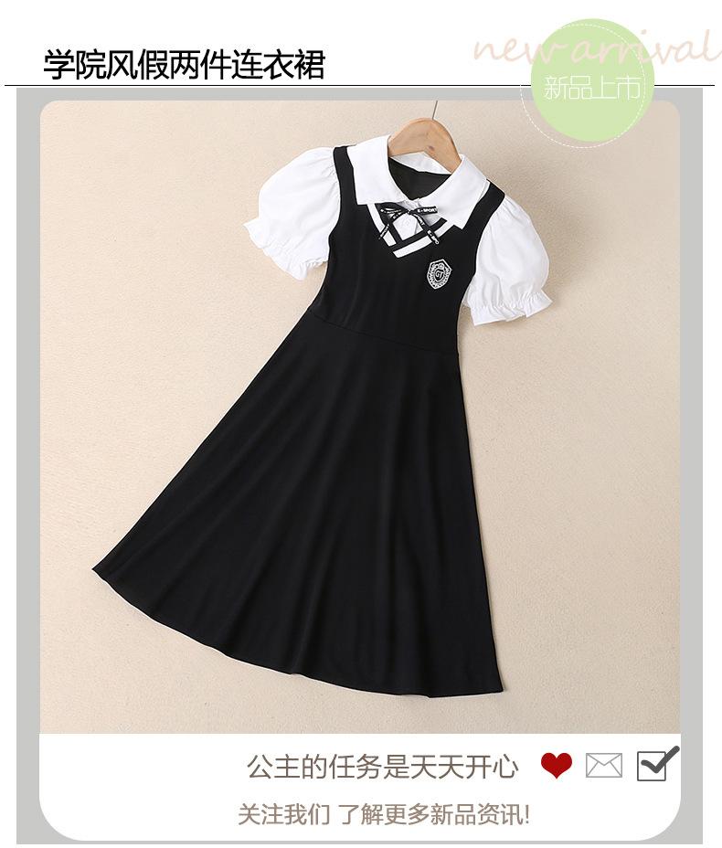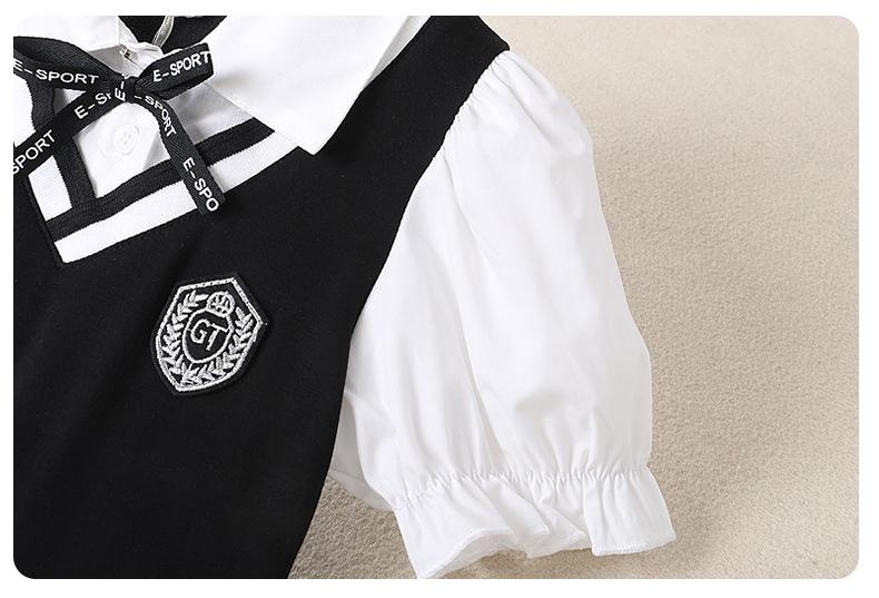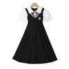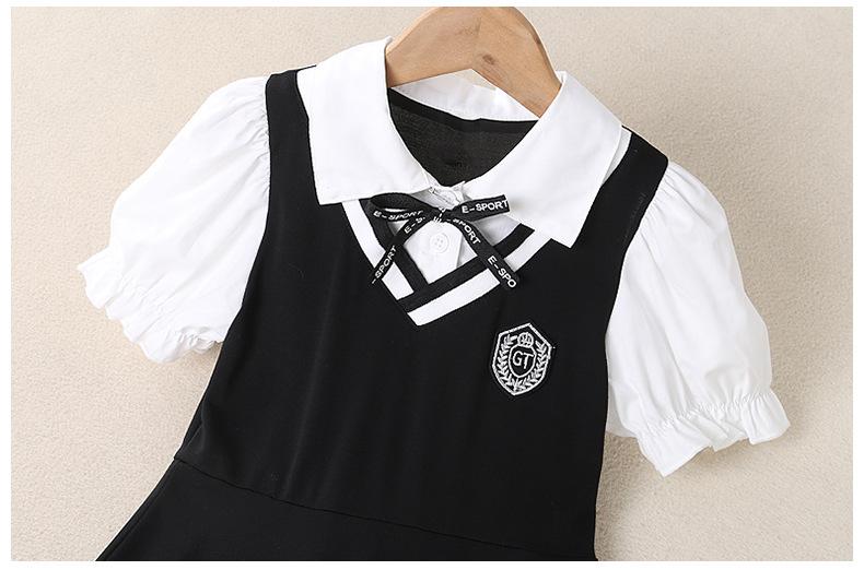 Vestido de Moda para Niñas Estilo Universitario de Dos Piezas Falsas para Niños Mayores, Nuevo Vestido Coreano de Moda de Verano de Manga Corta