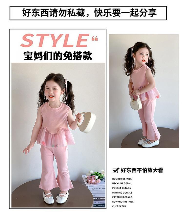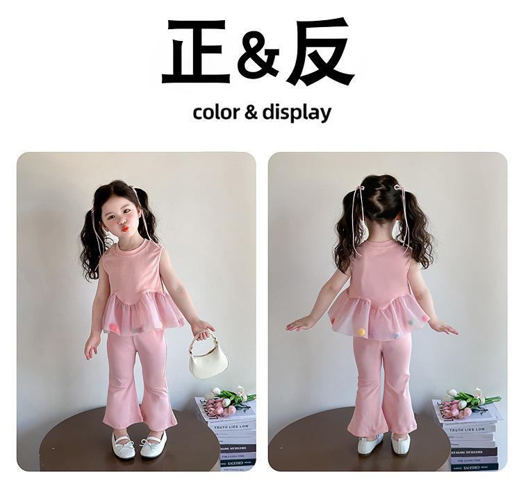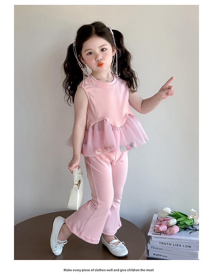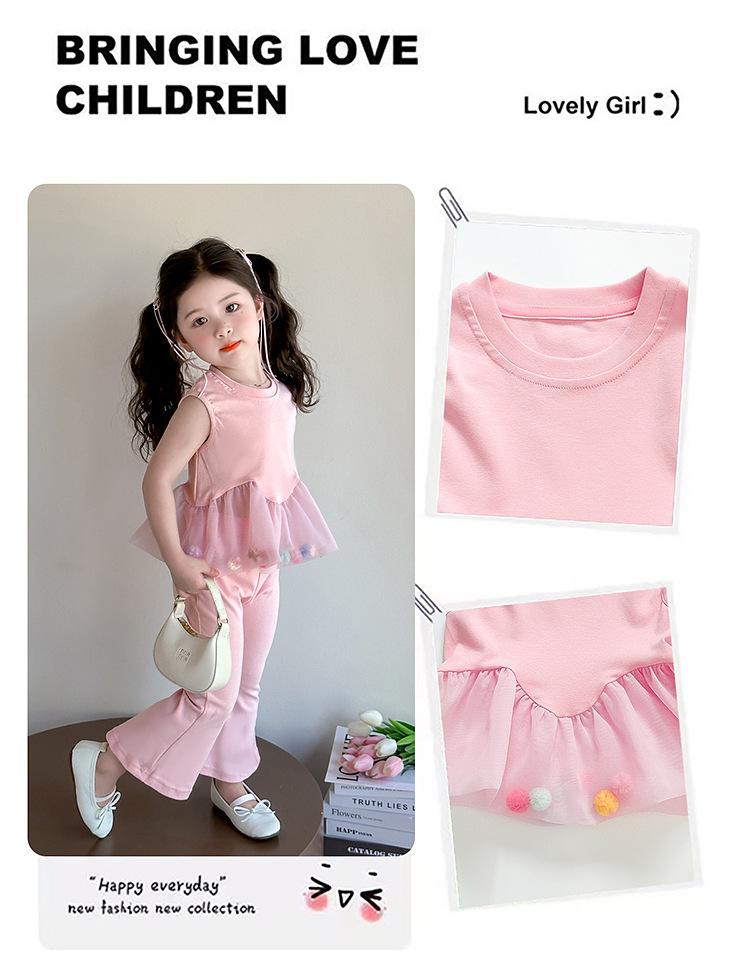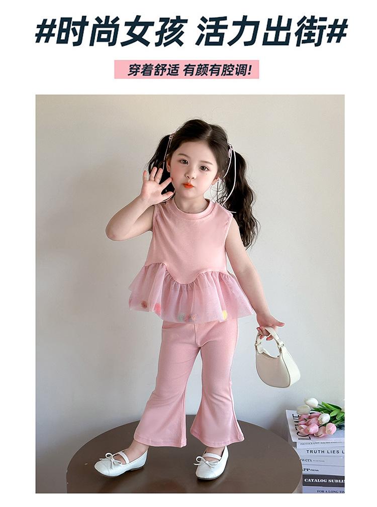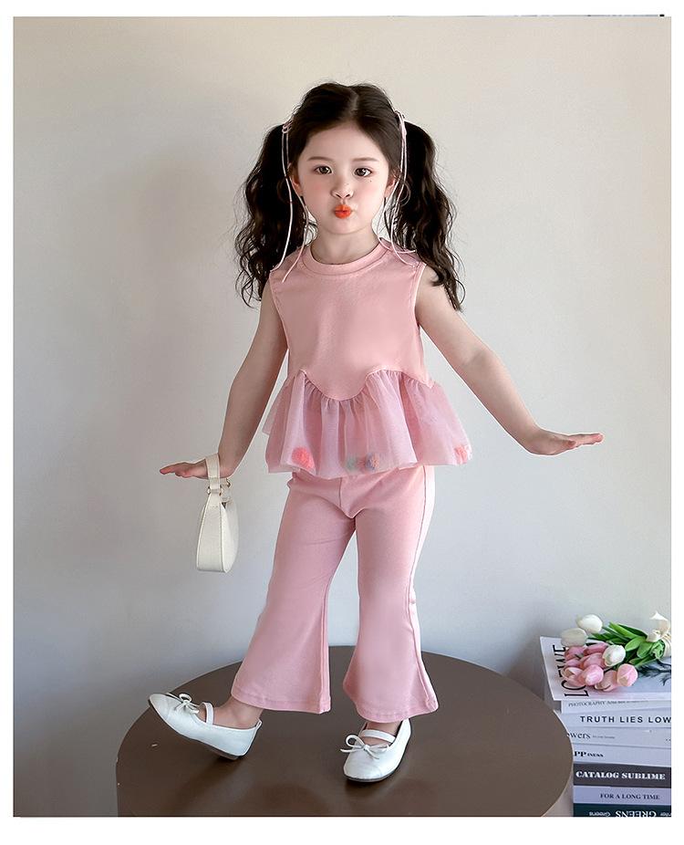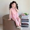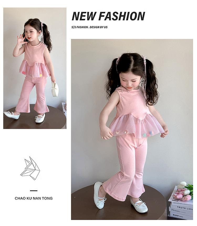 Compra Traje de chaleco rosa y pantalones acampanados para niña 2025 Verano Nueva Moda Niña Pequeña Conjunto Elegante de Dos Piezas para Niños al por mayor en Joom.pro