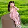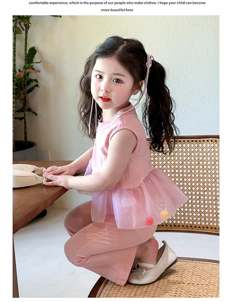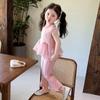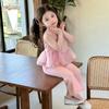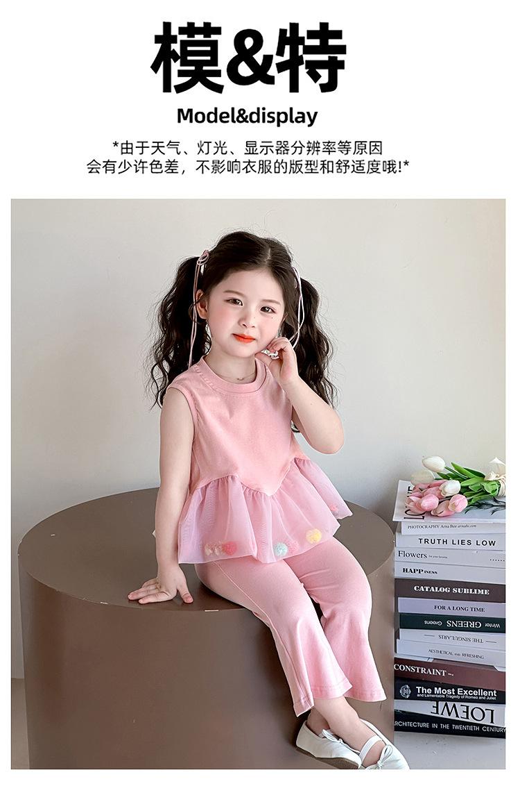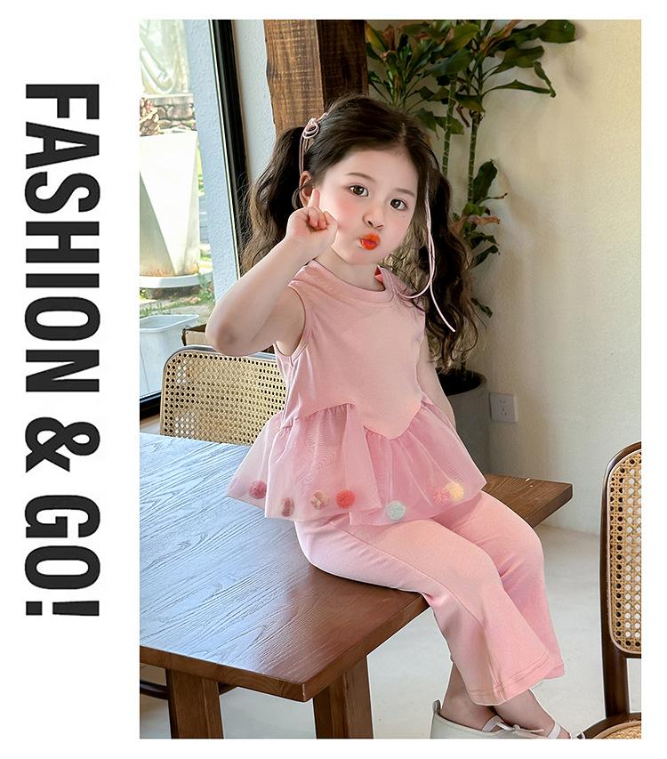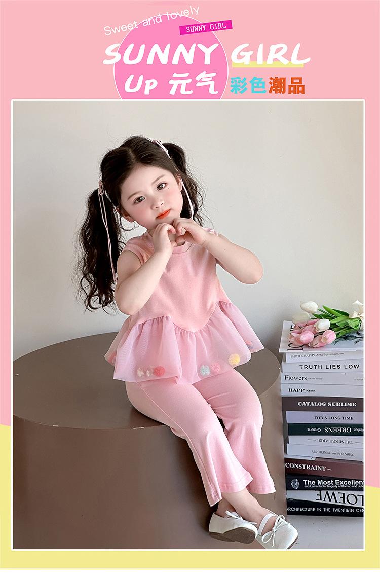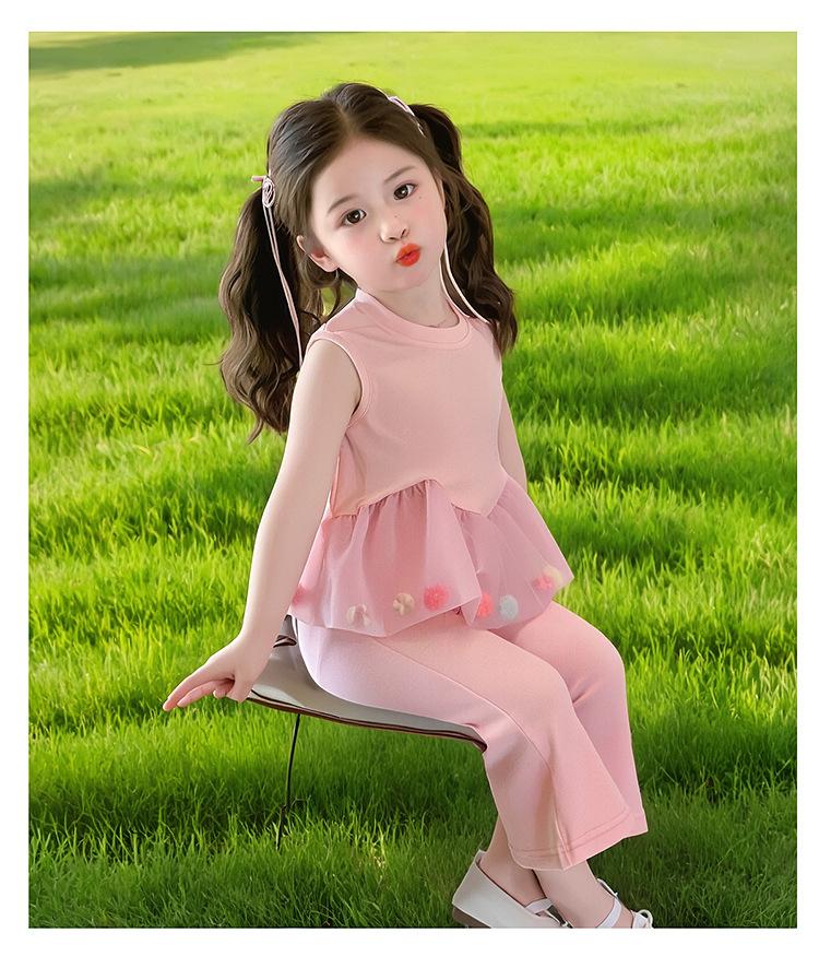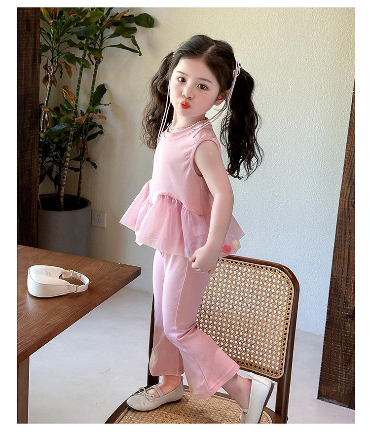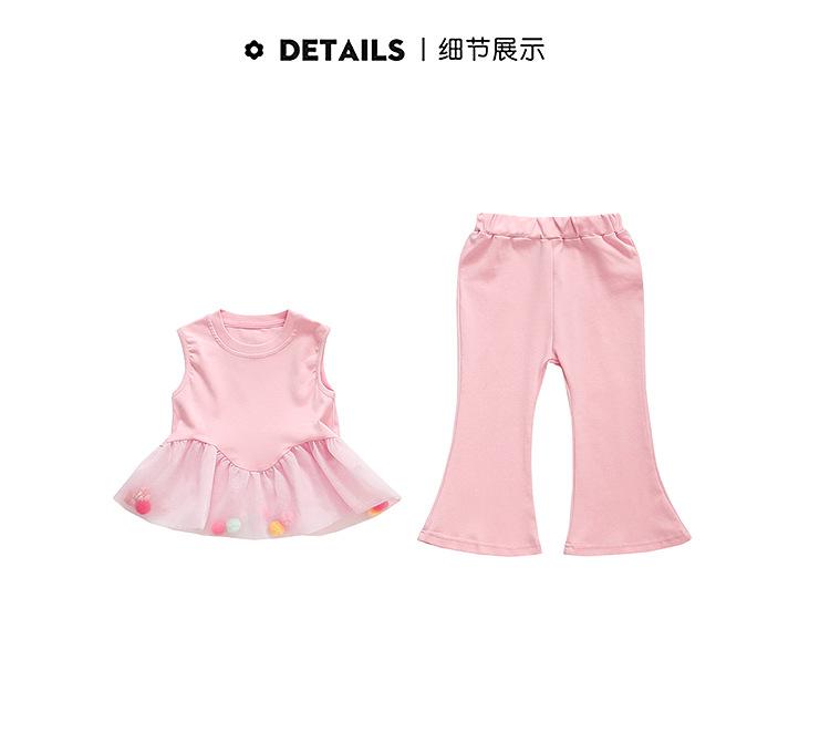 Compra Traje de chaleco rosa y pantalones acampanados para niña 2025 Verano Nueva Moda Niña Pequeña Conjunto Elegante de Dos Piezas para Niños al por mayor en Joom.pro