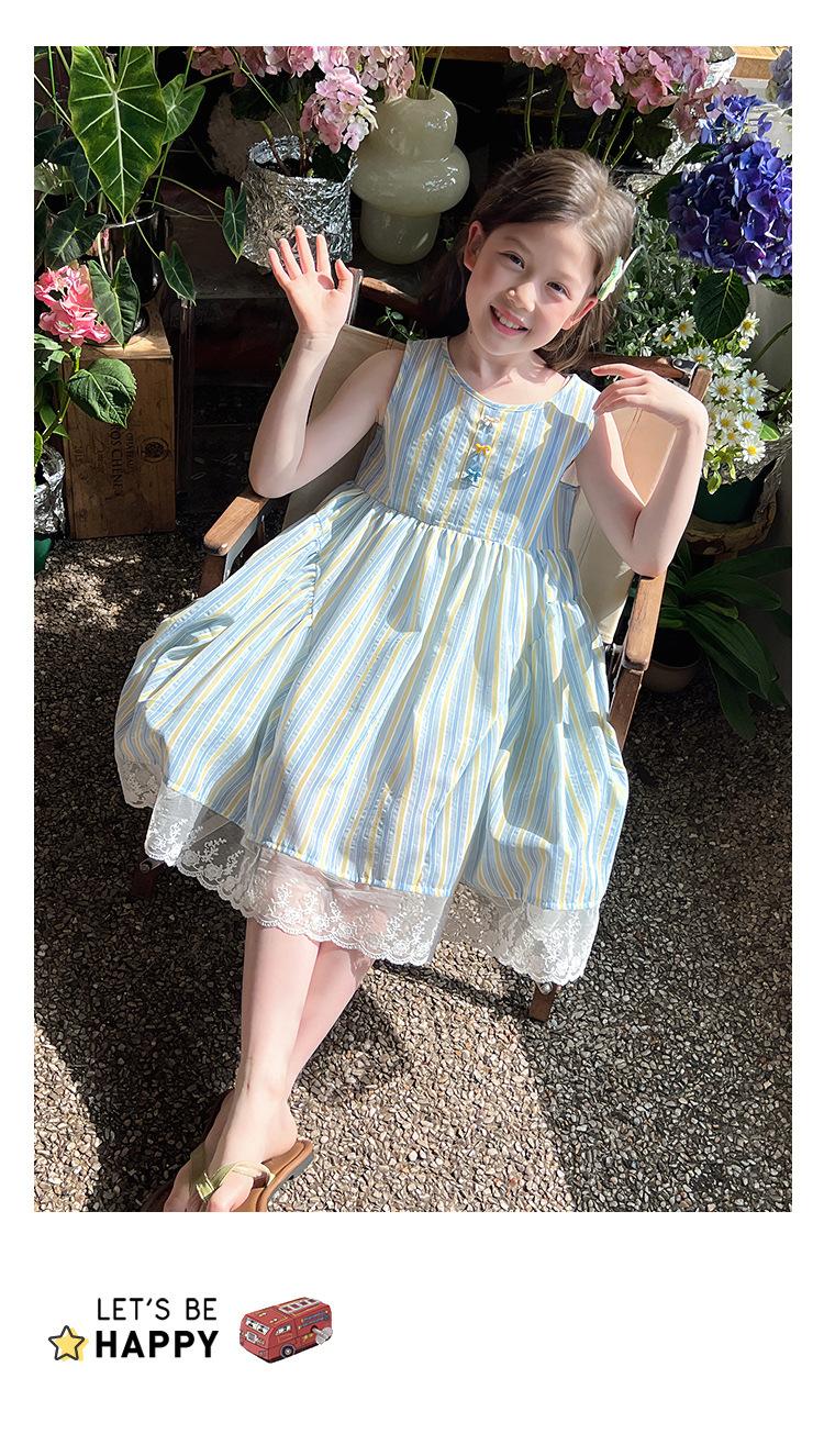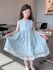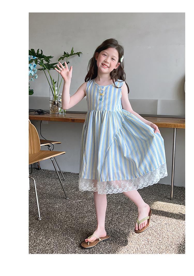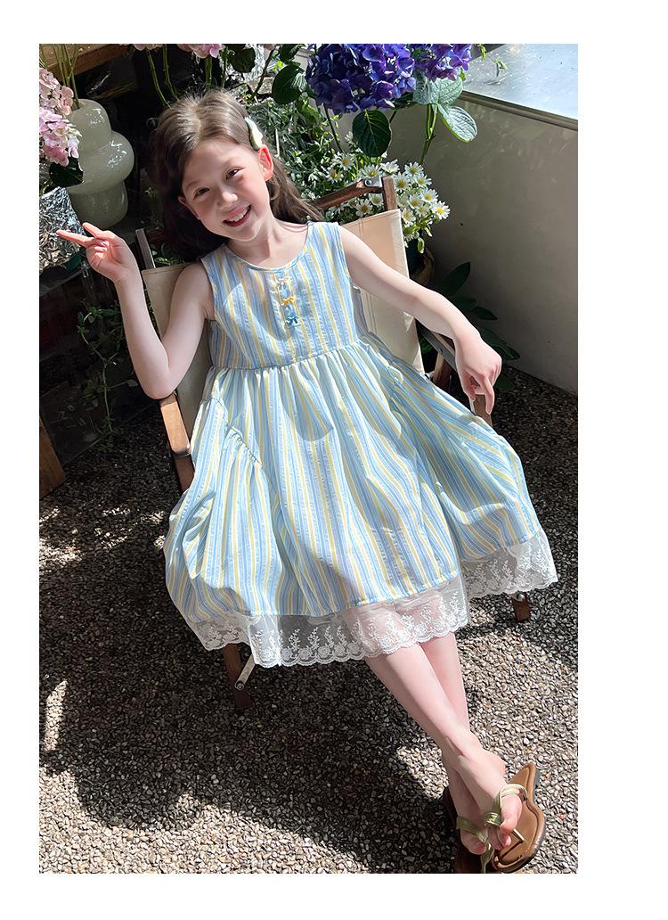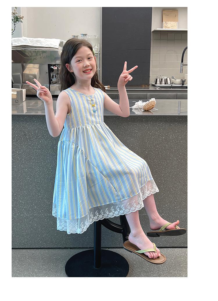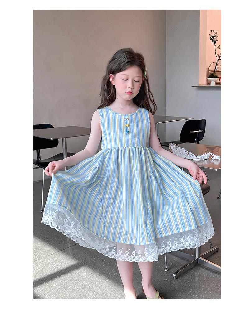 Vestido de Tirantes Rayado de Encaje para Niñas Vestido de Princesa Elegante sin Mangas para Niños Vestido para Niños Grandes 2025 Verano Nuevo Estilo