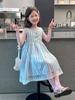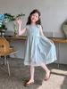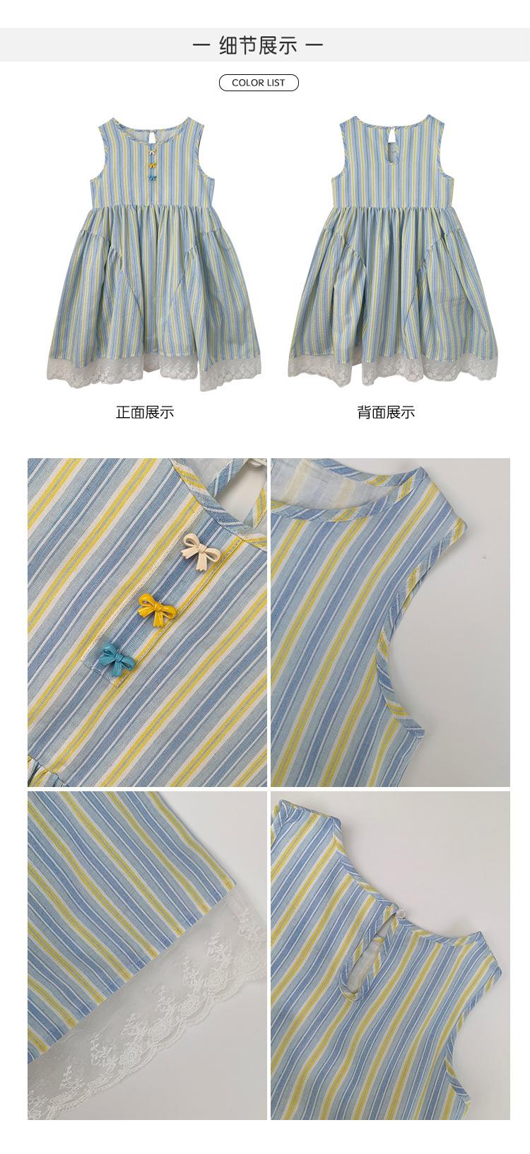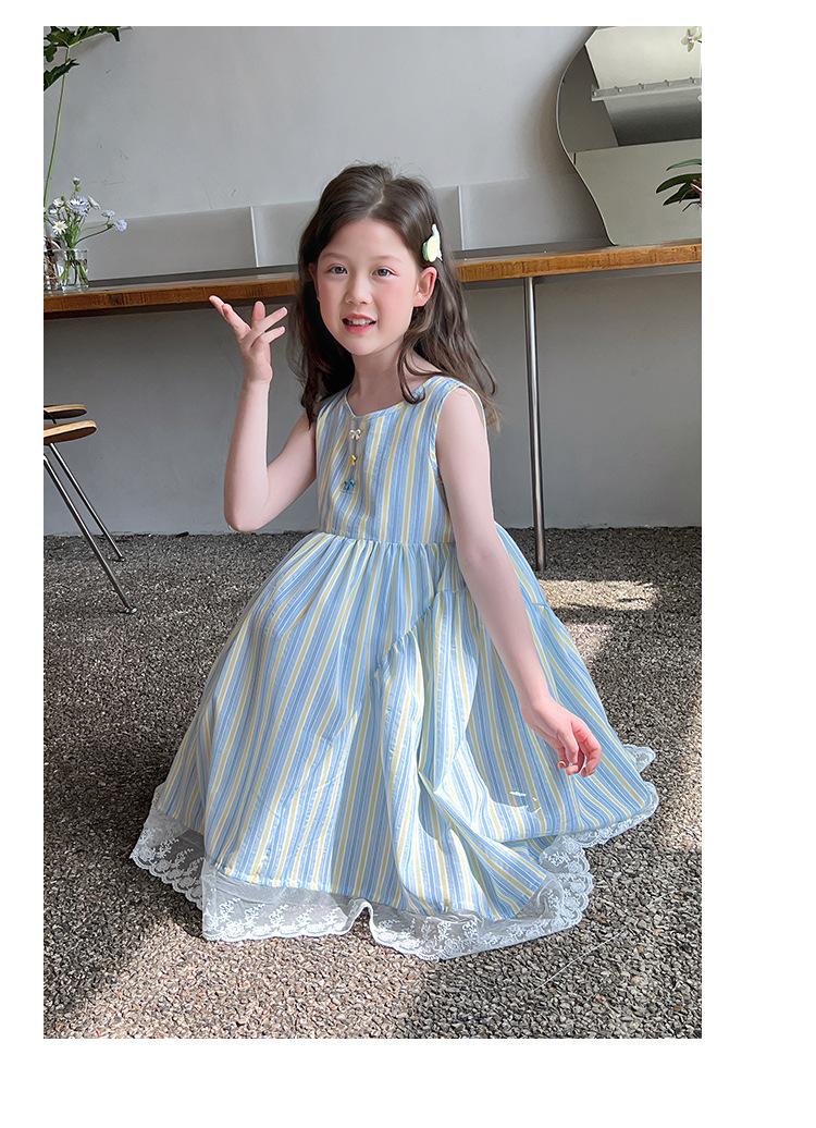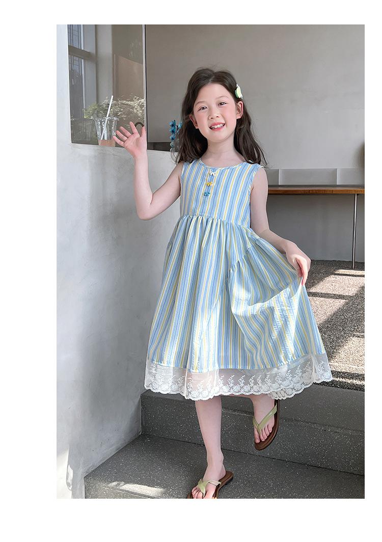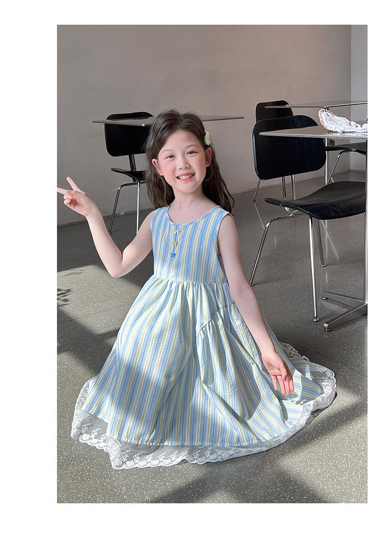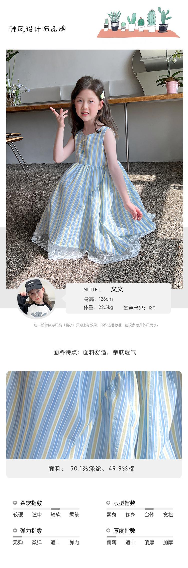 Vestido de Tirantes Rayado de Encaje para Niñas Vestido de Princesa Elegante sin Mangas para Niños Vestido para Niños Grandes 2025 Verano Nuevo Estilo