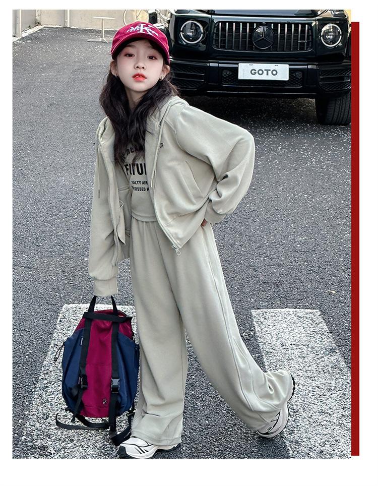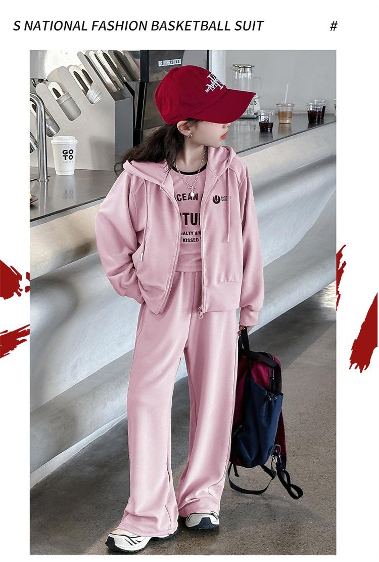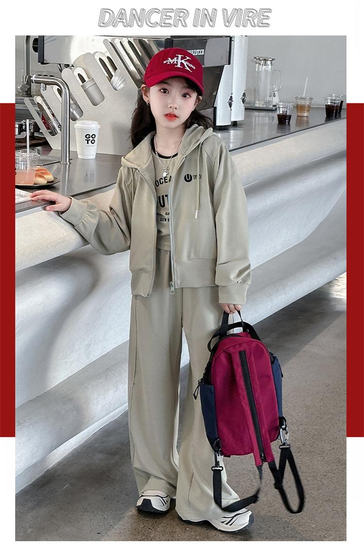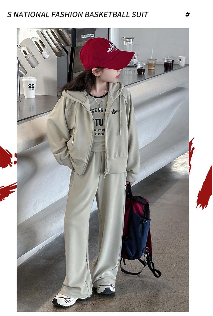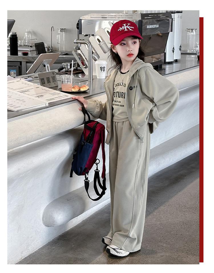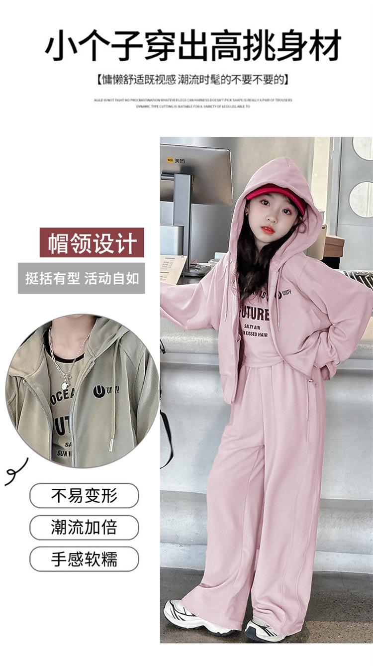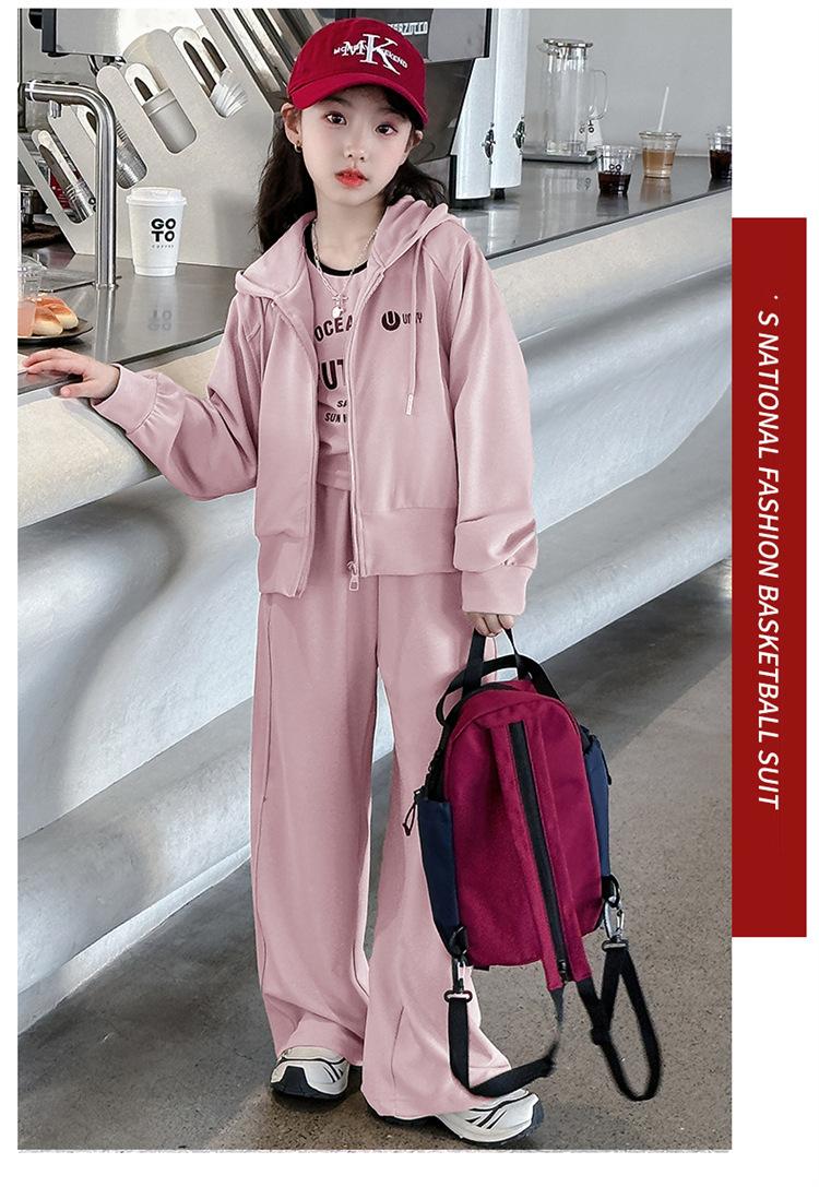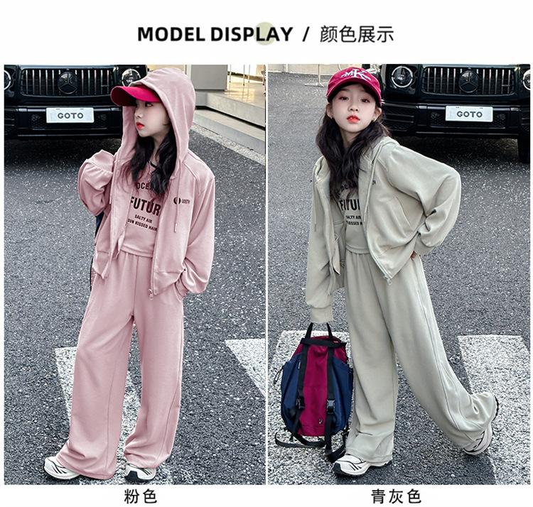 Traje de suéter para niña primavera y otoño 2024 nuevo estilo extranjero para niños comercio exterior deportivo pantalones casuales frito calle conjunto de tres piezas para niños grandes