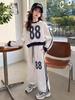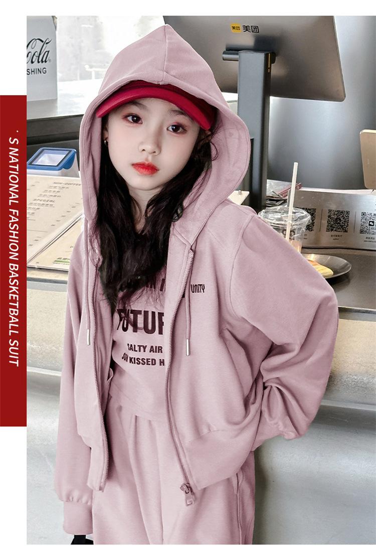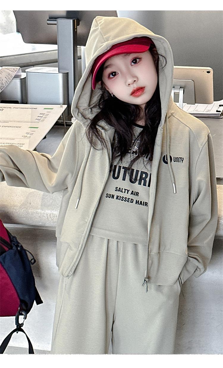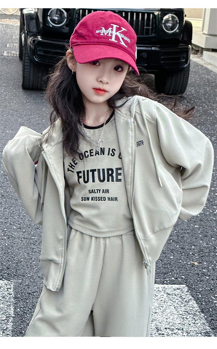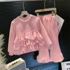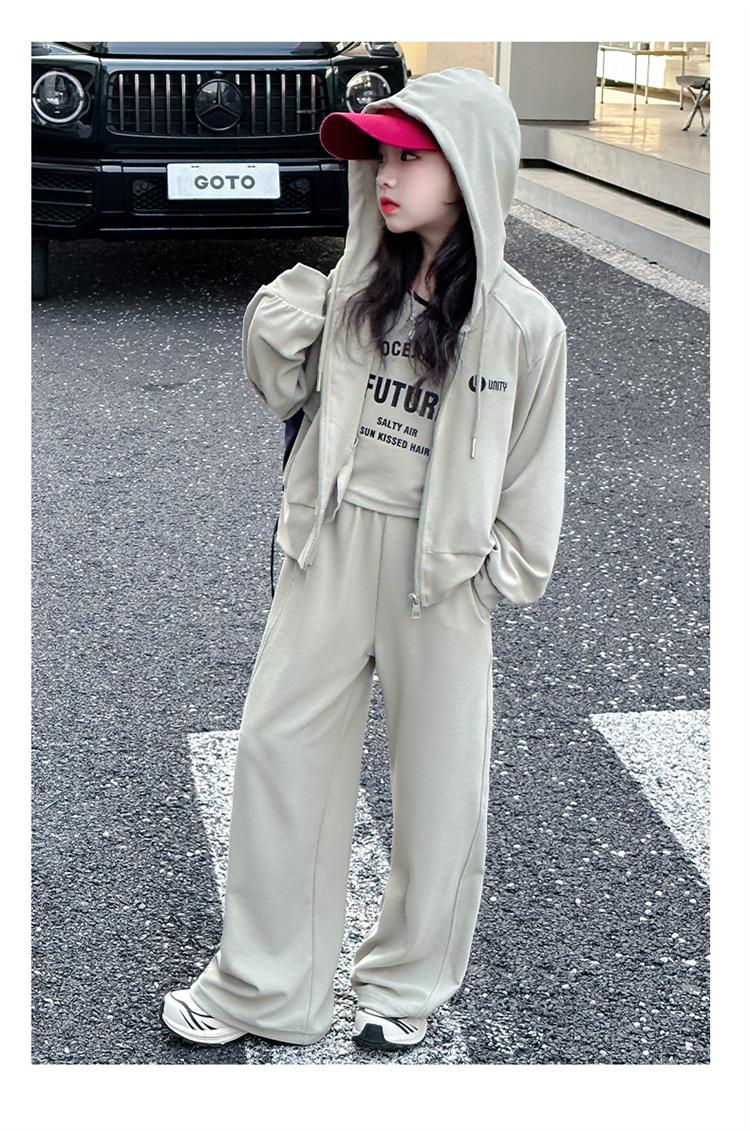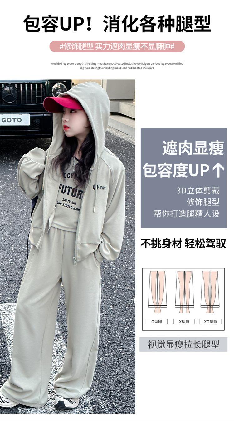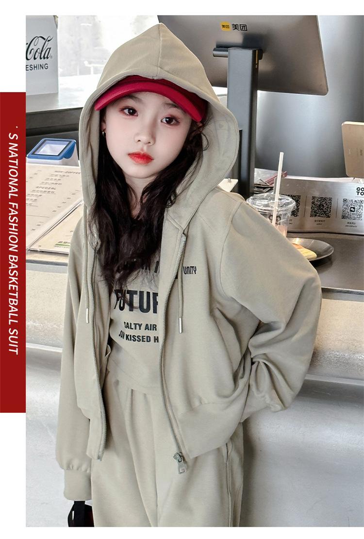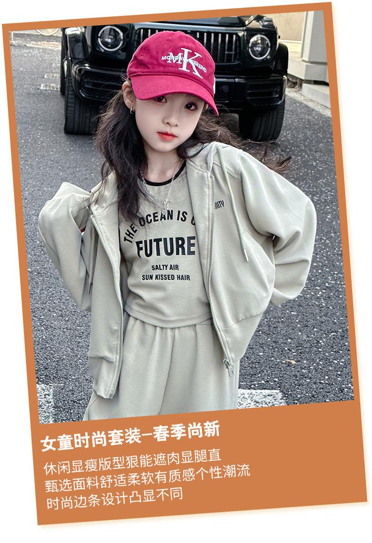 Traje de suéter para niña primavera y otoño 2024 nuevo estilo extranjero para niños comercio exterior deportivo pantalones casuales frito calle conjunto de tres piezas para niños grandes