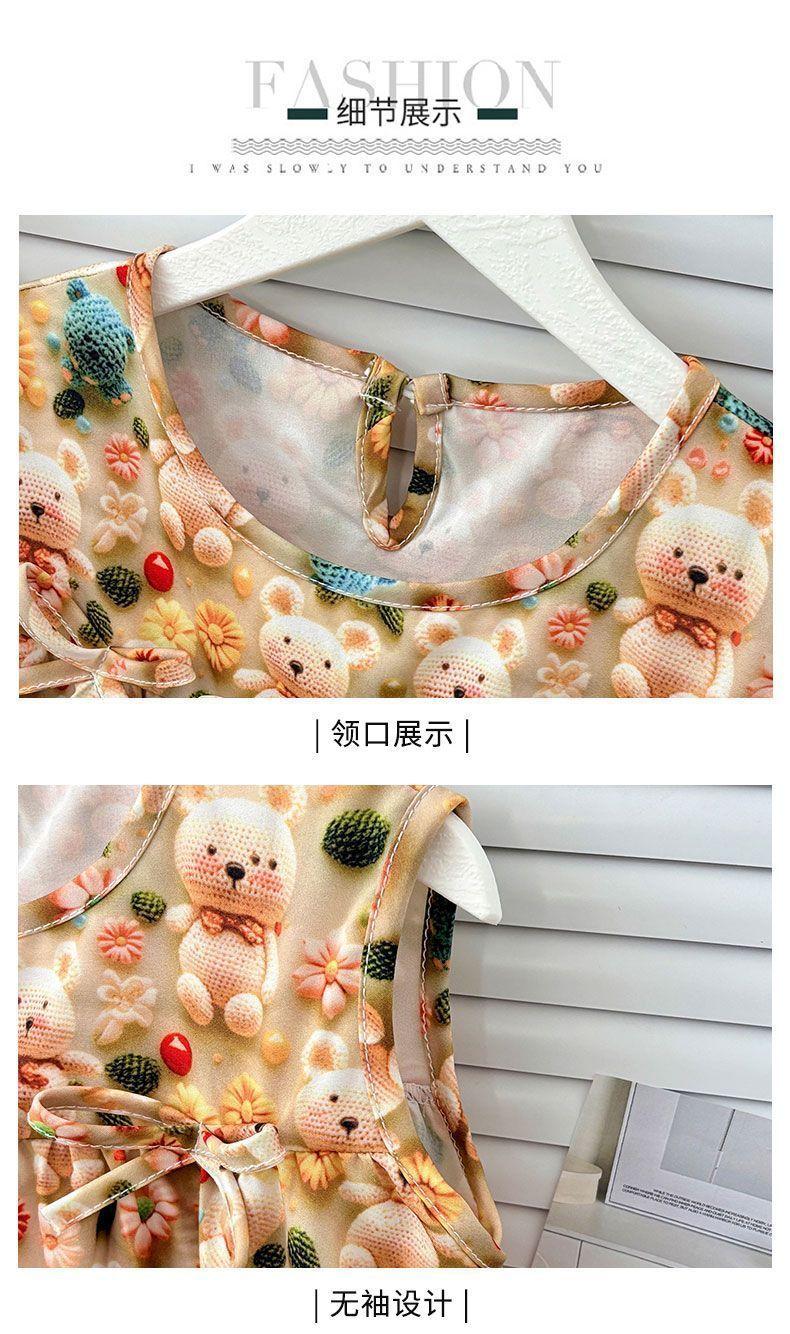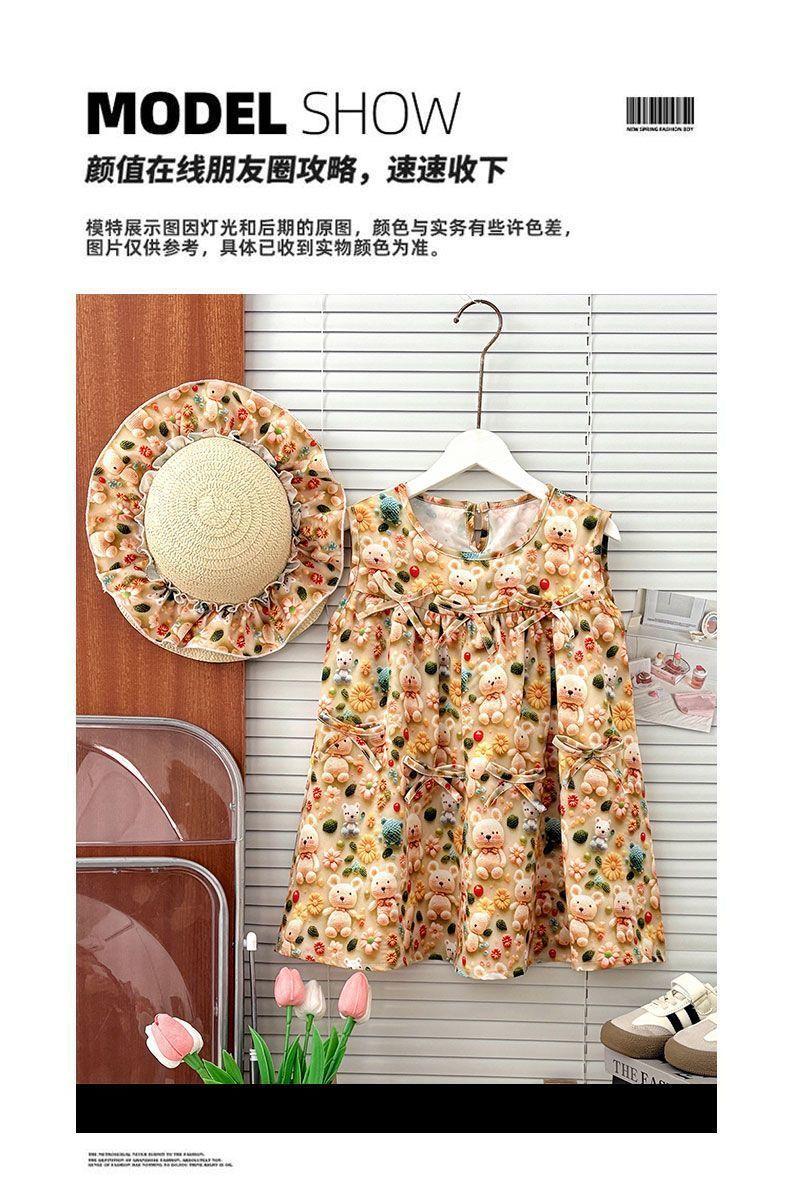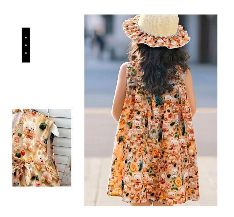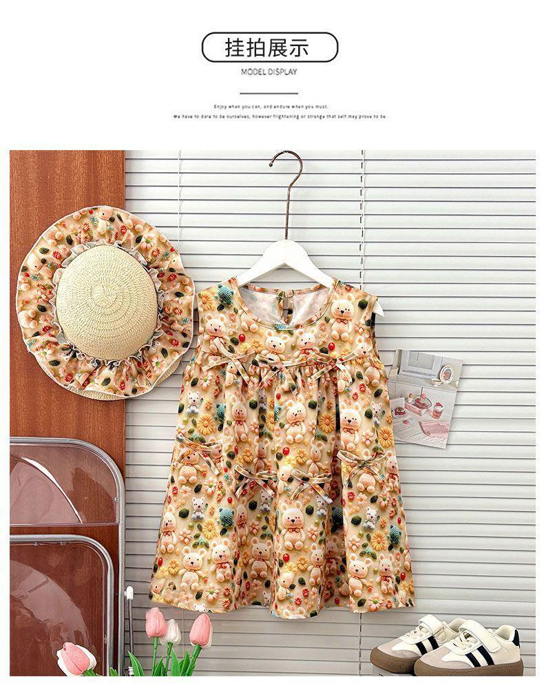 Vestido para niñas 2025 Verano Nuevo Estilo Coreano Estilo Occidental Chaleco Vestido de Princesa Falda Linda con Estampado de Dibujos Animados Ropa para Niños