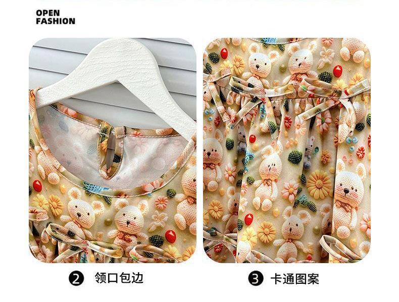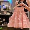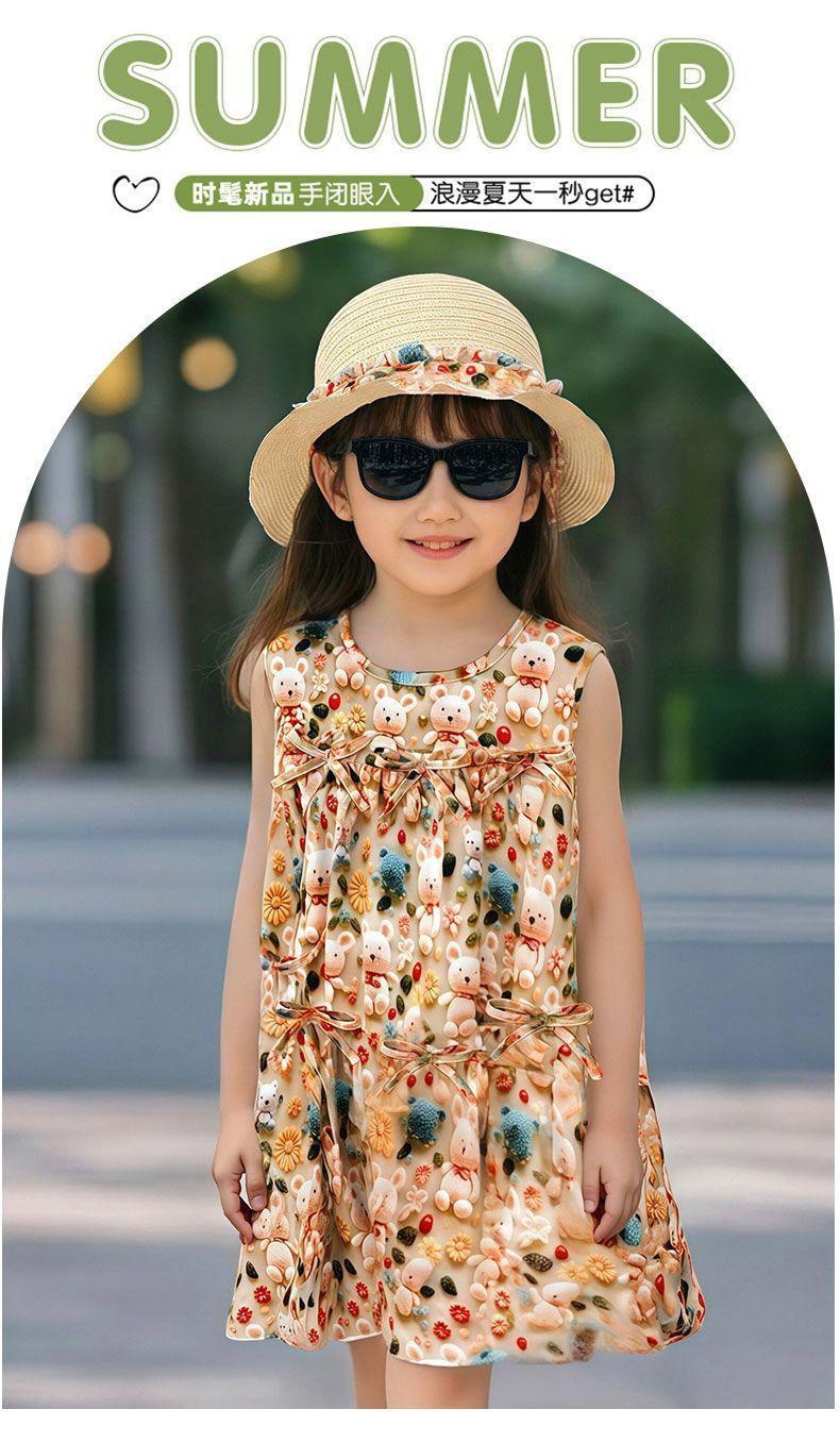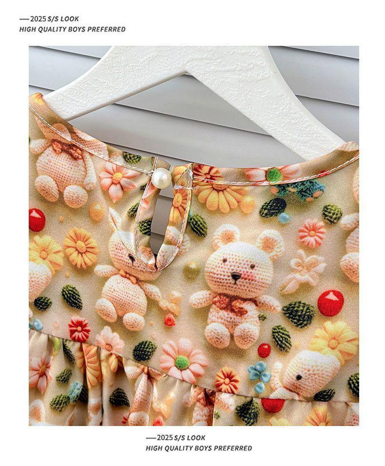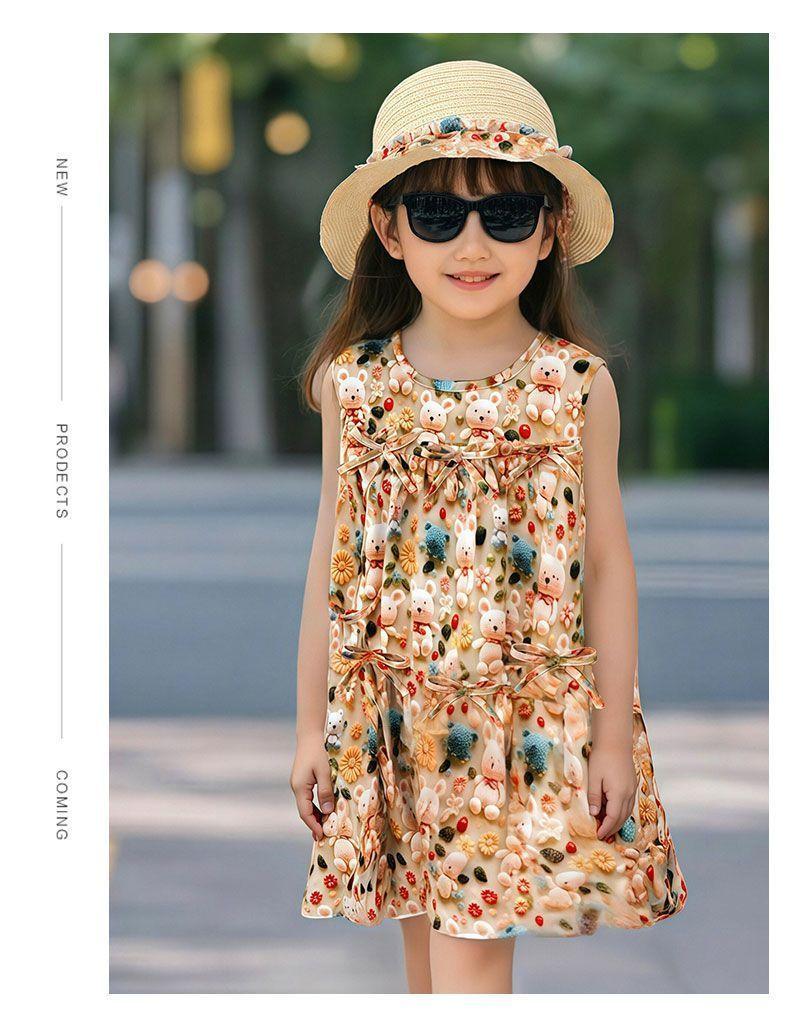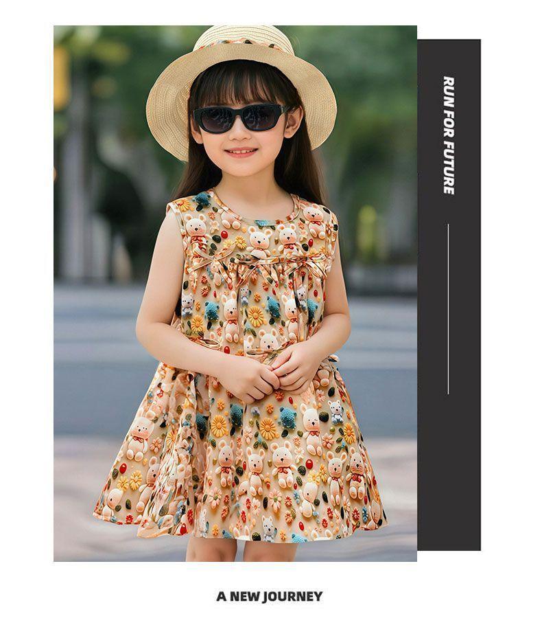 Vestido para niñas 2025 Verano Nuevo Estilo Coreano Estilo Occidental Chaleco Vestido de Princesa Falda Linda con Estampado de Dibujos Animados Ropa para Niños
