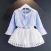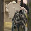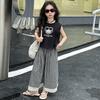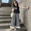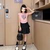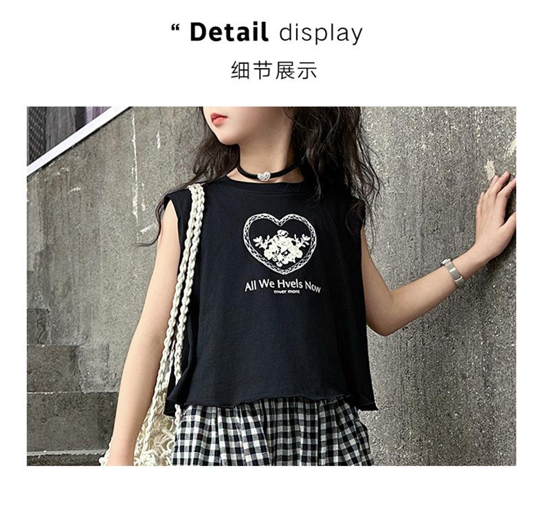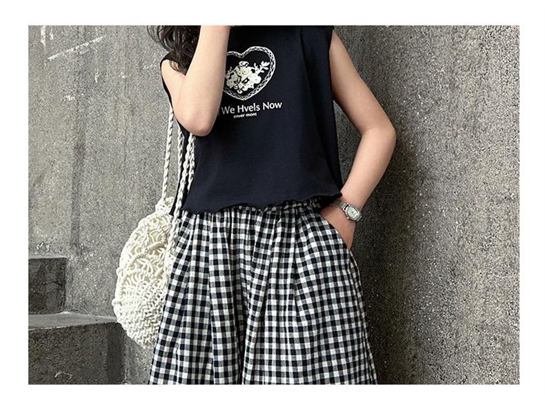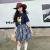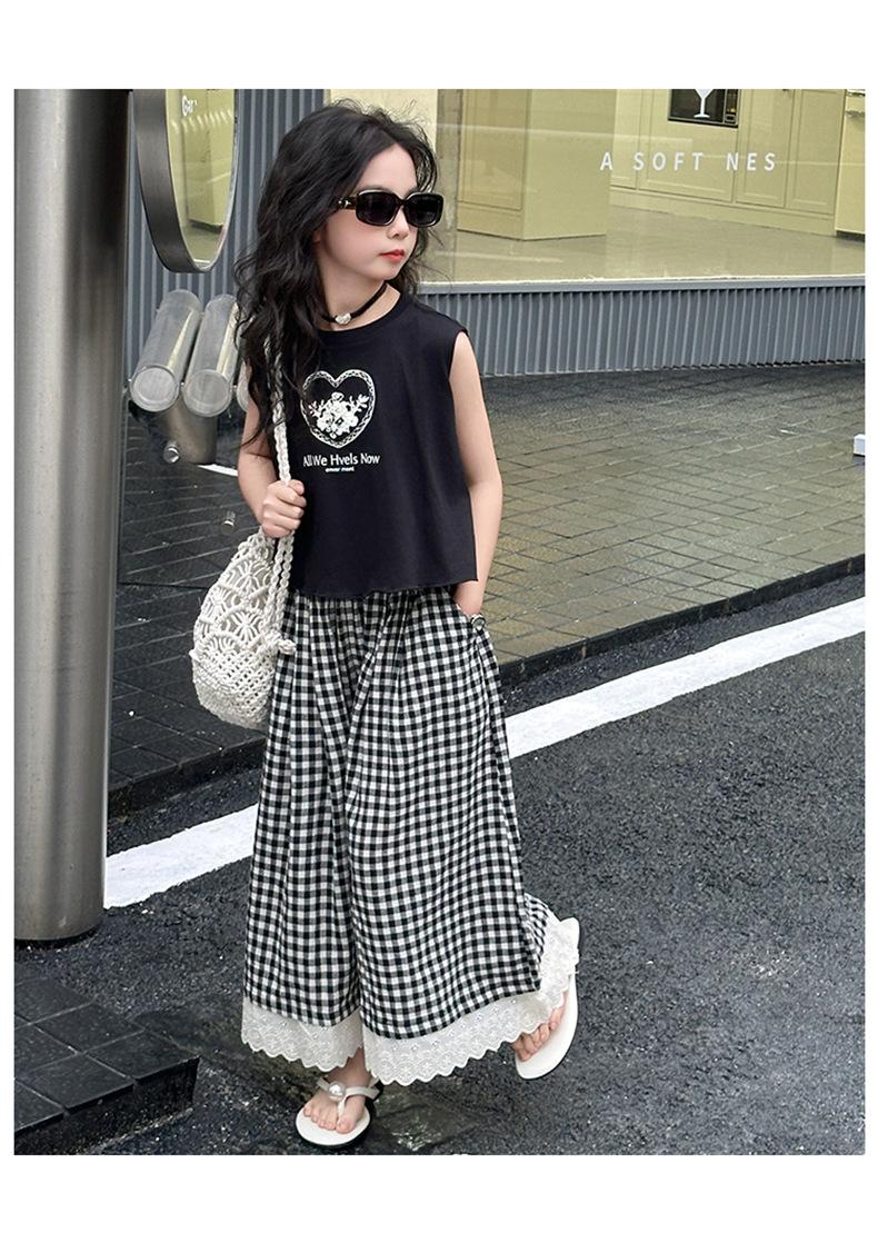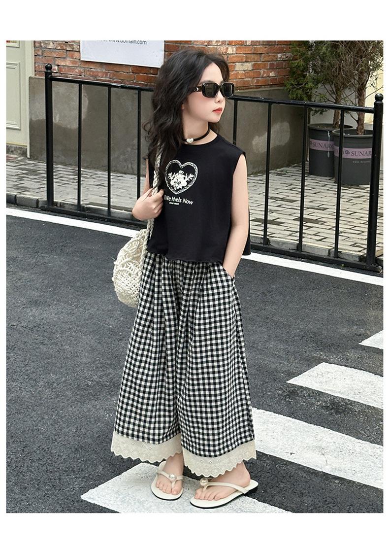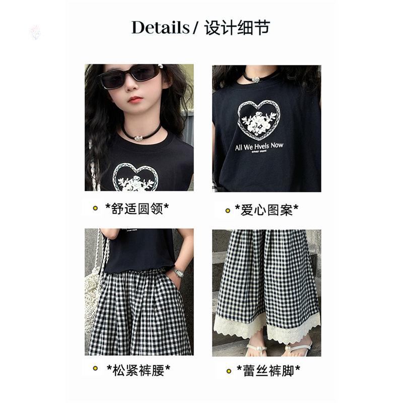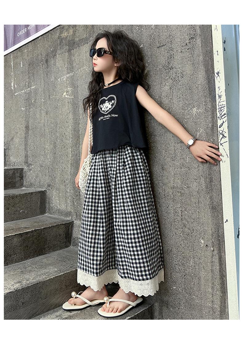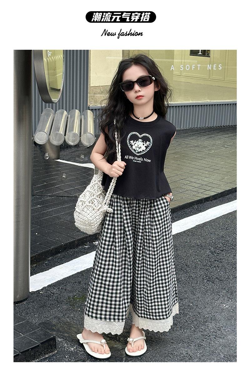 Traje de falda a cuadros de encaje para niña, camiseta casual sin mangas, falda grande para niños, falda larga, verano 2025, nuevo, holgado