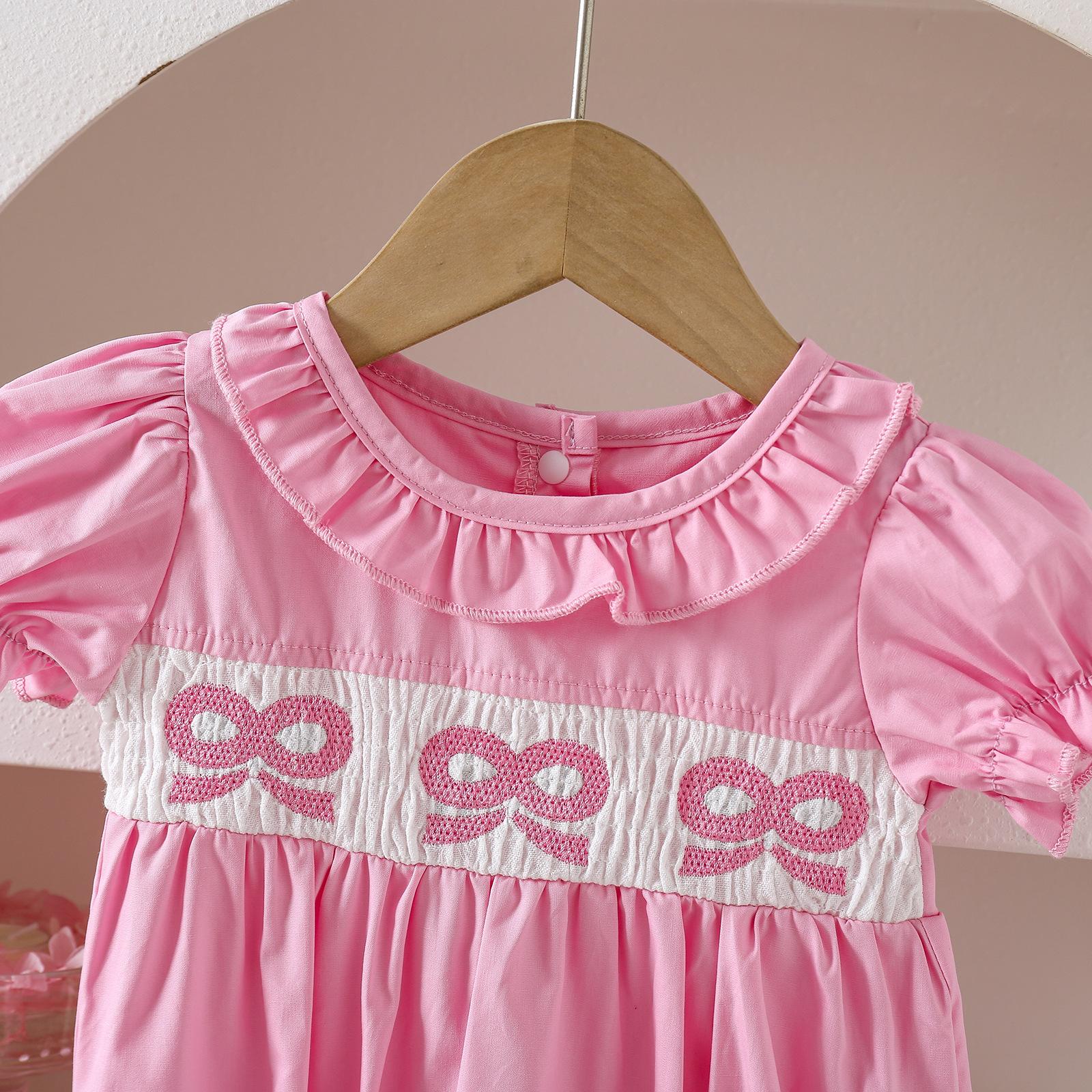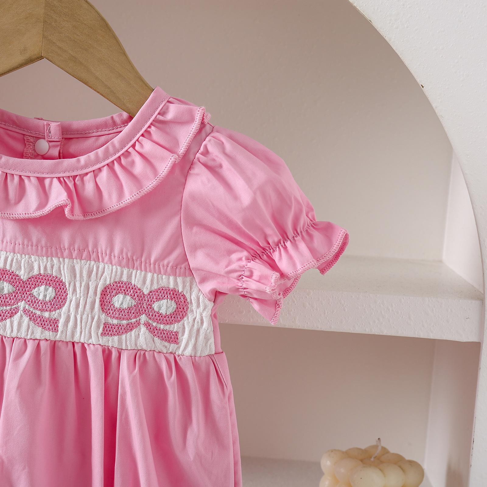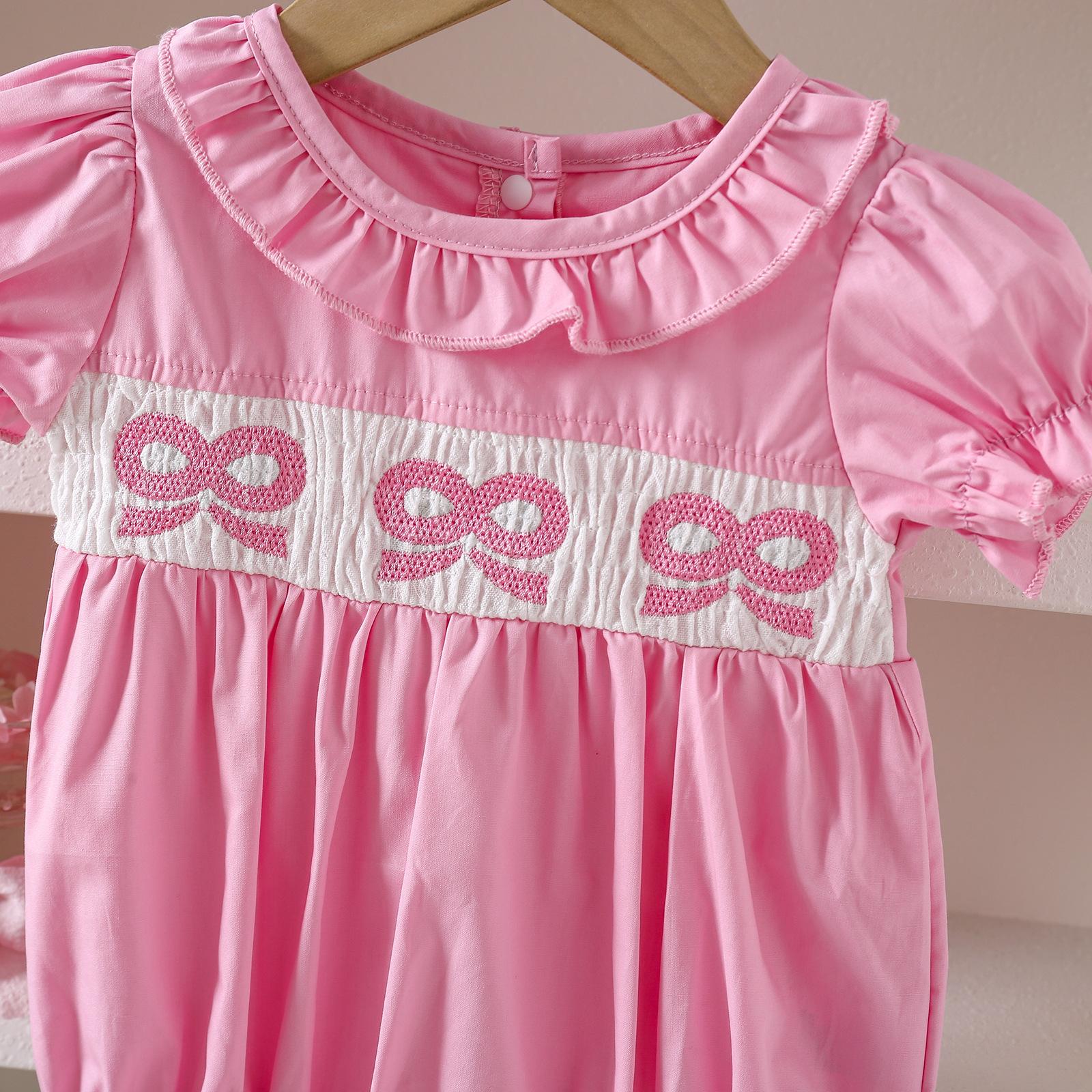 Romper de Verano Fino para Bebé de Manga Corta con Cuello de Muñeca y Lazo Bordado en Stock para Envío Transfronterizo Admite Dropshipping