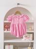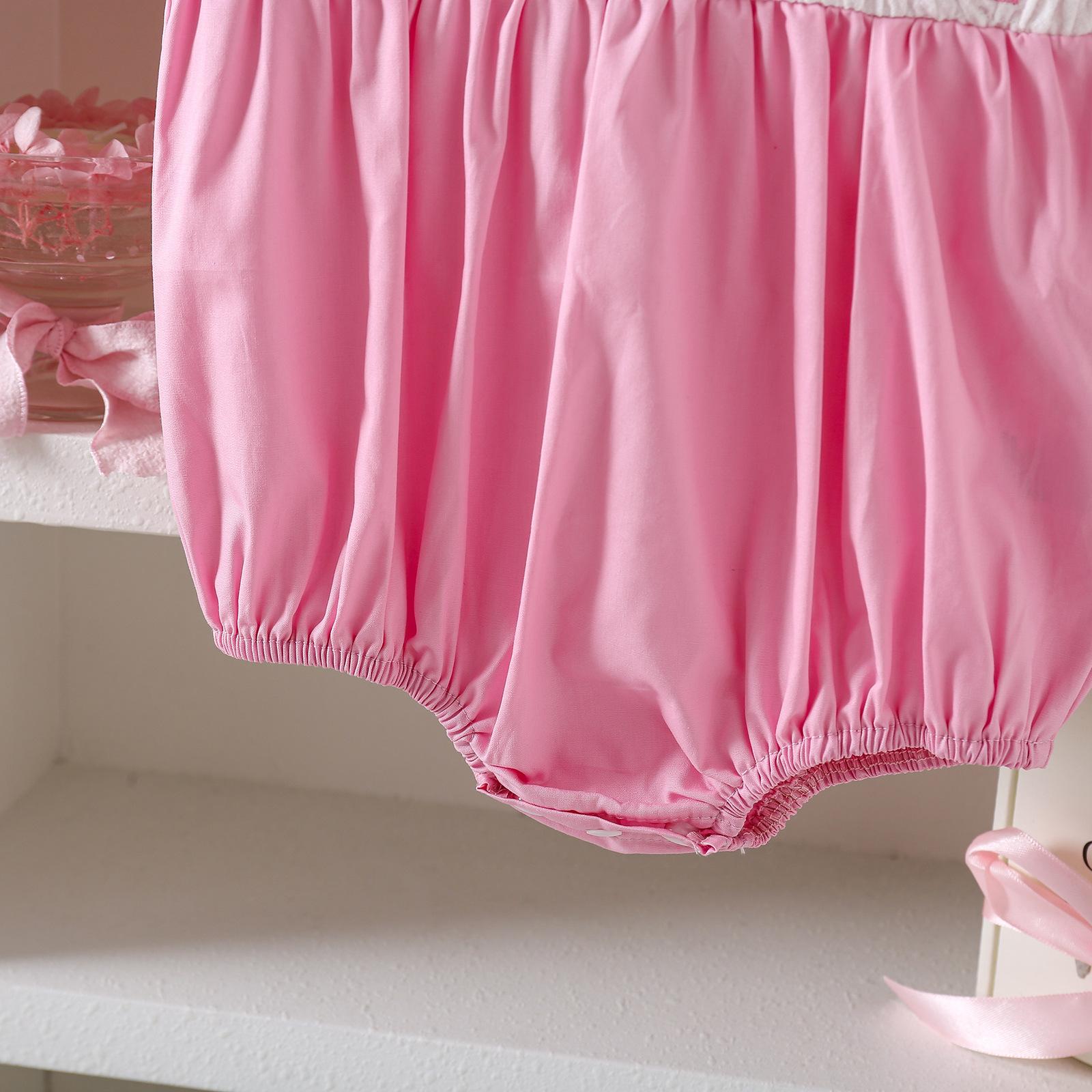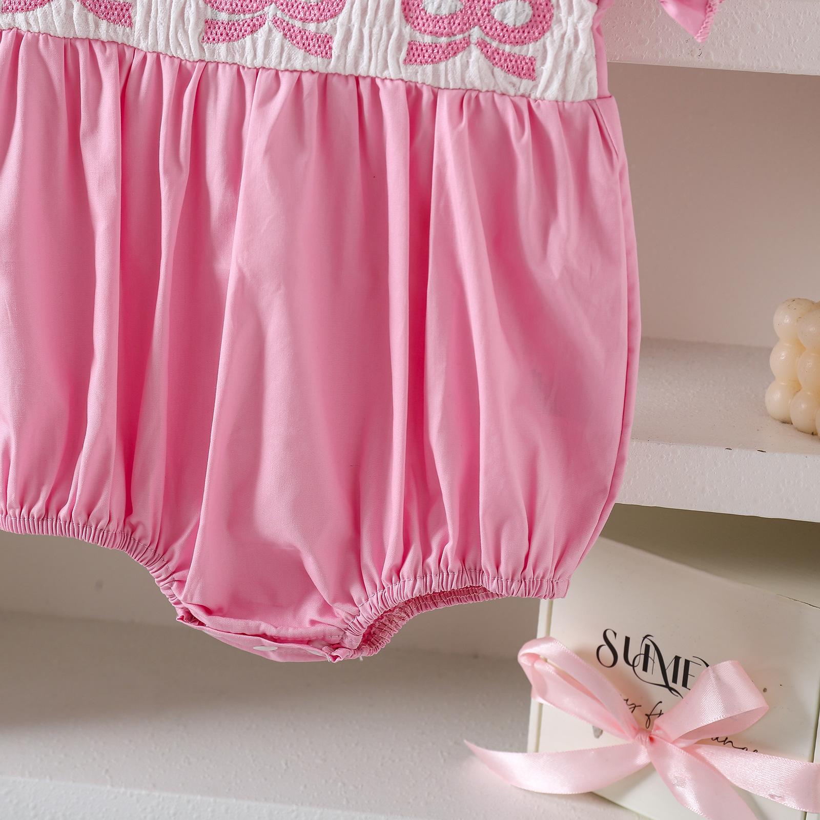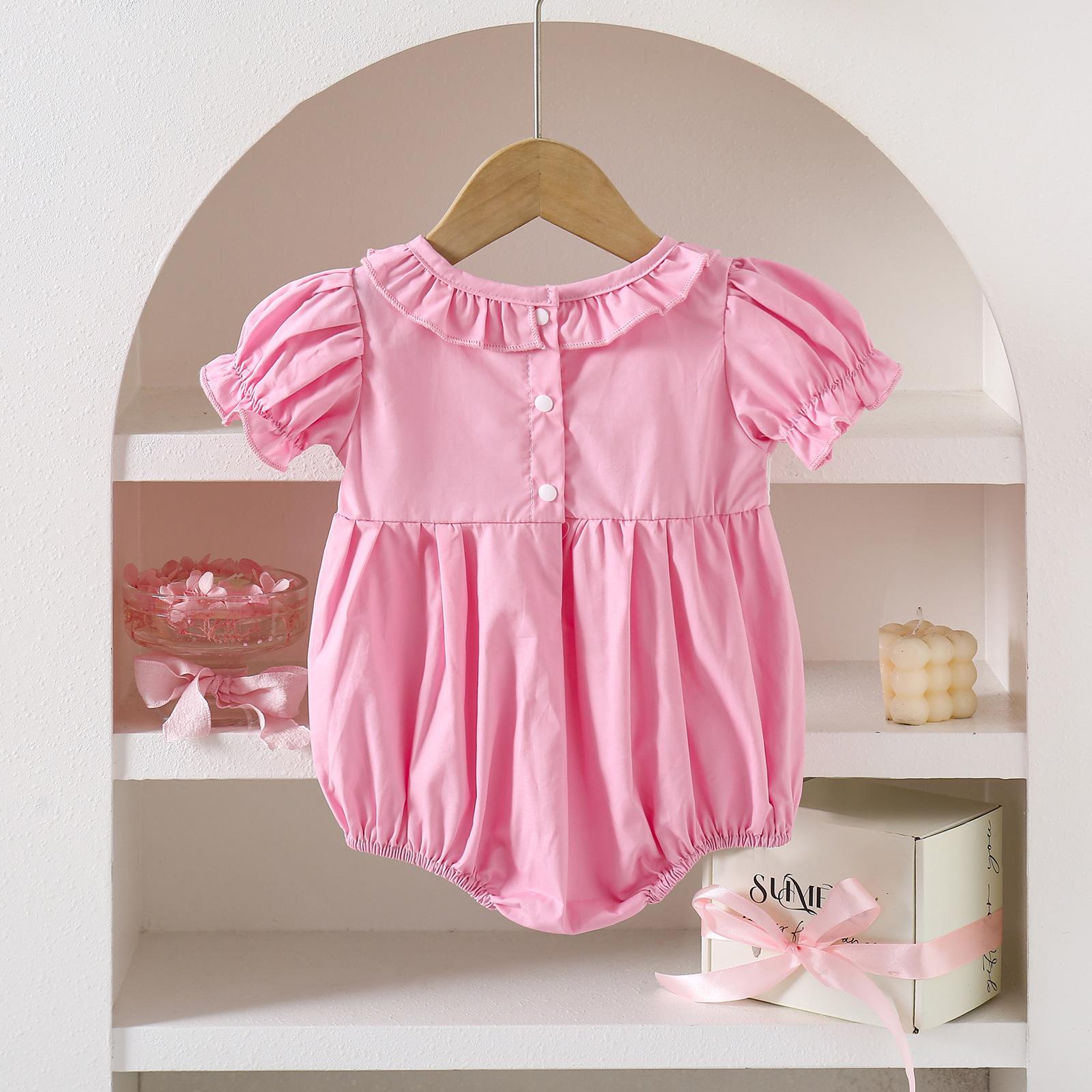 Romper de Verano Fino para Bebé de Manga Corta con Cuello de Muñeca y Lazo Bordado en Stock para Envío Transfronterizo Admite Dropshipping