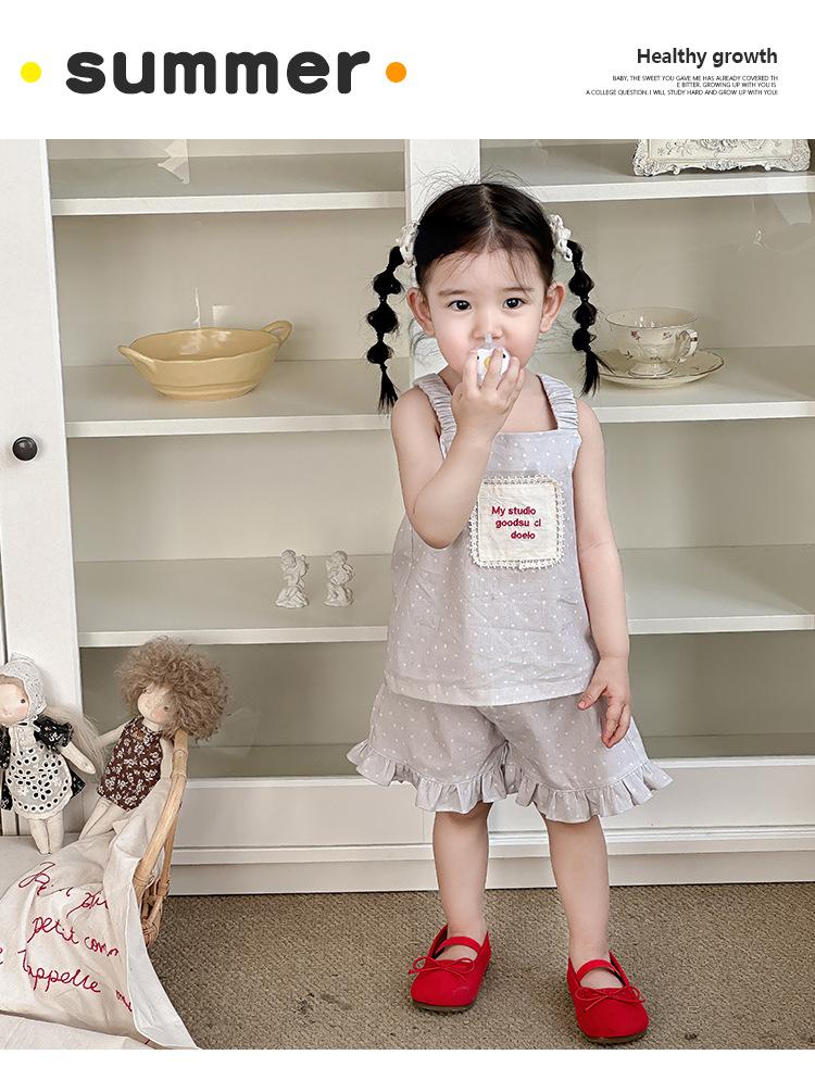 Compra Portabebé estilo coreano Ropa de bebé Verano Traje de algodón Chaleco para mujer Shorts Conjunto delgado de dos piezas con abertura al por mayor en Joom.pro
