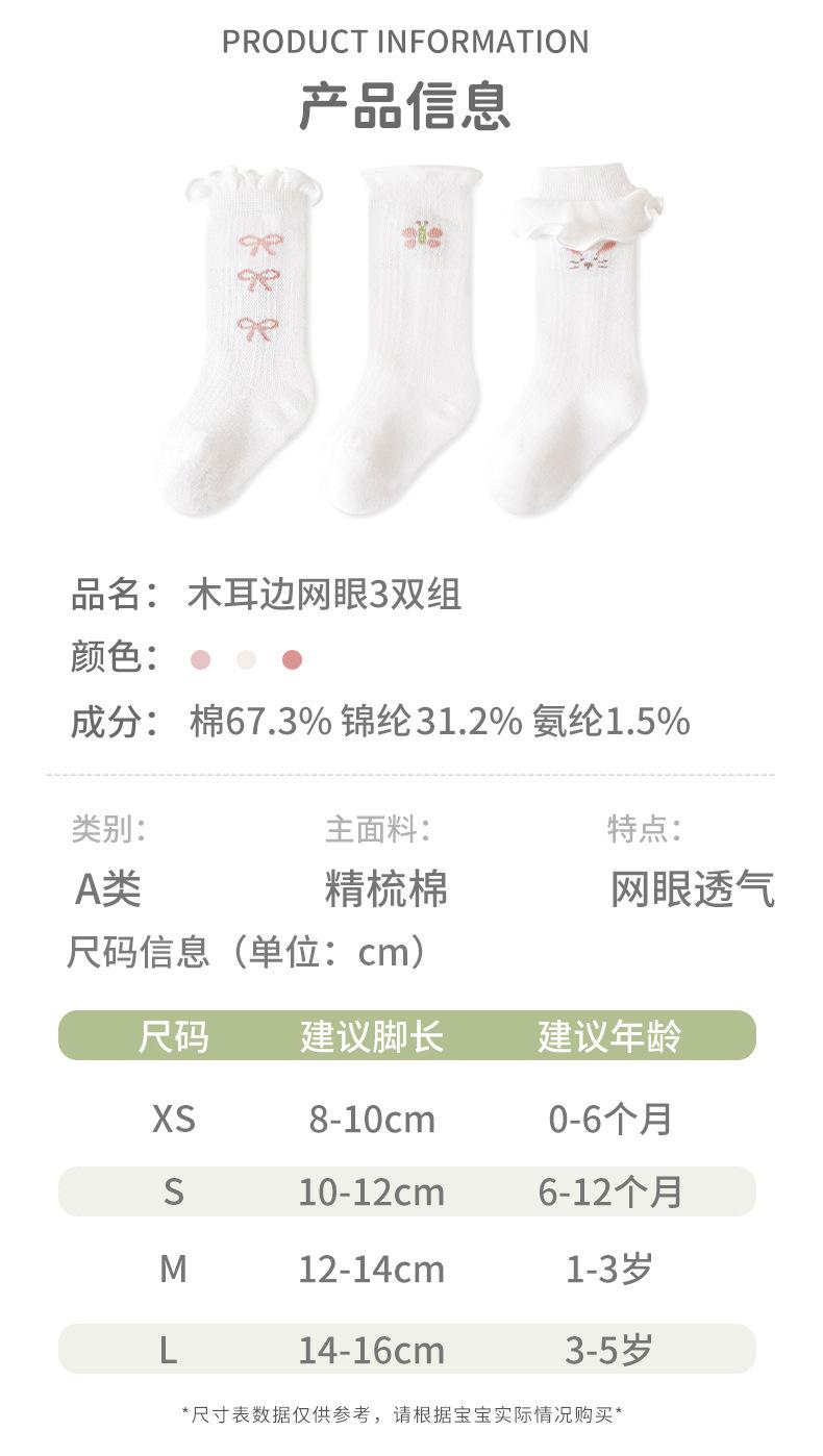 Medias para Bebé Algodón Peinado Malla Transpirable Calcetines para Niñas Primavera y Verano Encaje de Oreja Sin Costuras Calcetines de Princesa Clase A
