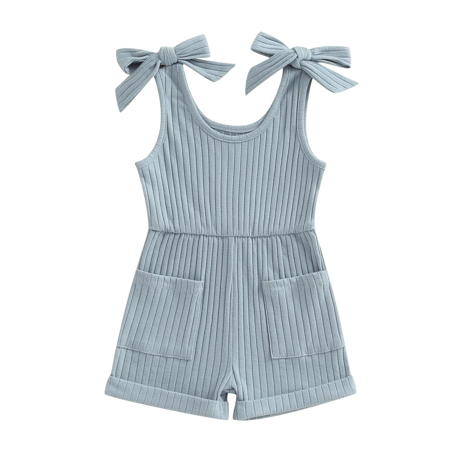Ropa para Niñas Mono de Verano con Tirantes y Lazo Mono Casual de Color Sólido