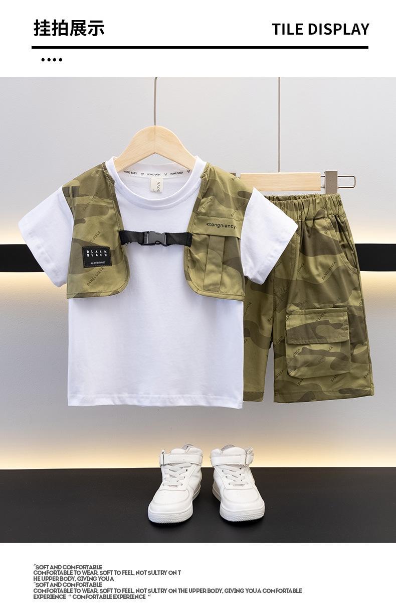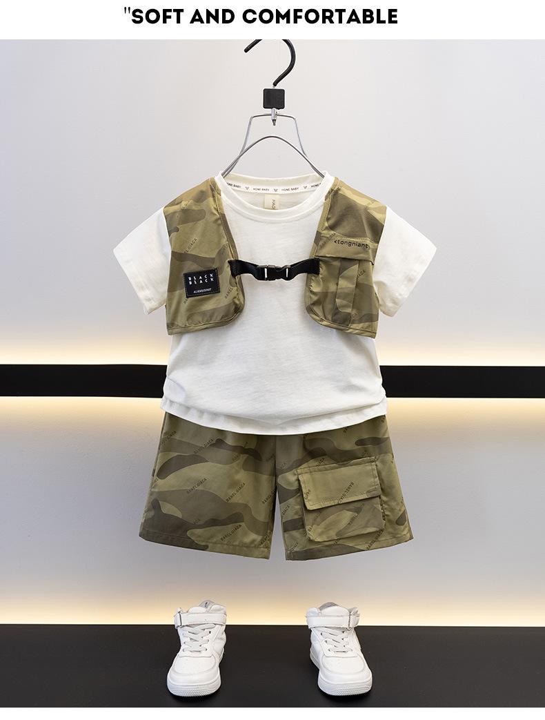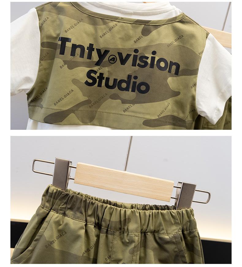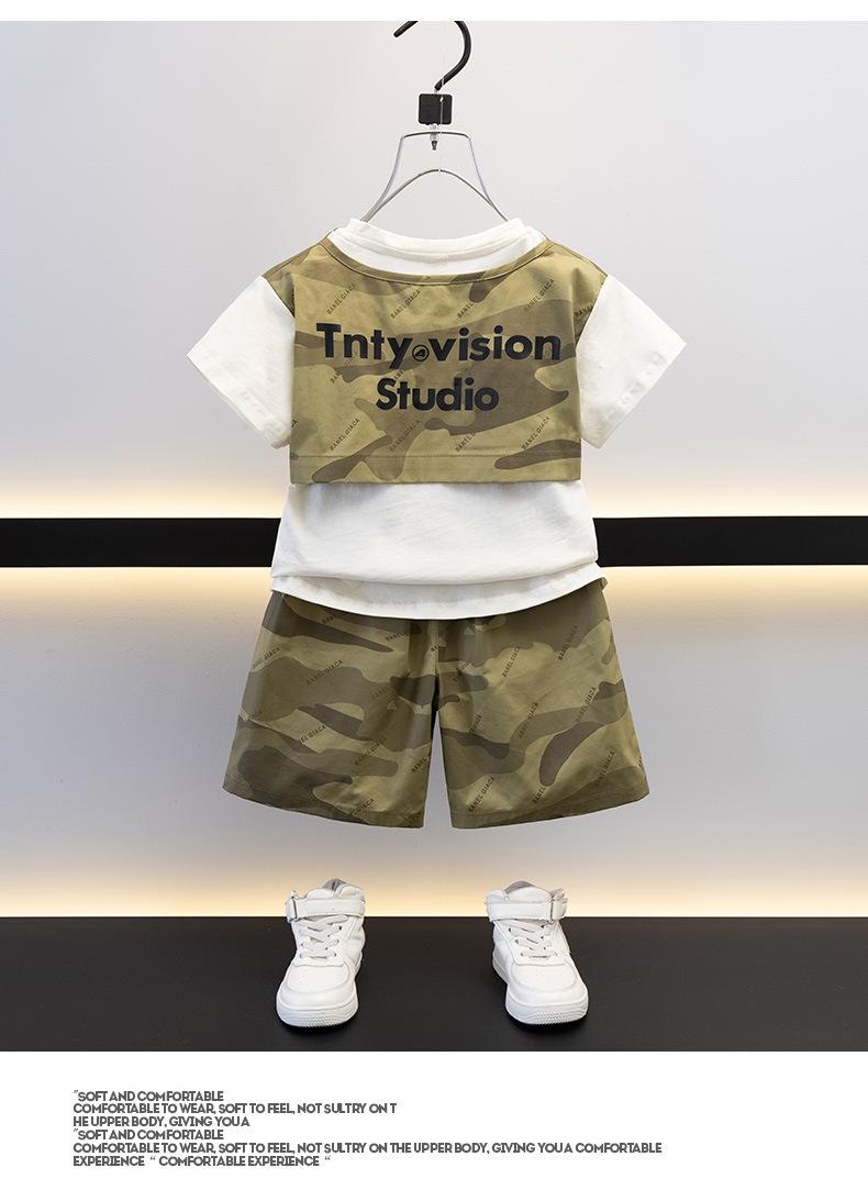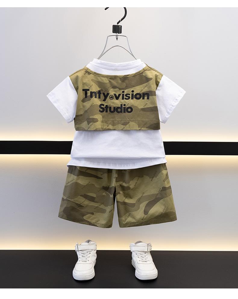 Traje de Camuflaje de Verano para Niños 2025 Nuevo Guapo Kidsren Falso de Dos Piezas de Manga Corta Conjunto de Dos Piezas Ropa de Verano para Bebé Kidsren