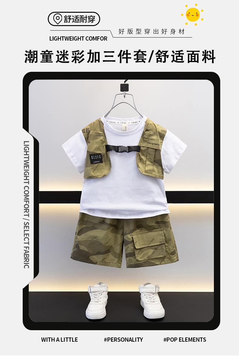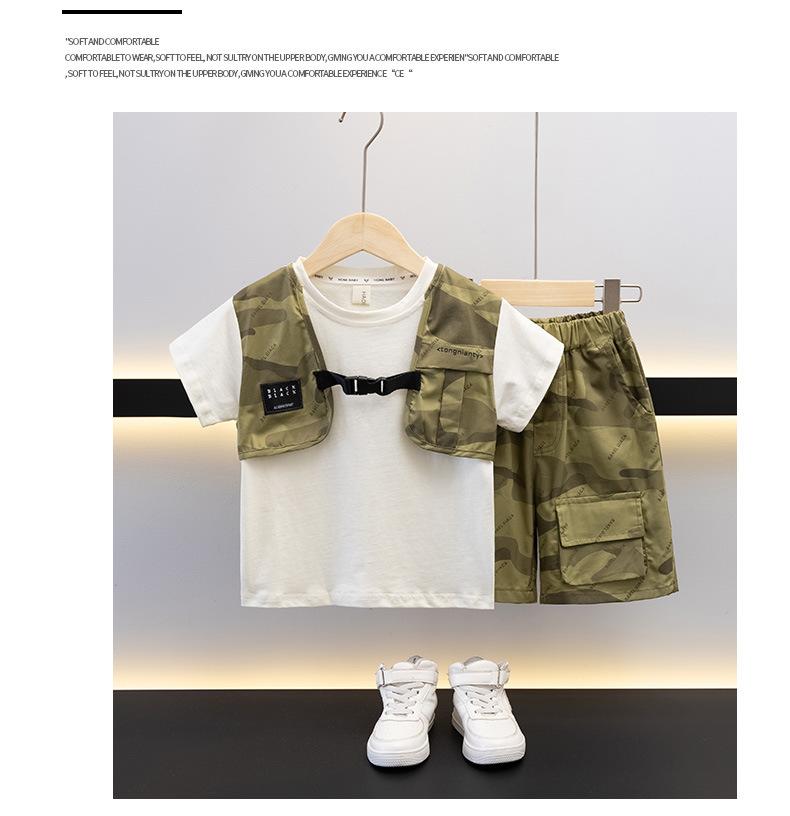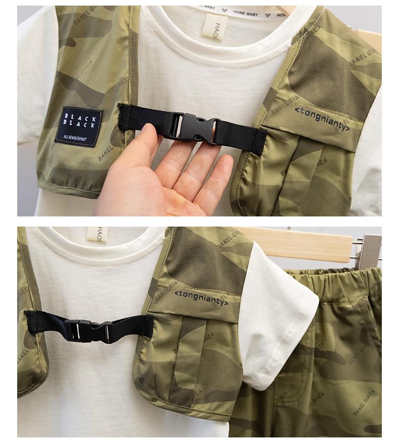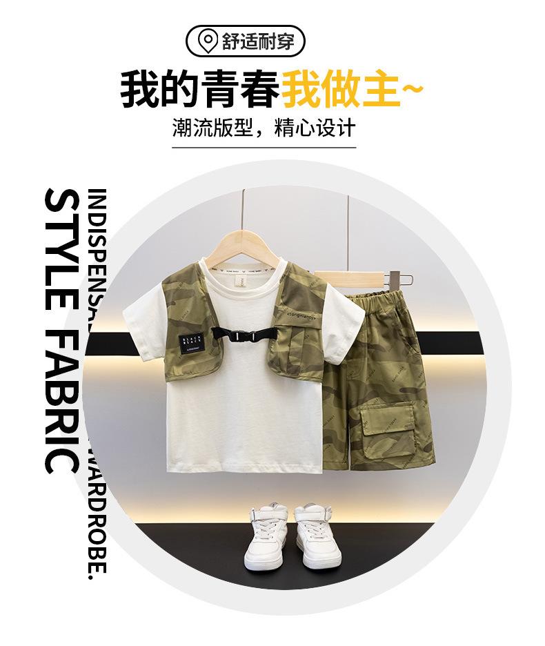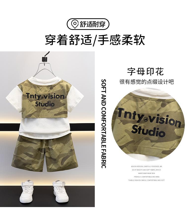 Traje de Camuflaje de Verano para Niños 2025 Nuevo Guapo Kidsren Falso de Dos Piezas de Manga Corta Conjunto de Dos Piezas Ropa de Verano para Bebé Kidsren