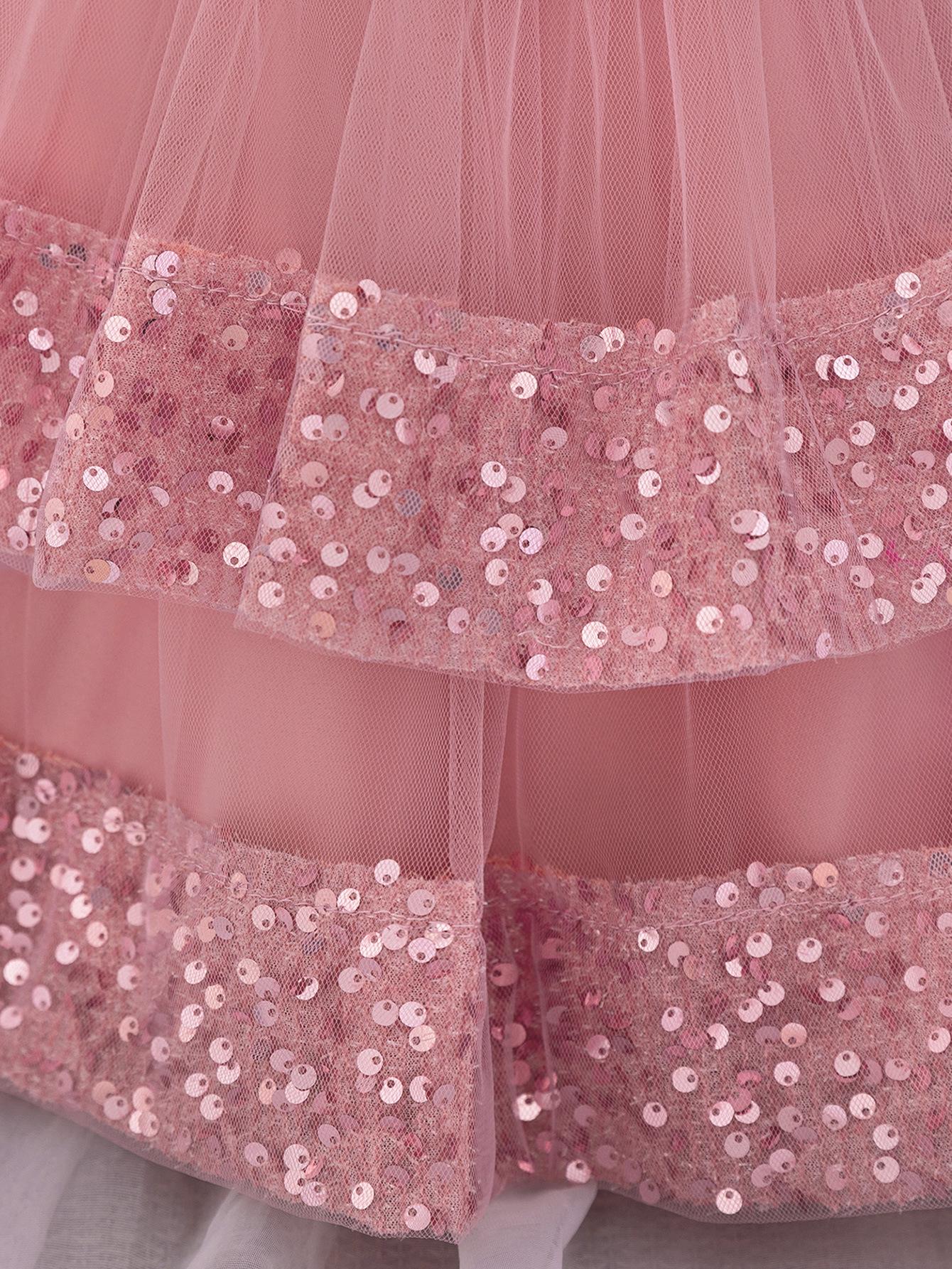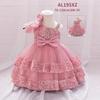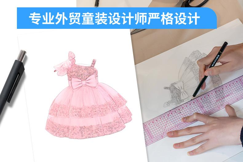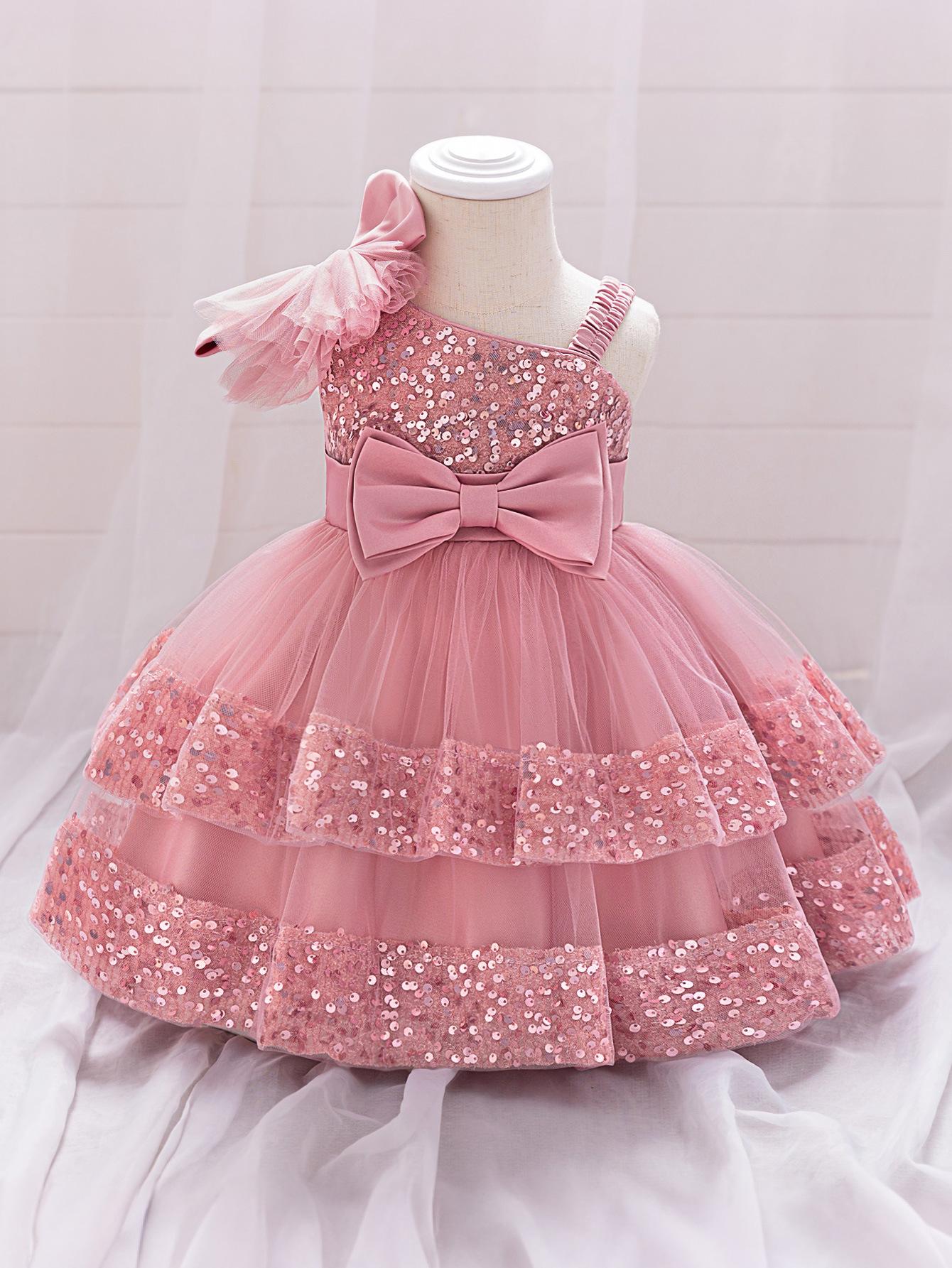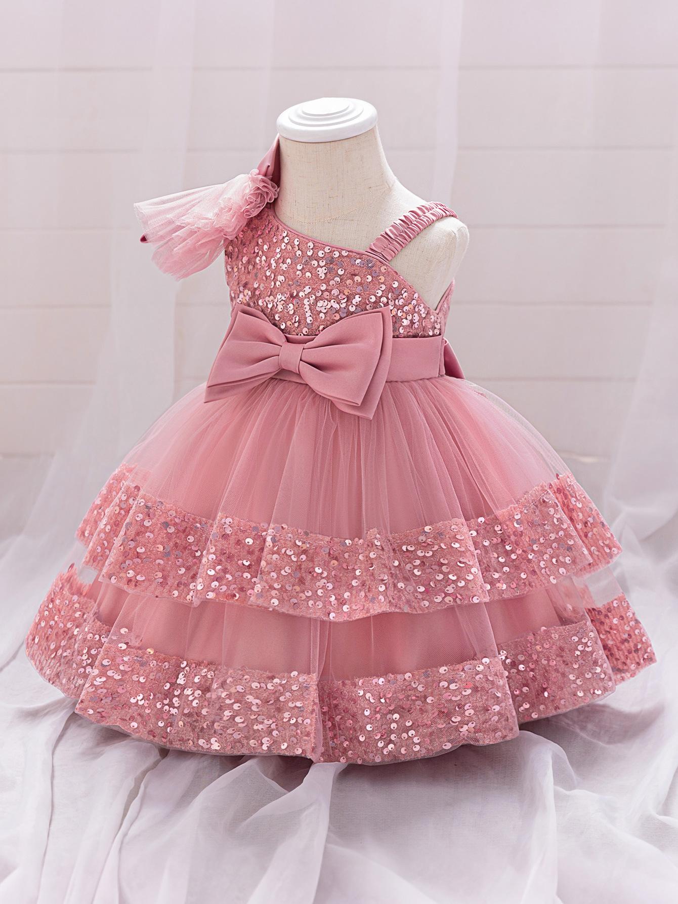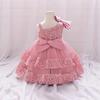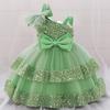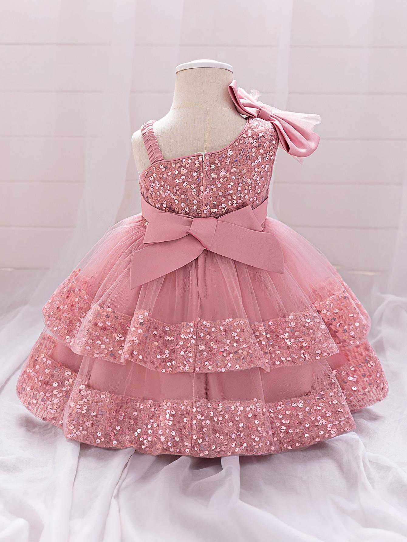 Nuevo Vestido Infantil Transfronterizo Vestido de Princesa con Lentejuelas Falda de Malla de Pastel Esponjosa Vestido de Noche para Banquete de Niña de las Flores de Un Año Falda