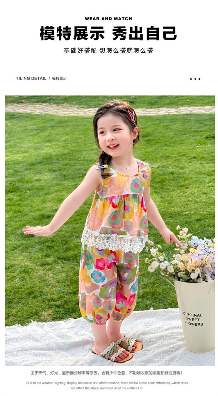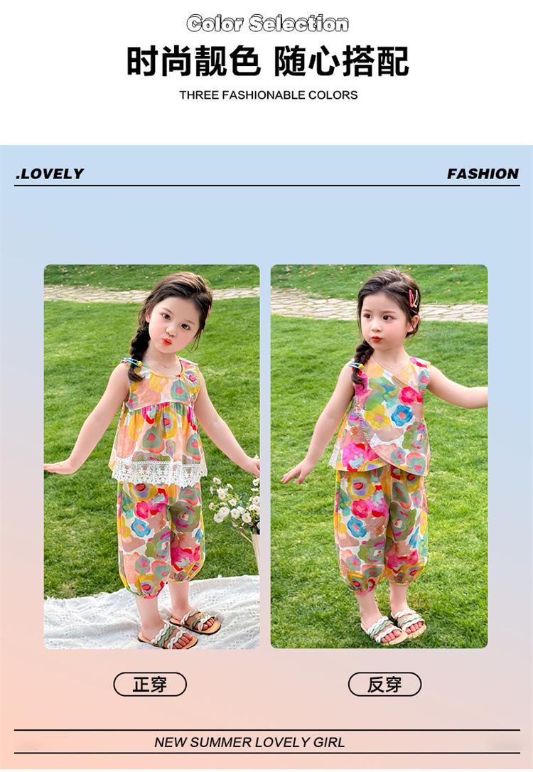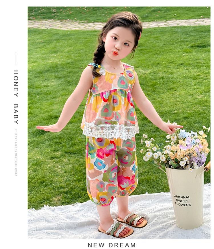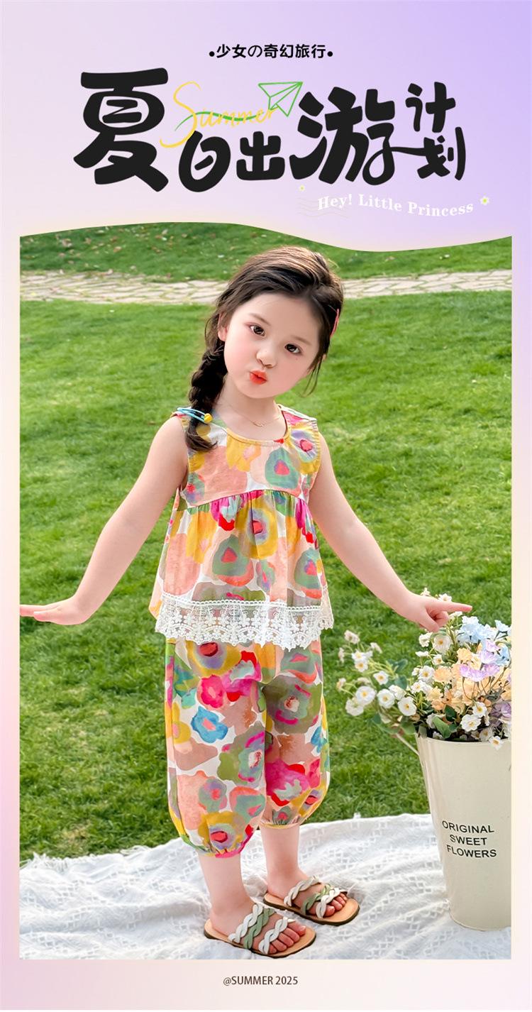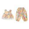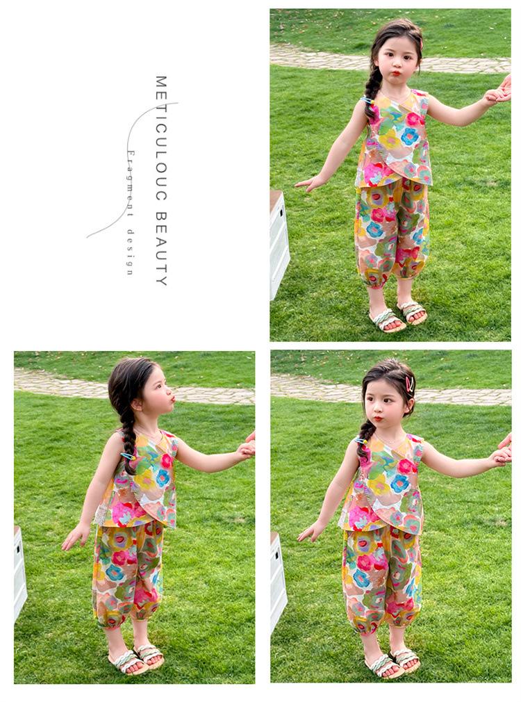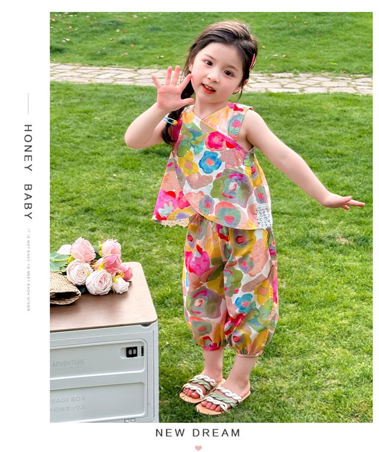 Conjunto de pantalones de verano holgados y elegantes para niñas con estampado floral de moda y antimosquitos 2025 Nueva versión coreana delgada Moda para bebé