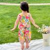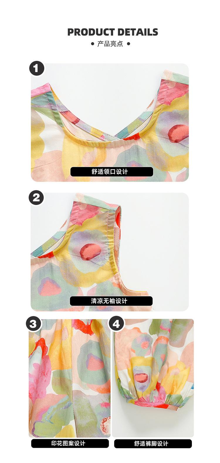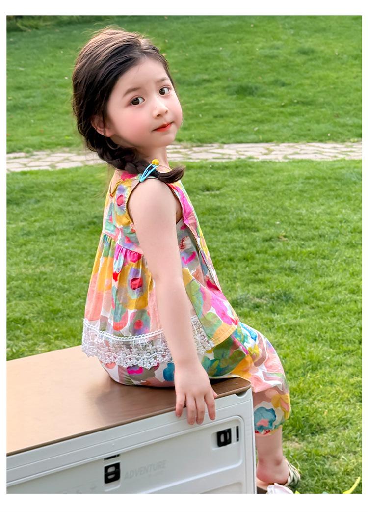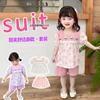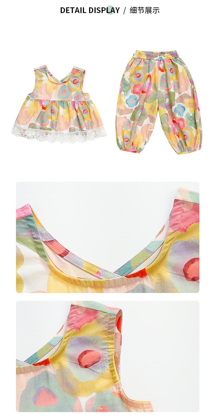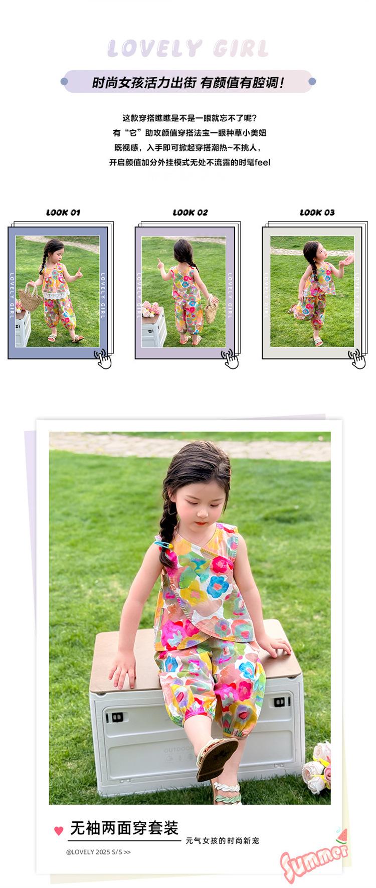 Conjunto de pantalones de verano holgados y elegantes para niñas con estampado floral de moda y antimosquitos 2025 Nueva versión coreana delgada Moda para bebé