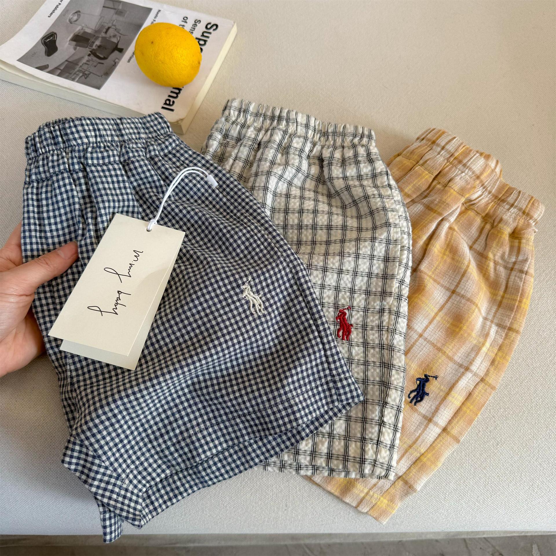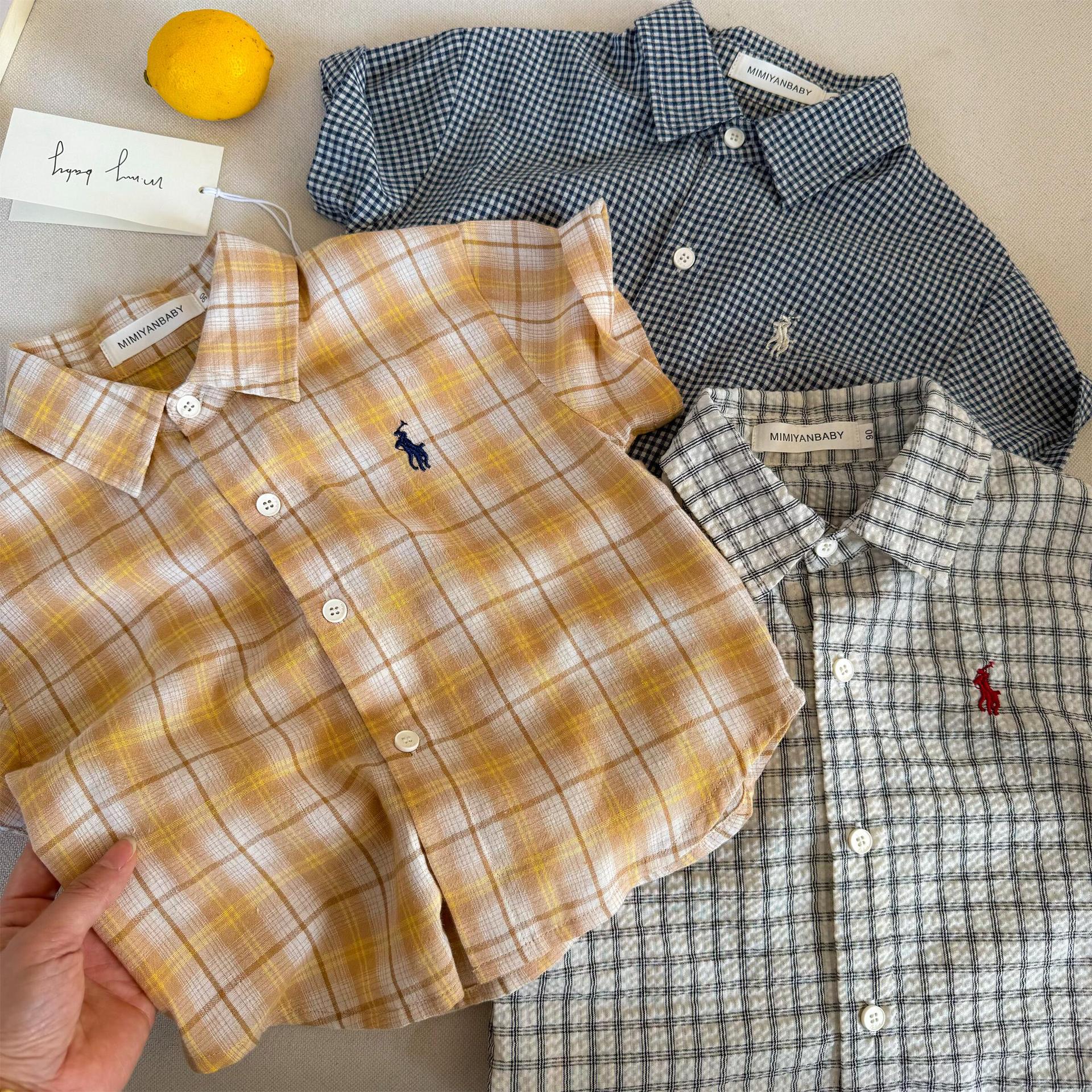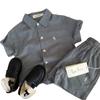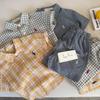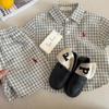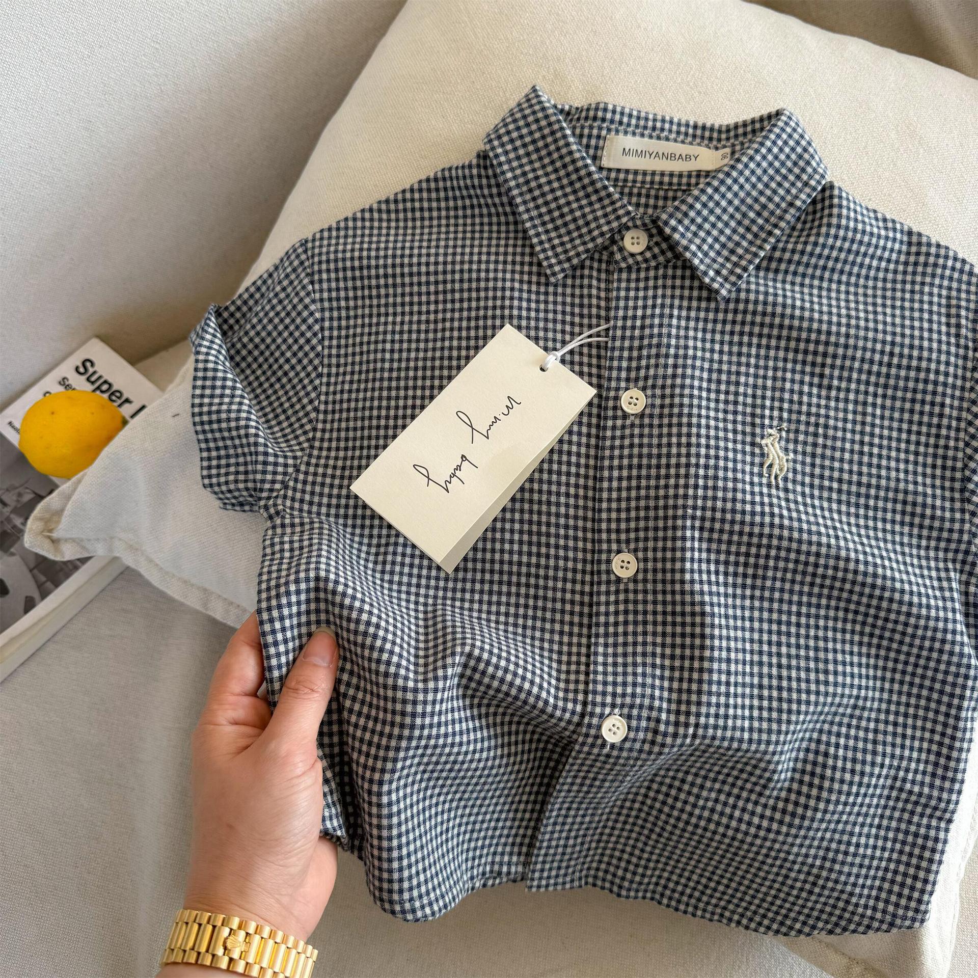 Traje para niños 2025 Verano Camisa de manga corta bordada a cuadros para niños Pantalones cortos modernos para bebé Conjunto de dos piezas