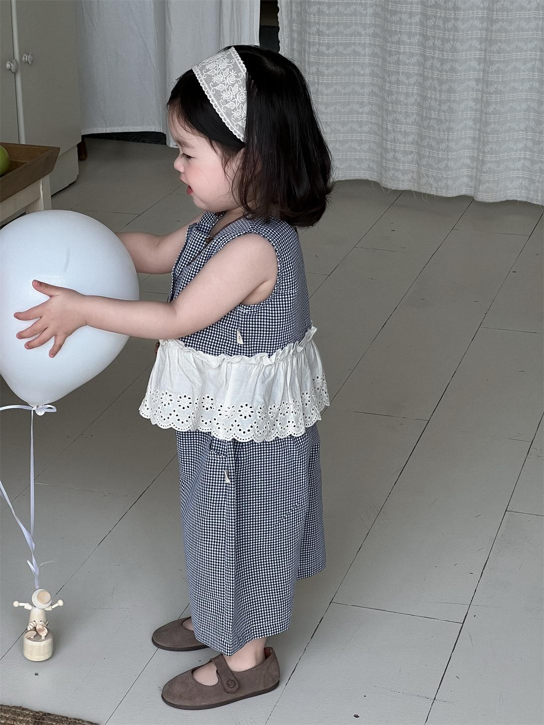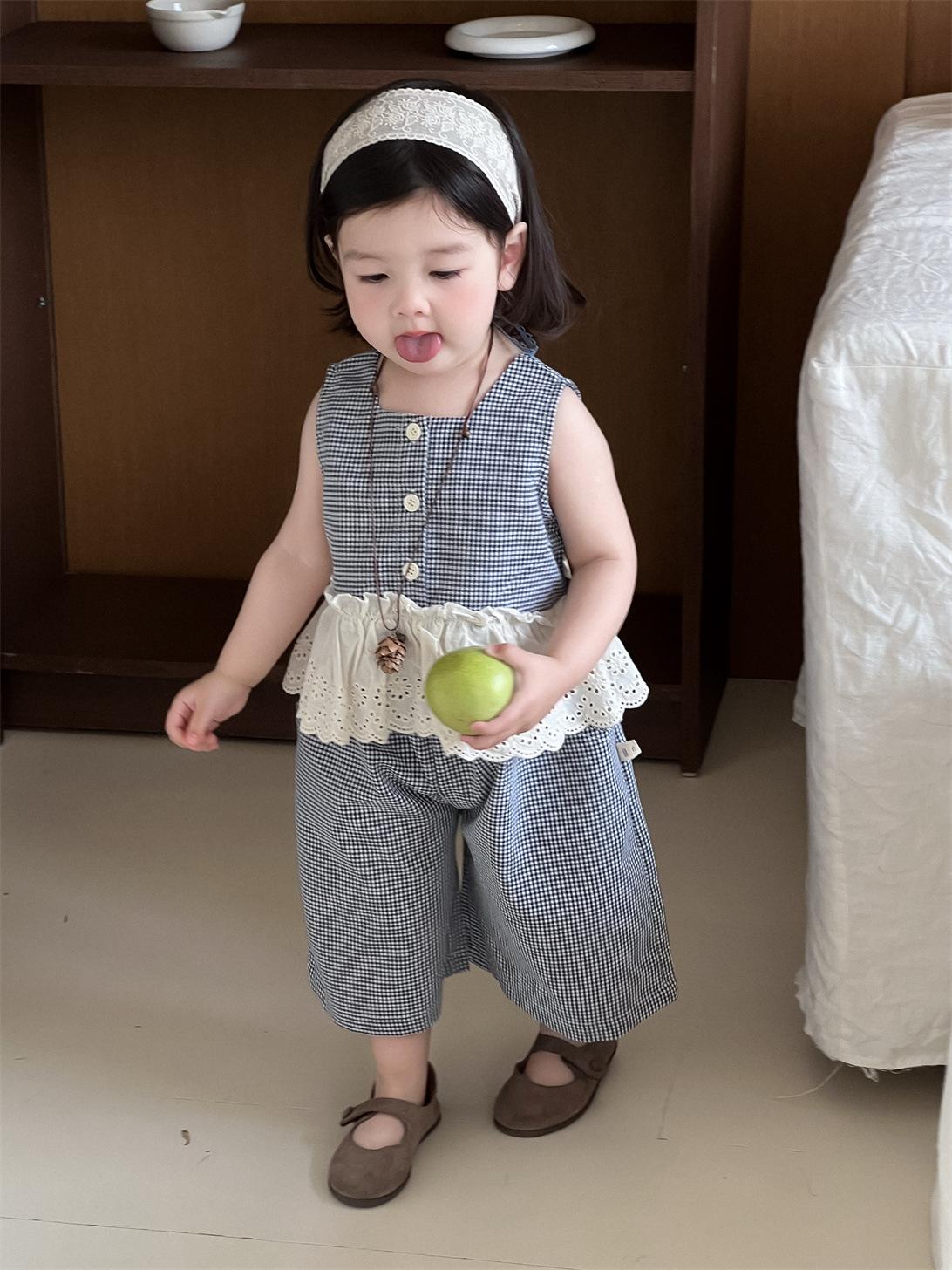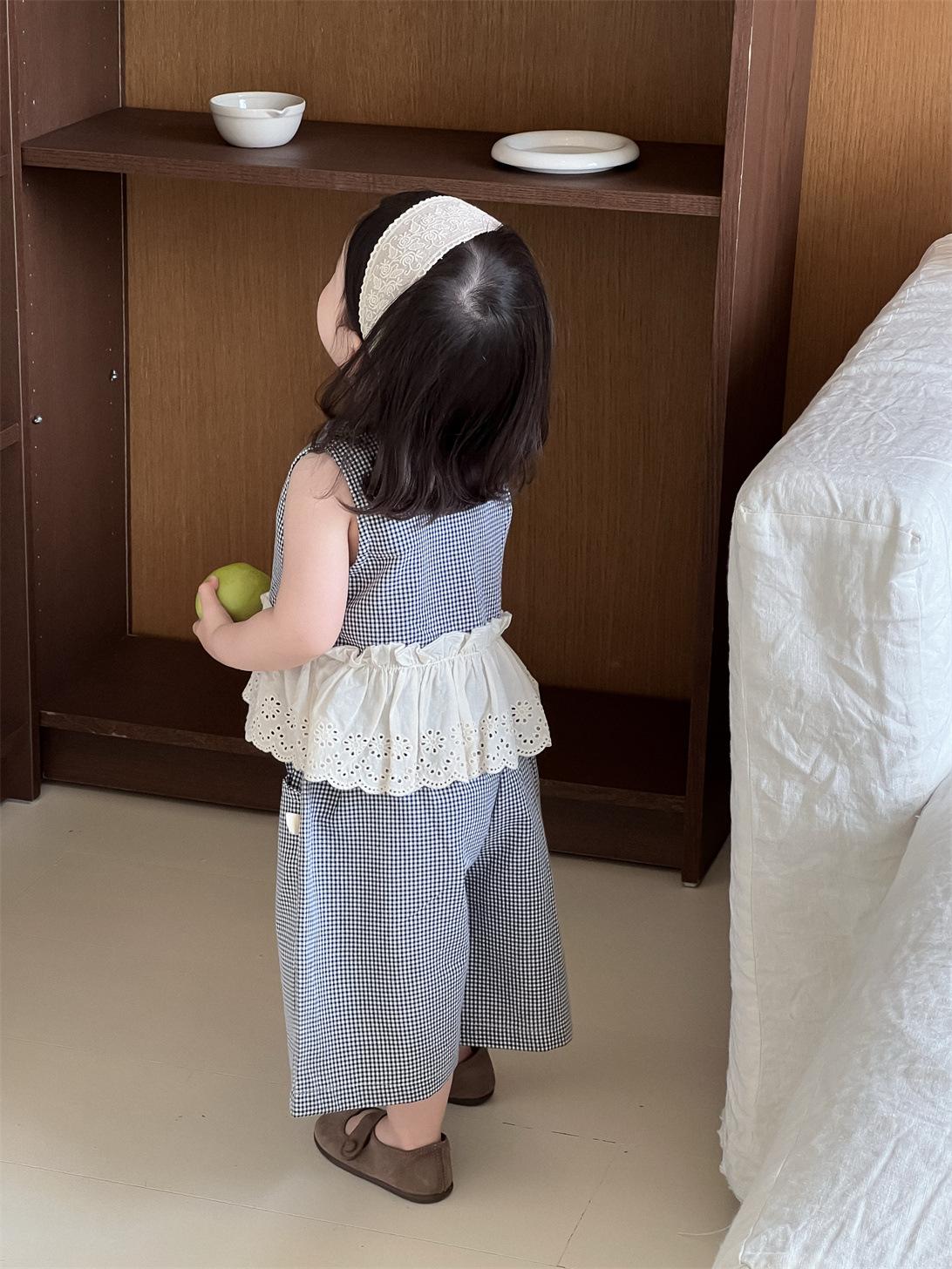 Traje de Verano a Cuadros para Niños Delgado Verano 2025 Nuevo Estilo Coreano Ropa para Niños Ropa de Bebé Traje de Chaleco para Niñas
