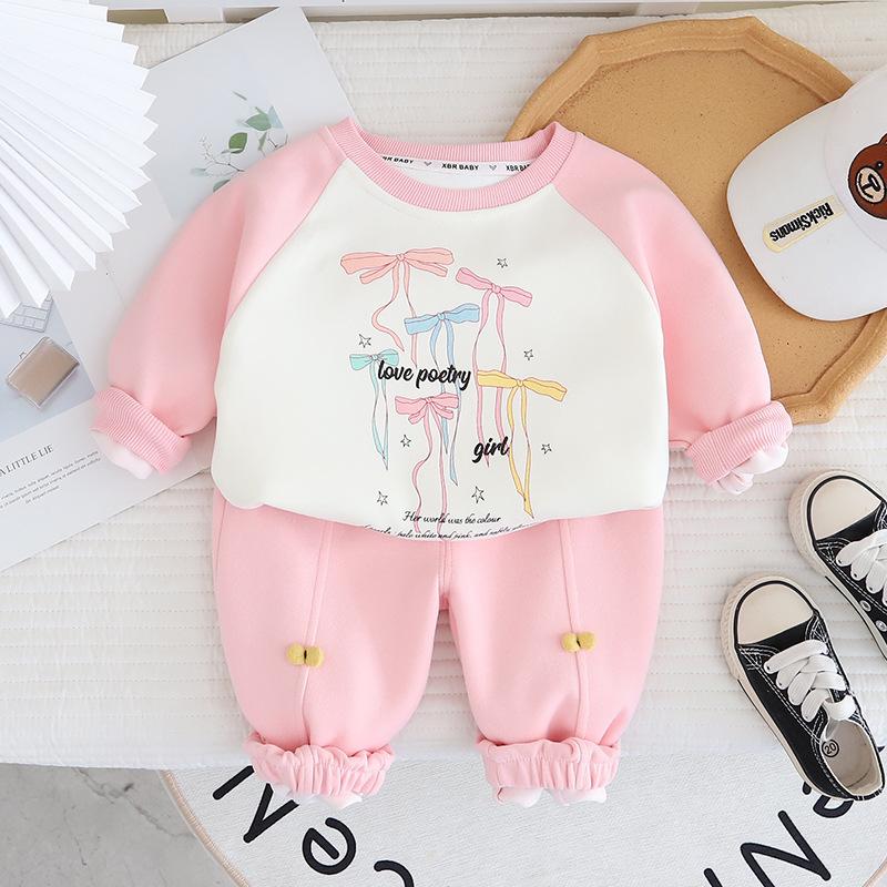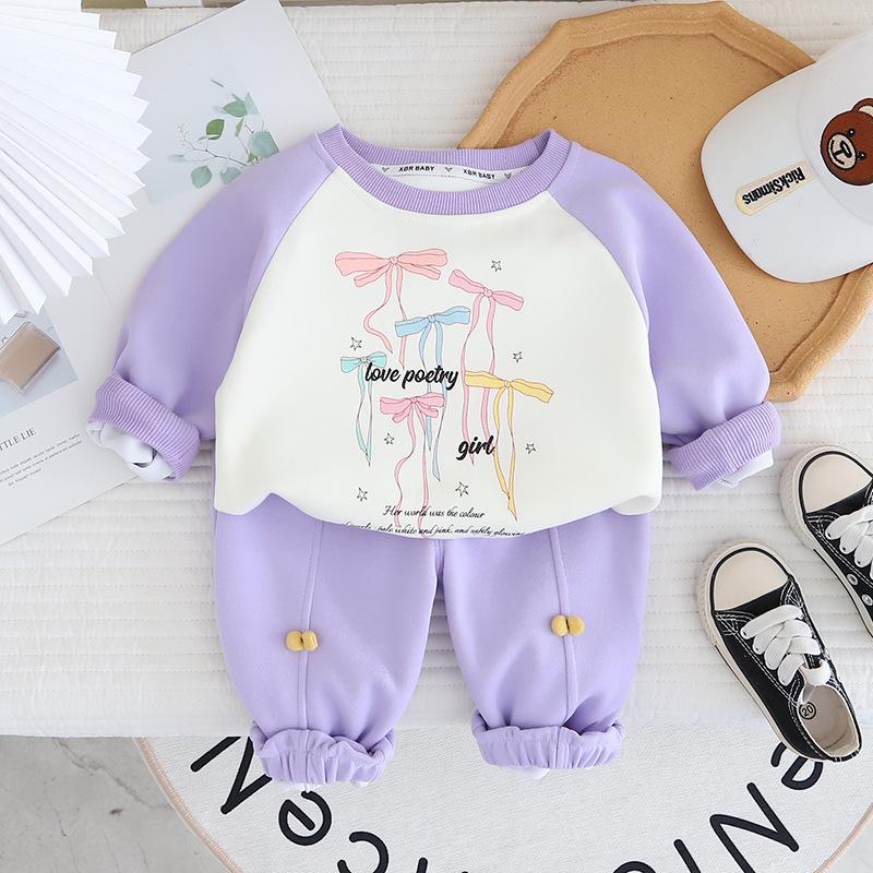 Ropa para Niños 2025 Primavera y Otoño Trajes para Niños Estilo Coreano Lazo de Flor Pequeña Sudadera Conjunto de Dos Piezas de Manga Larga Tendencia de Moda