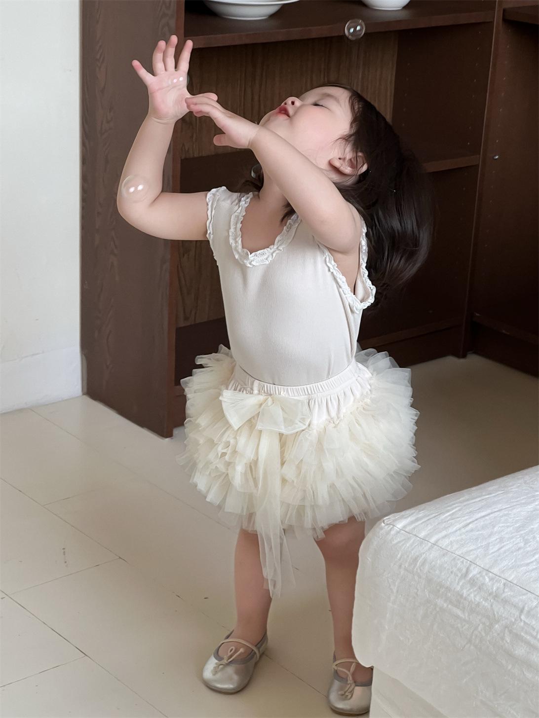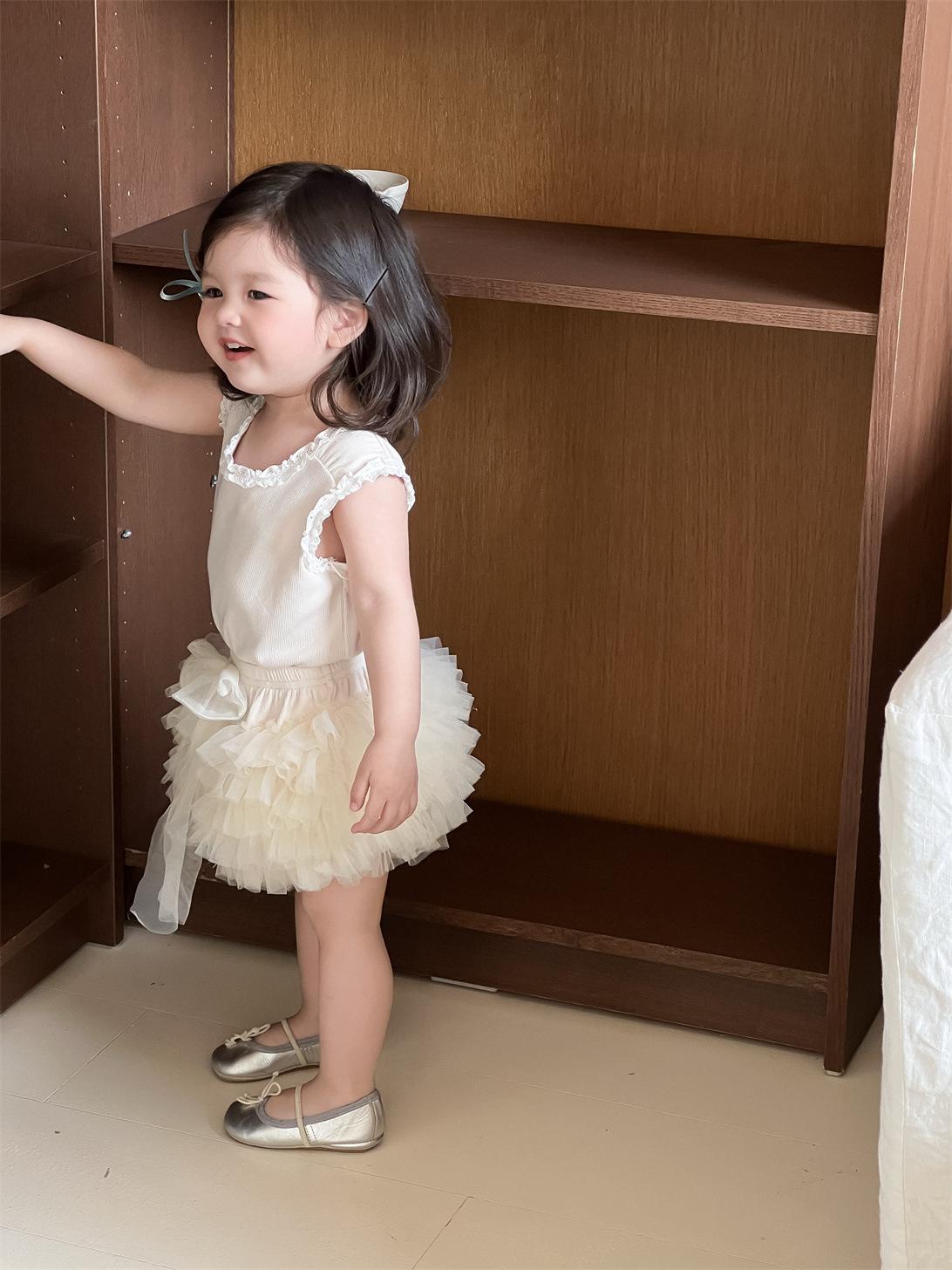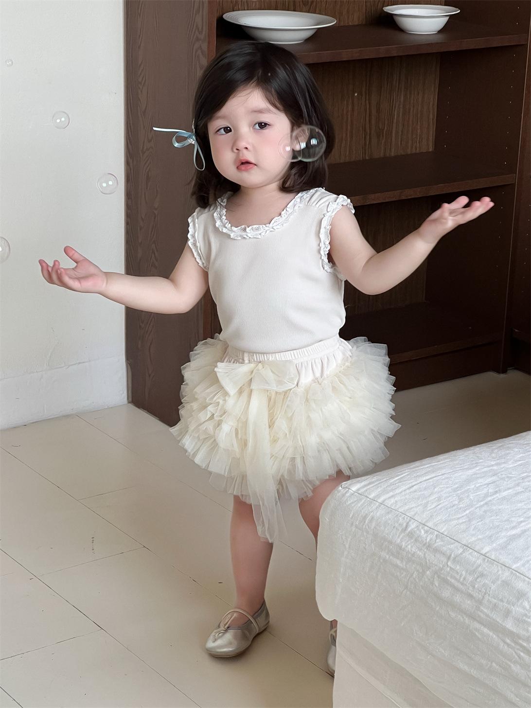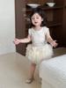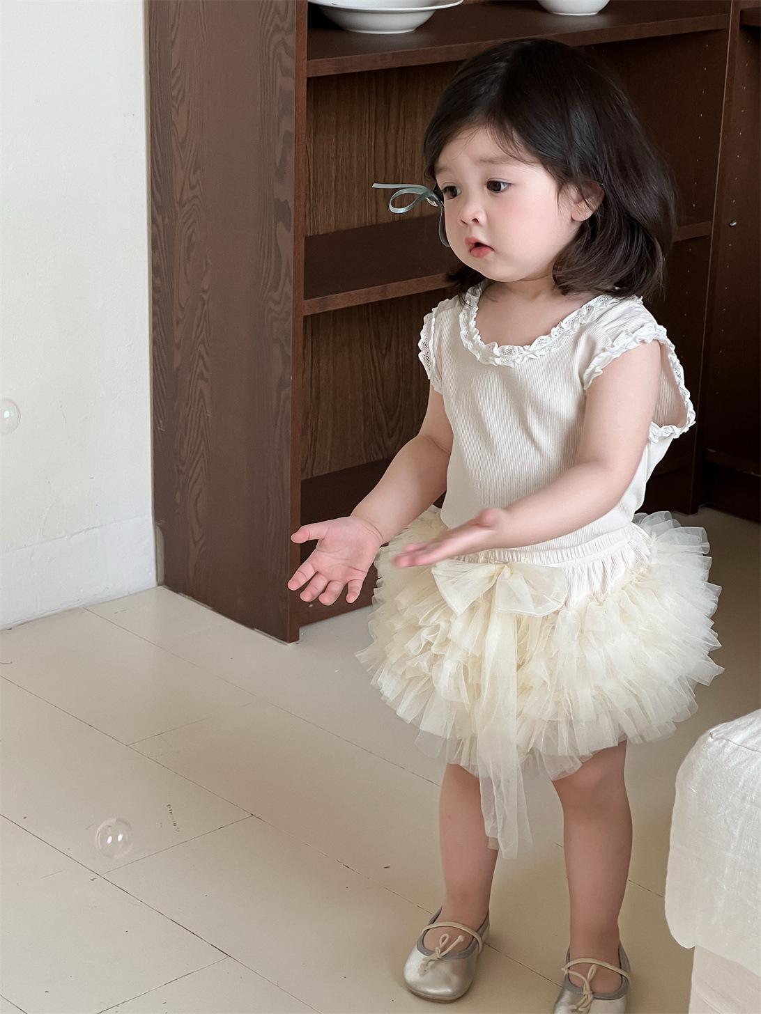 2025 Nuevo Verano para Niñas Ropa de Verano Delgada para Niños Ropa para Niños Estilo Coreano Camiseta de Encaje para Bebé Traje de Falda de Gasa