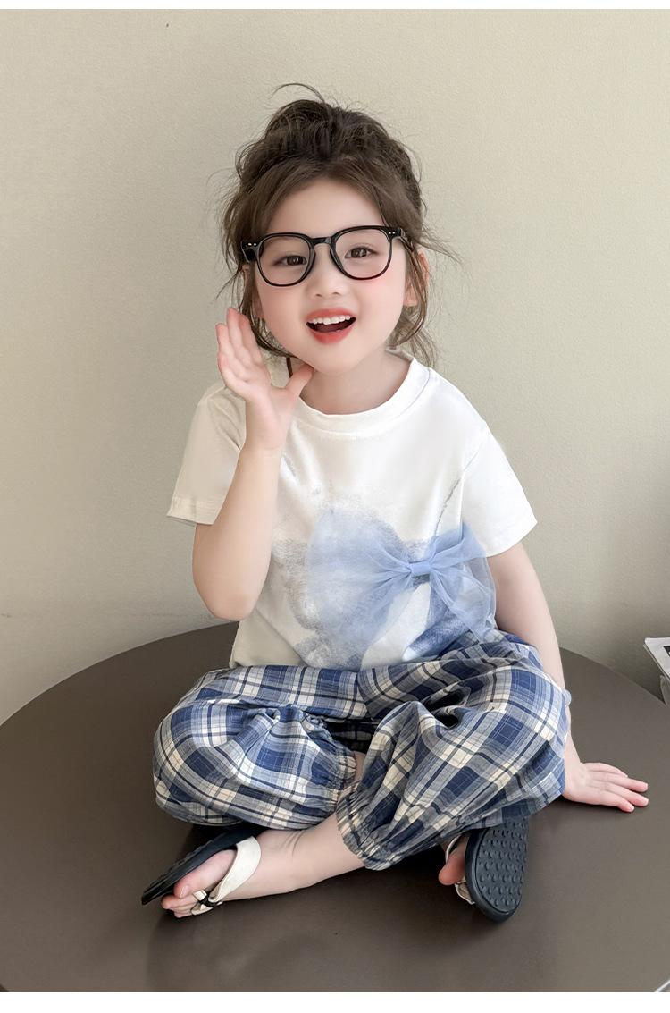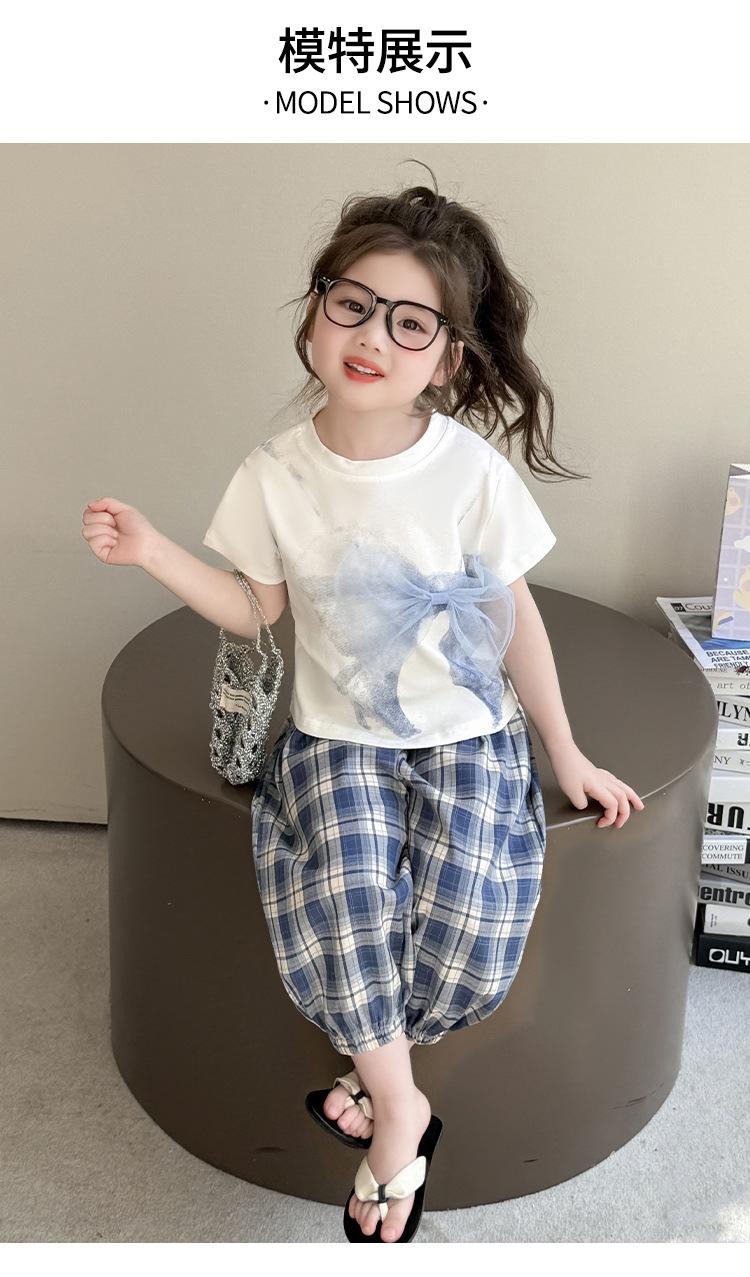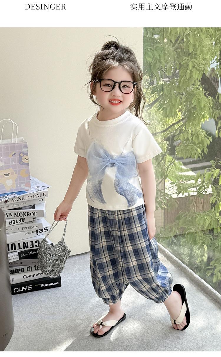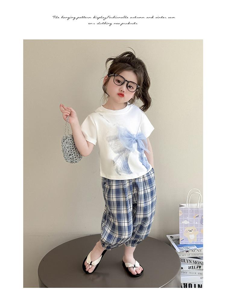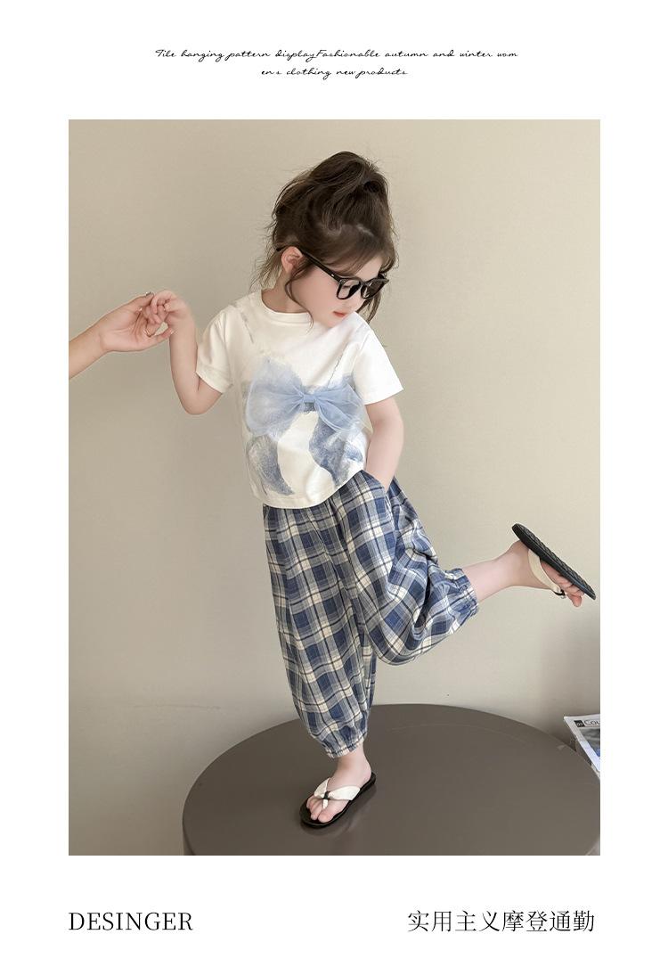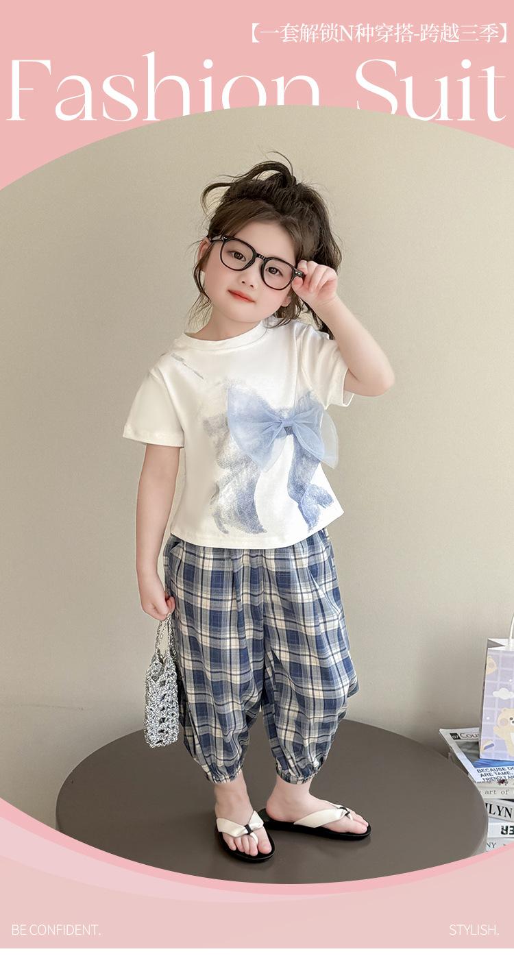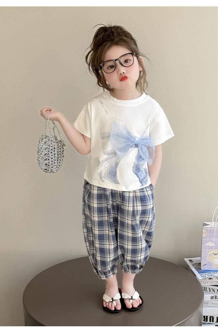 Compra Traje de pantalón Prellis estampado con lazo para niña 2025 Verano Nueva Moda Niña Elegante Dos piezas Estilo Coreano al por mayor en Joom.pro