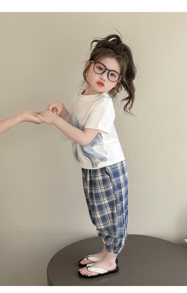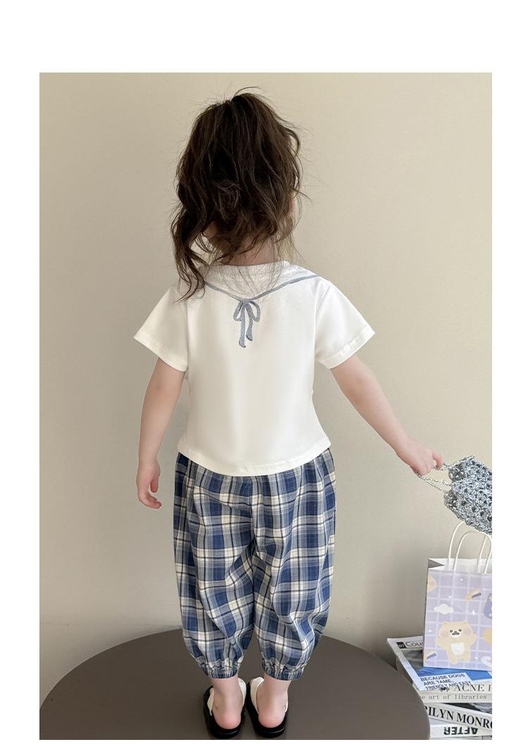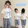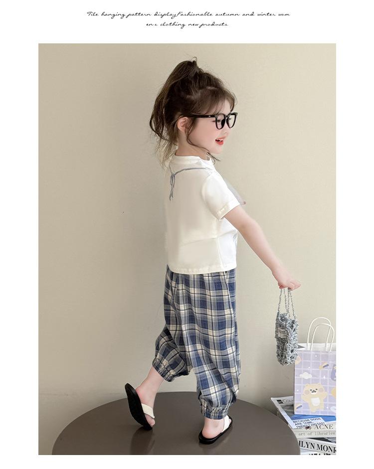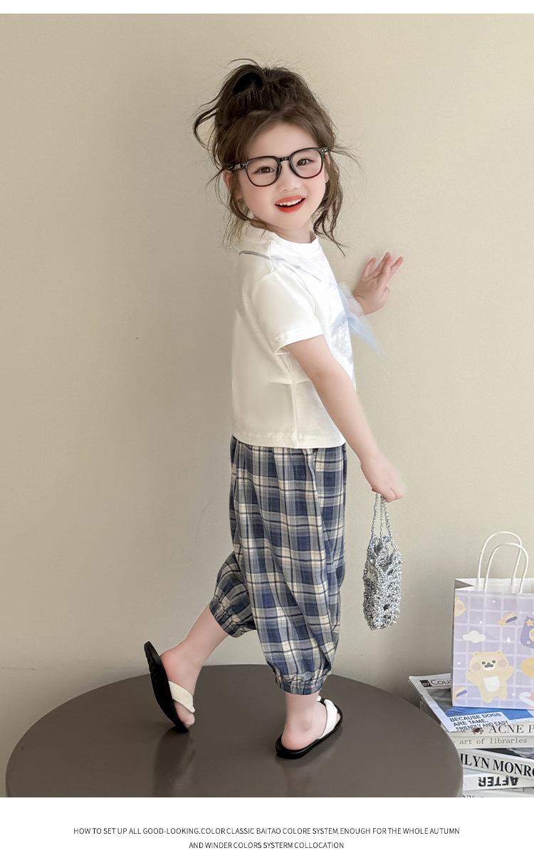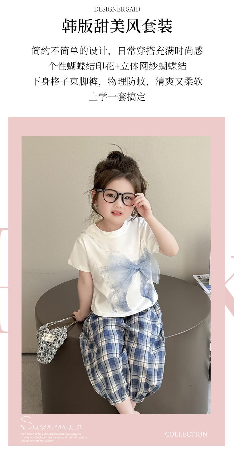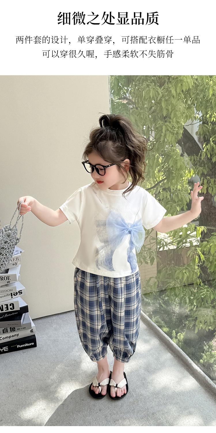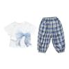 Compra Traje de pantalón Prellis estampado con lazo para niña 2025 Verano Nueva Moda Niña Elegante Dos piezas Estilo Coreano al por mayor en Joom.pro