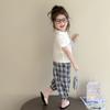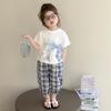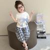 Traje de pantalón Prellis estampado con lazo para niña 2025 Verano Nueva Moda Niña Elegante Dos piezas Estilo Coreano