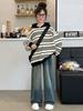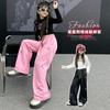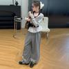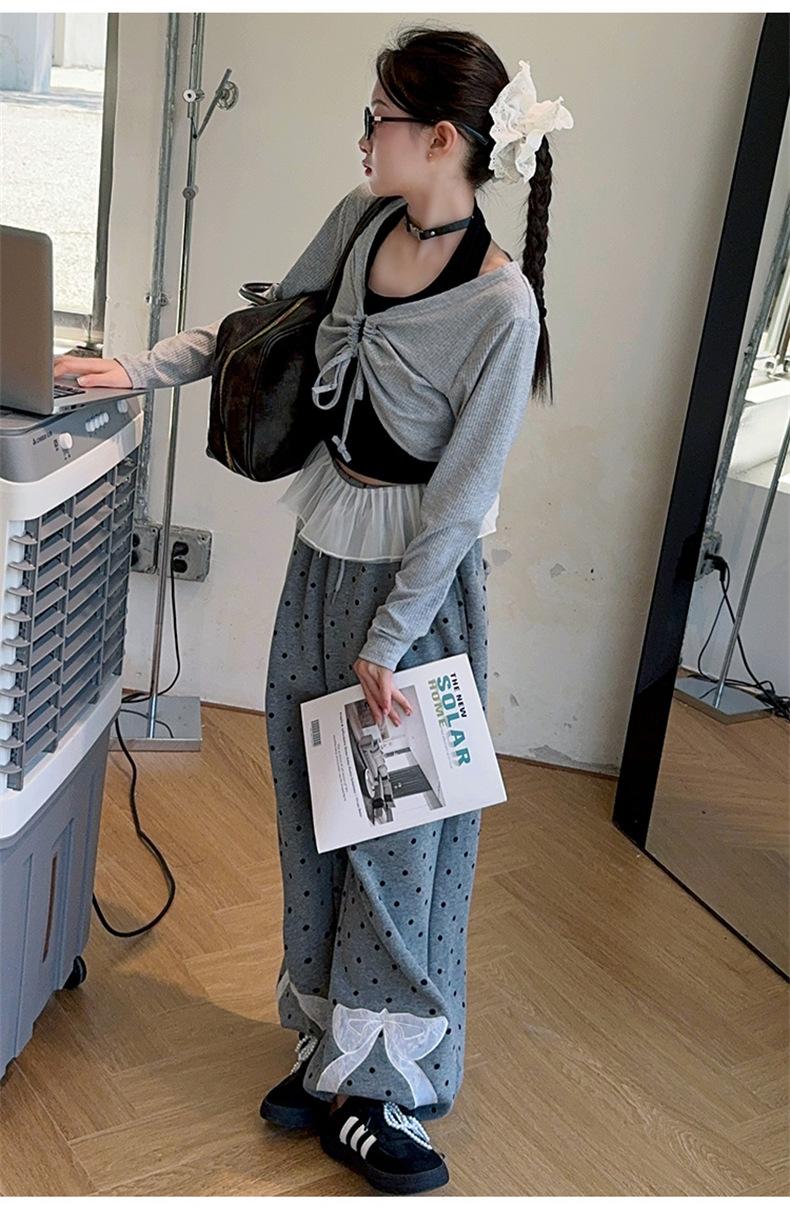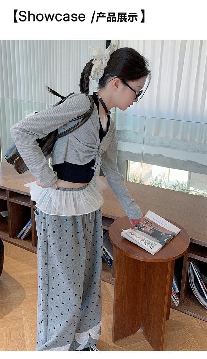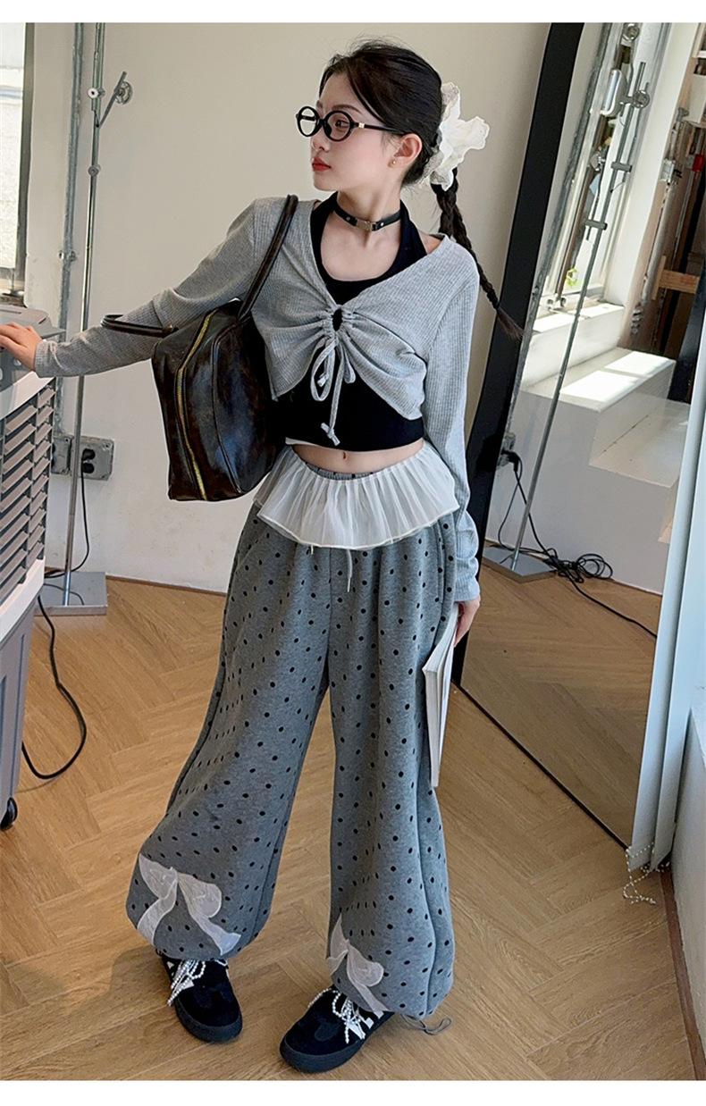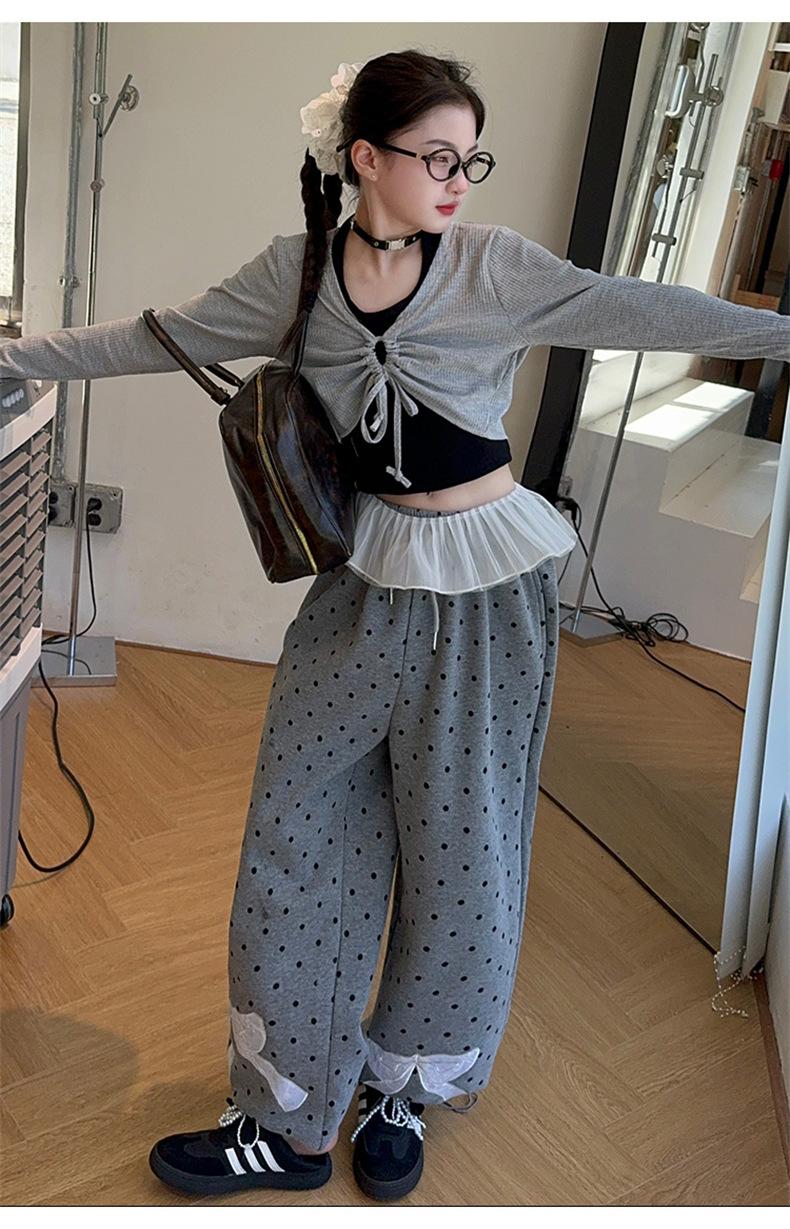 Traje de Primavera y Otoño para Niñas 2024 Nueva Moda Estilo Coreano para Niñas Pantalones de Lunares Estilo Occidental para Niños Grandes con Cubierta de Cintura de Red