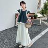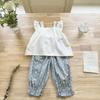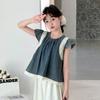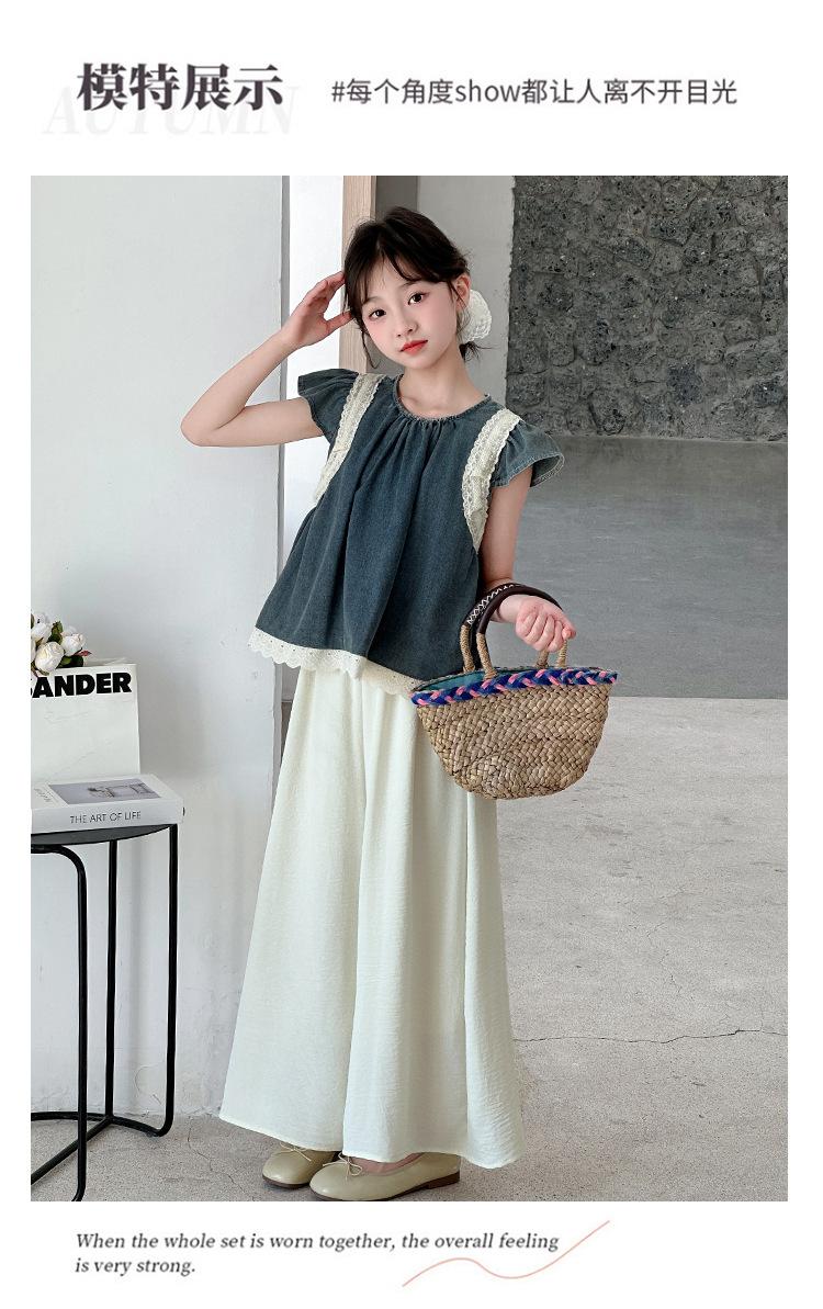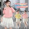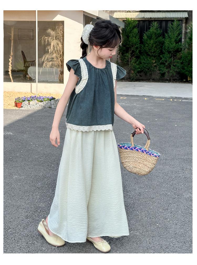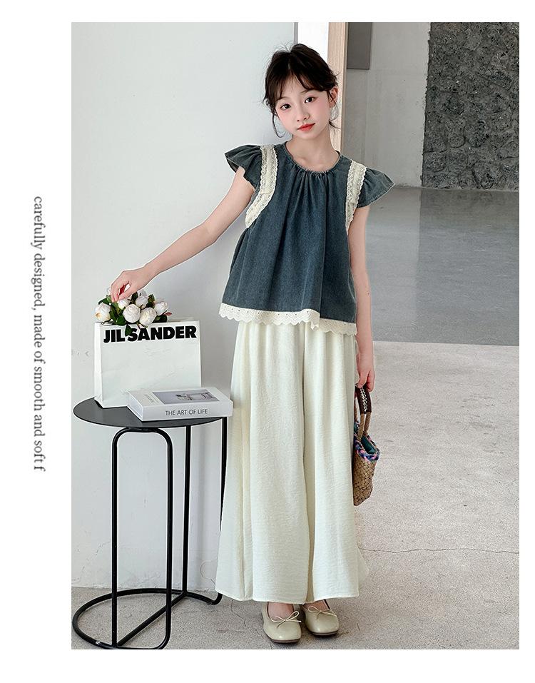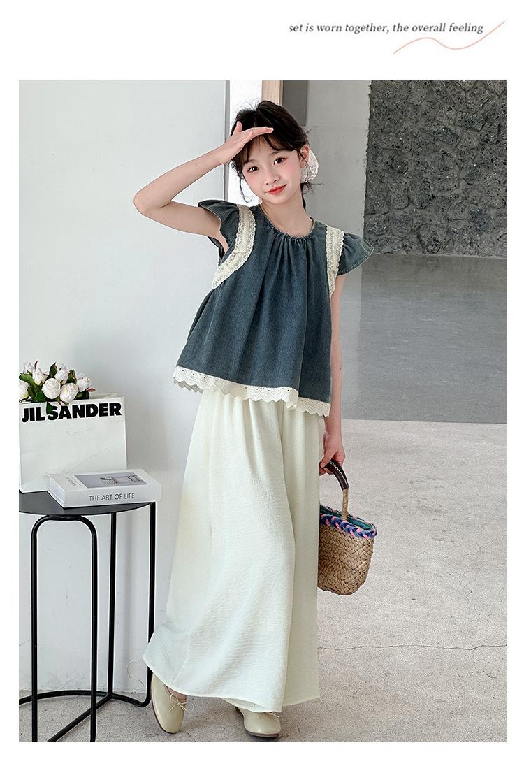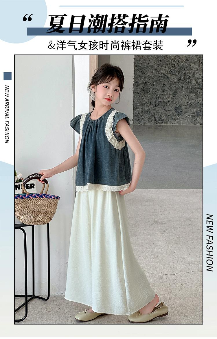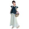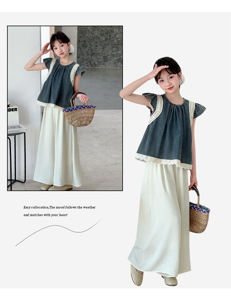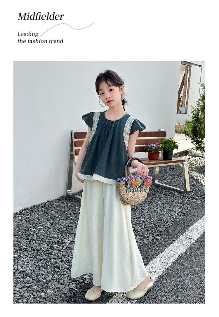 Traje de verano para niñas 2025 Nuevo Top de manga volada estilo occidental para niñas Pantalón holgado coreano para niños Falda Conjunto de dos piezas